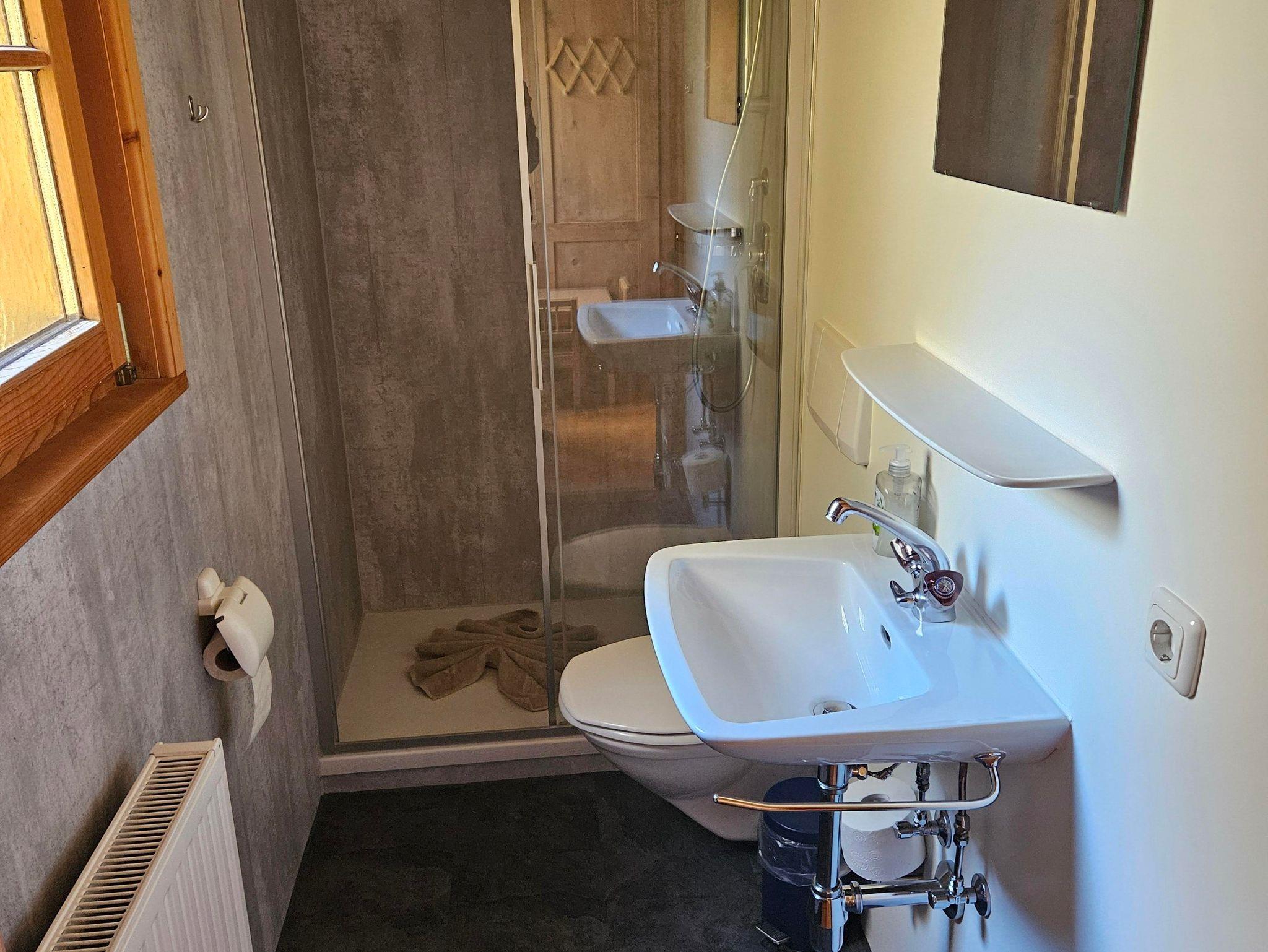• 1 kleines Badezimmer mit Dusche und WC