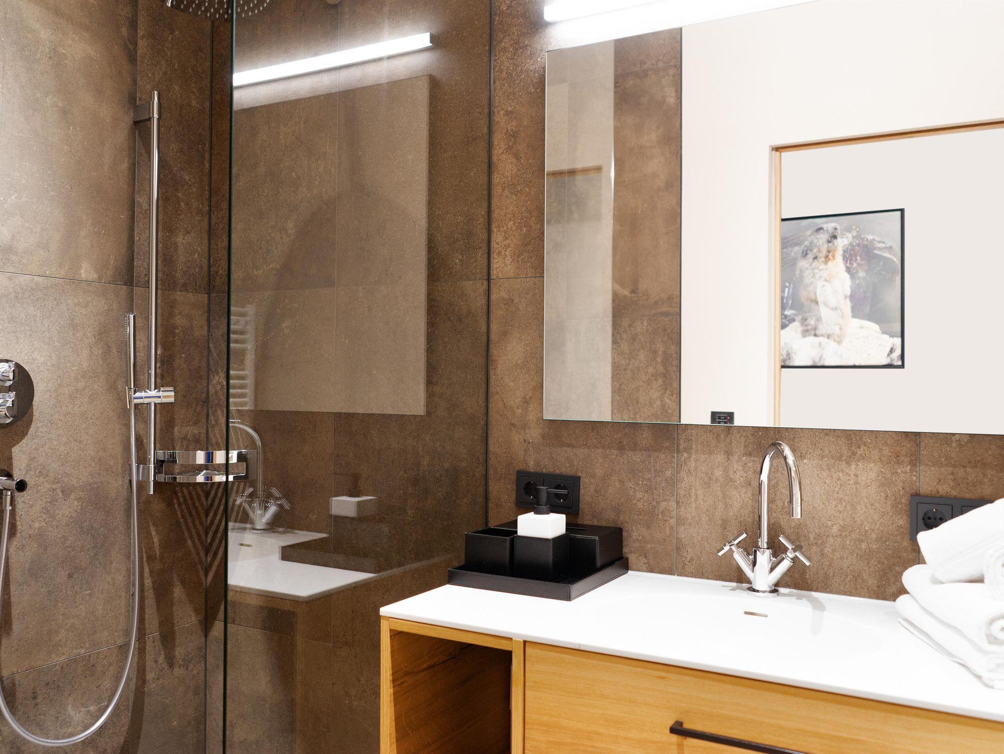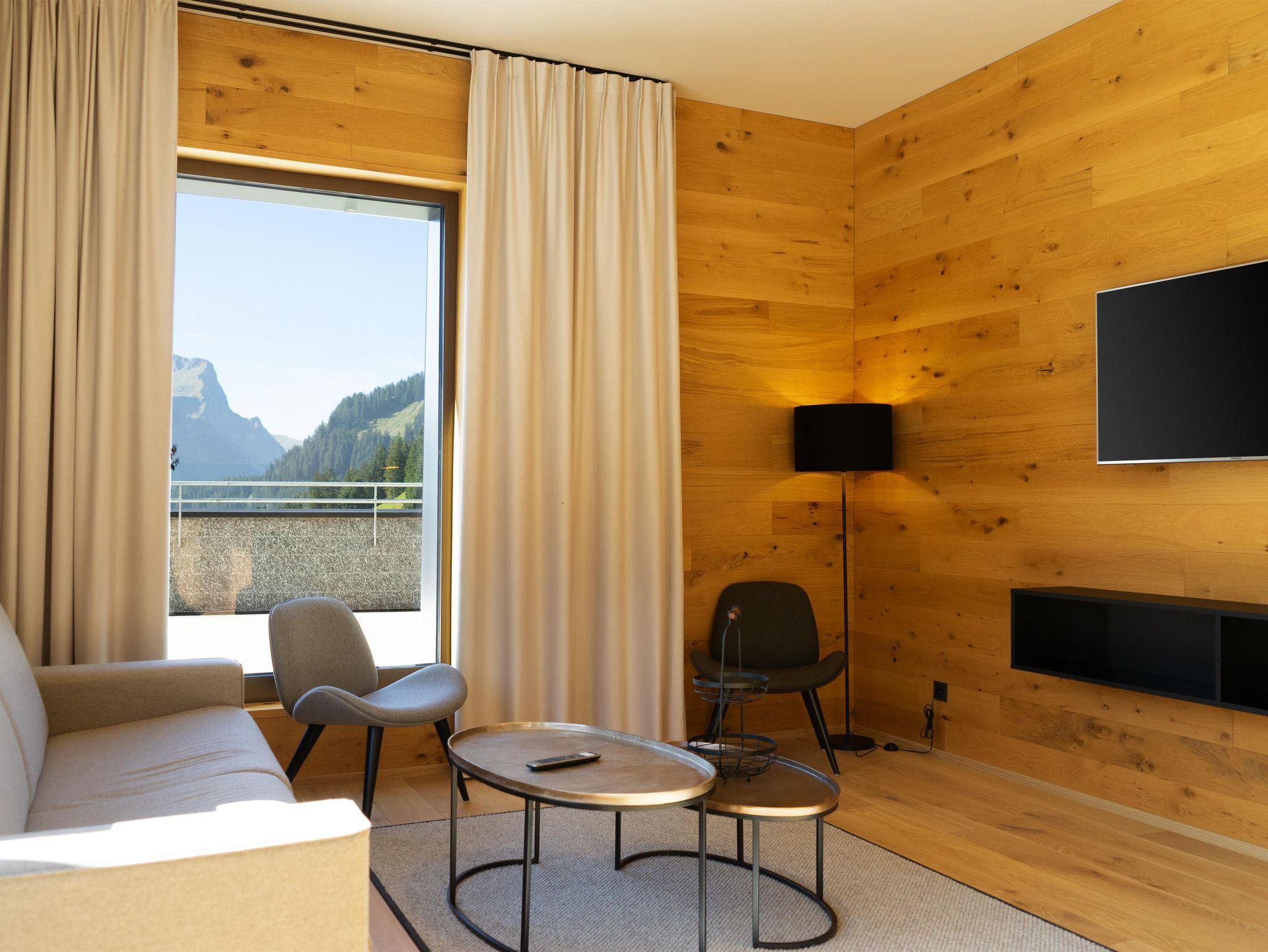 Erleben Sie Luxus und Erholung in unseren Appartements am Arlberg.Mit Blick in die Gipfelkronen der umliegenden Gebirgslandschaft genießen Sie in unseren erstklassigen Luxus-Apartments in Nesslegg | Schröcken höchsten Komfort. Auf exquisiten bis zu 120 m2 Wohnfläche verfügen die Apartments über 3 Schlafzimmer, kostenloses WLAN, min. einen Smart-TV und einen Schranktresor. Die Küche ist mit Backofen, Induktions-Kochfeld, Geschirr, Koch-Utensilien, Kaffeemaschine, Wasserkocher und Toaster voll ausgestattet. Die Suites haben Zugang zu einem Balkon/einer Terrasse. Vielfach sind die Badezimmer direkt über ein Schlafzimmer erreichbar und jeweils mit einer Badewanne oder Regendusche und Toilette ausgestattet. Die Gästetoilette ist in einem separaten Raum untergebracht. Ihr Auto stellen sie sicher in der dazugehörigen Tiefgarage ab, wo auch Ladestationen für E-Autos zur Verfügung stehen. Im Resort befindet sich ein Lift, sowie eine Waschküche mit Waschmaschine und Trockner. Kulinarisch umsorgt werden unsere Gäste mit unserem Frühstücksangebot, Brötchen- und Kühlschrankservice, sowie über den Automatenshop, der regelmäßig mit frischen Speisen unseres Haubenkochs A. Shala befüllt wird.
