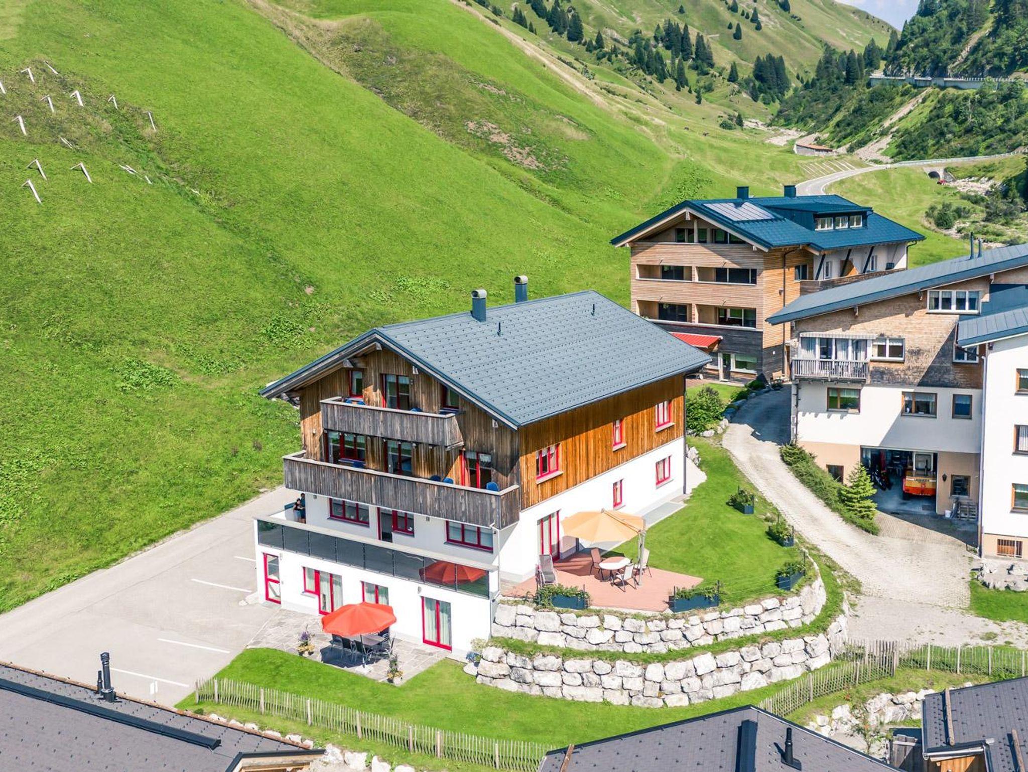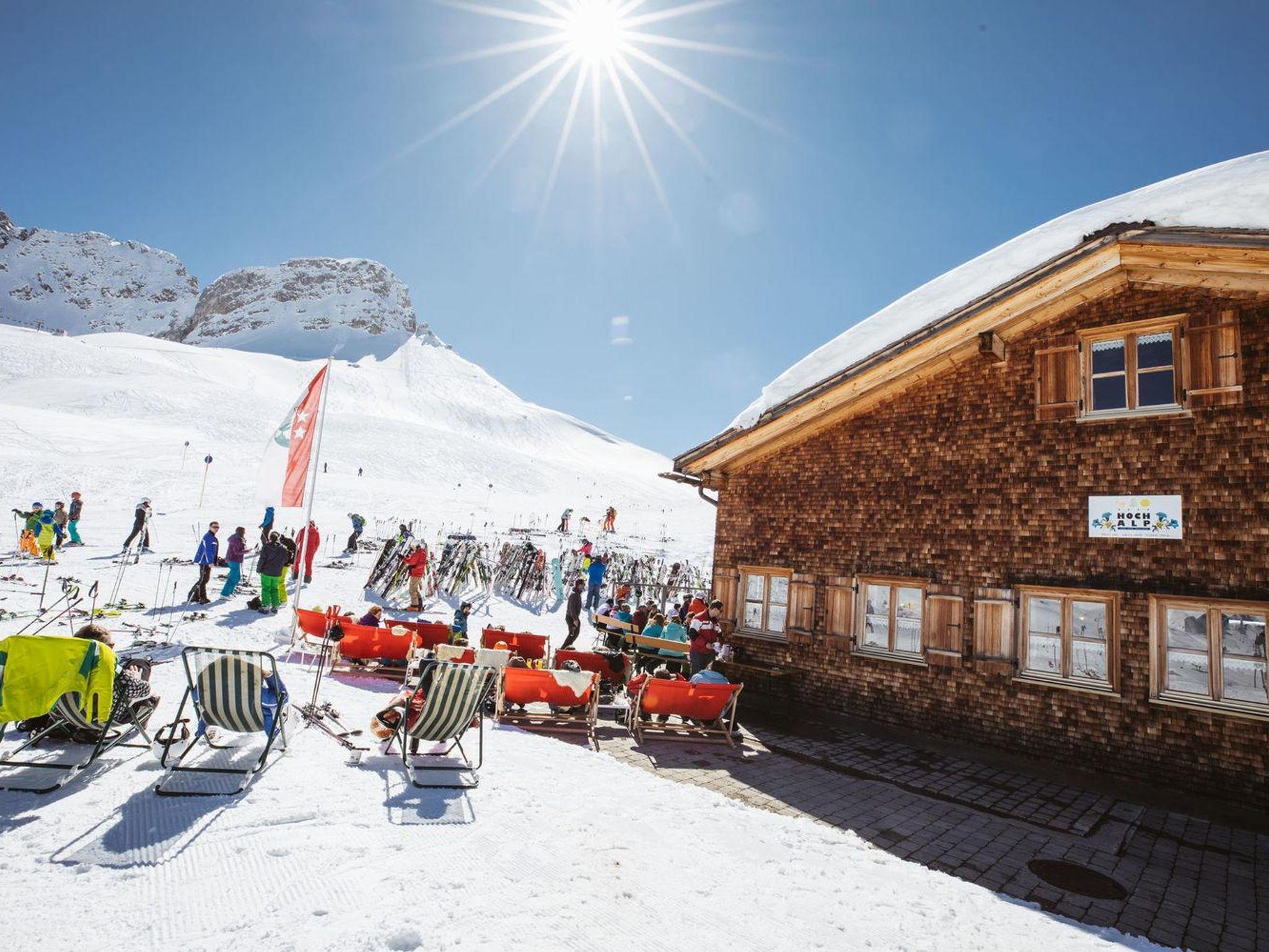 Schräg gegenüber befindet sich die Skibushaltestelle, von wo aus Sie bequem in 5 Minuten das Skigebiet Warth-Schröcken erreichen. Die Skibusse fahren im 15-Minuten Takt. Der Einstieg ins Skigebiet Ski Arlberg ist beim Salober. Dort befindet sich an der Talstation auch die Skischule mit der PAULI SKIARENA, der Sportshop mit Skiverleih sowie Restaurants mit großen Sonnenterrassen