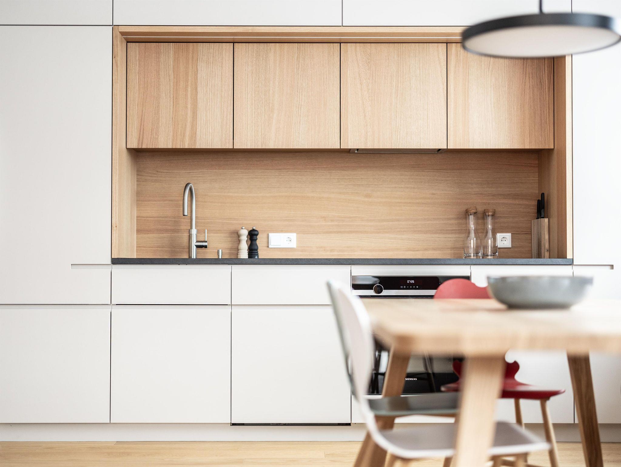 Bestehend aus einem Wohnraum mit Küche, Esstisch, Couch und TV.
