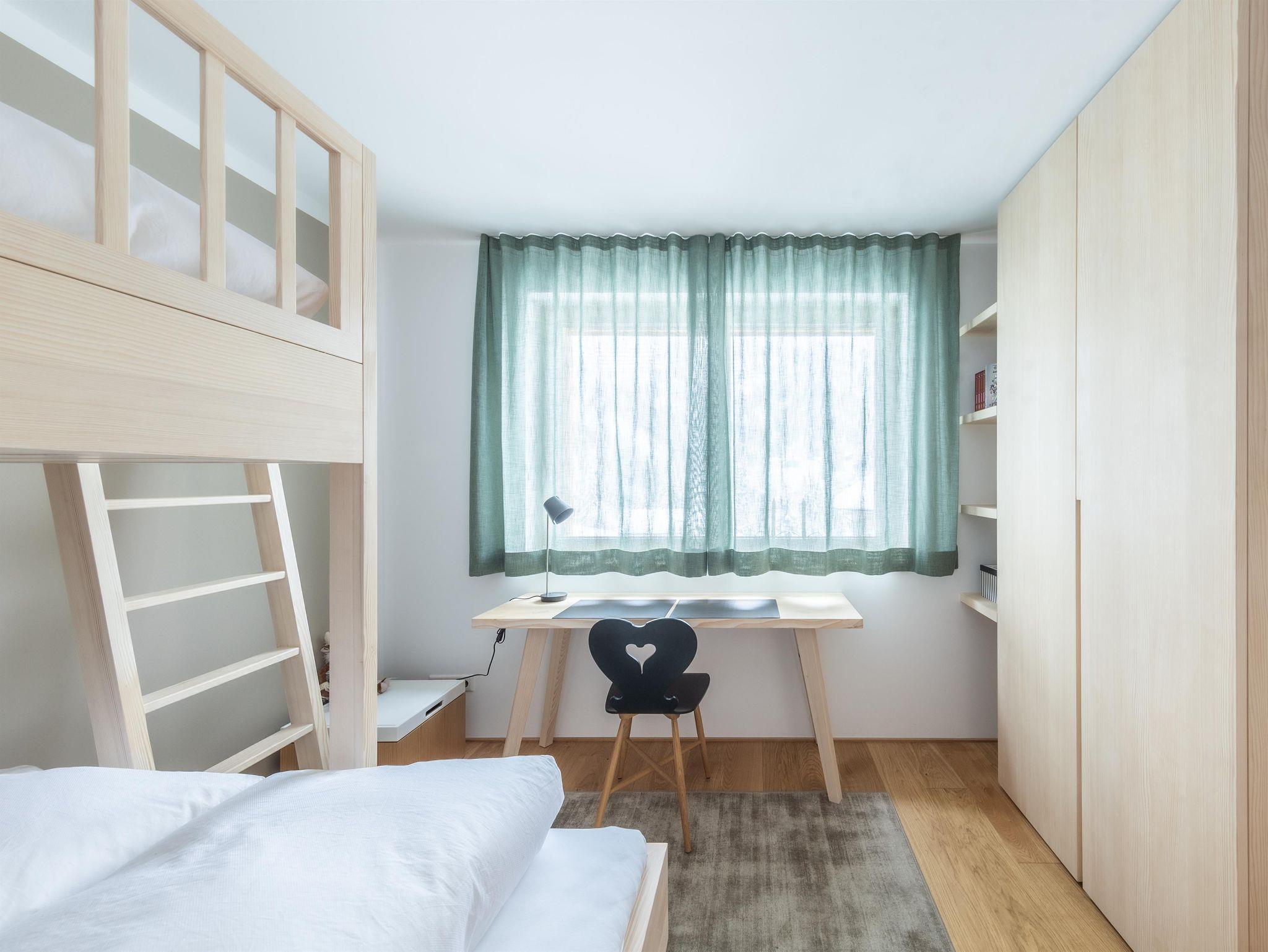 Das Appartement hat 2 Schlafzimmer. Eines mit 1 Doppelbett und ein Schlafzimmer mit 1 Stockbett