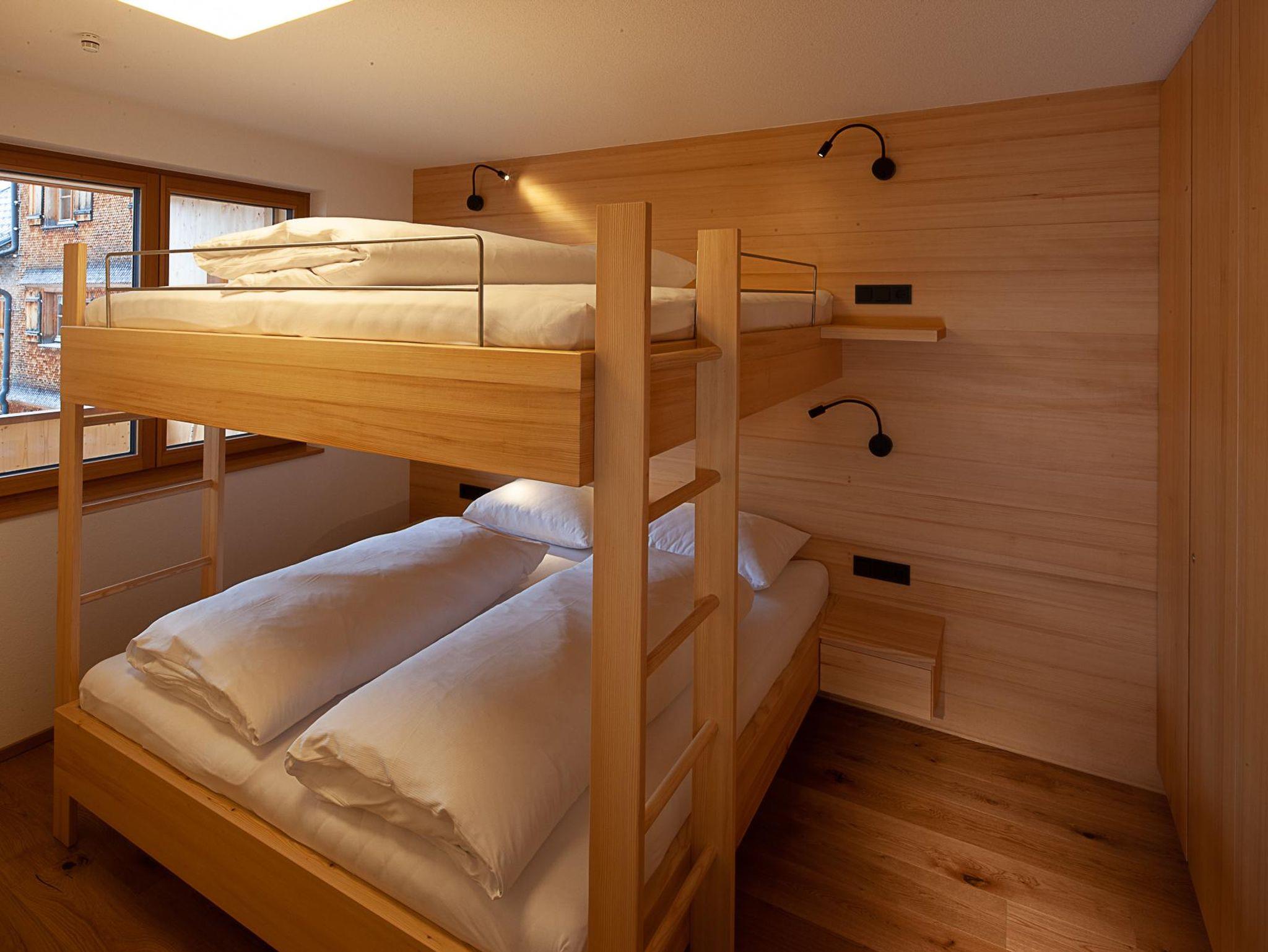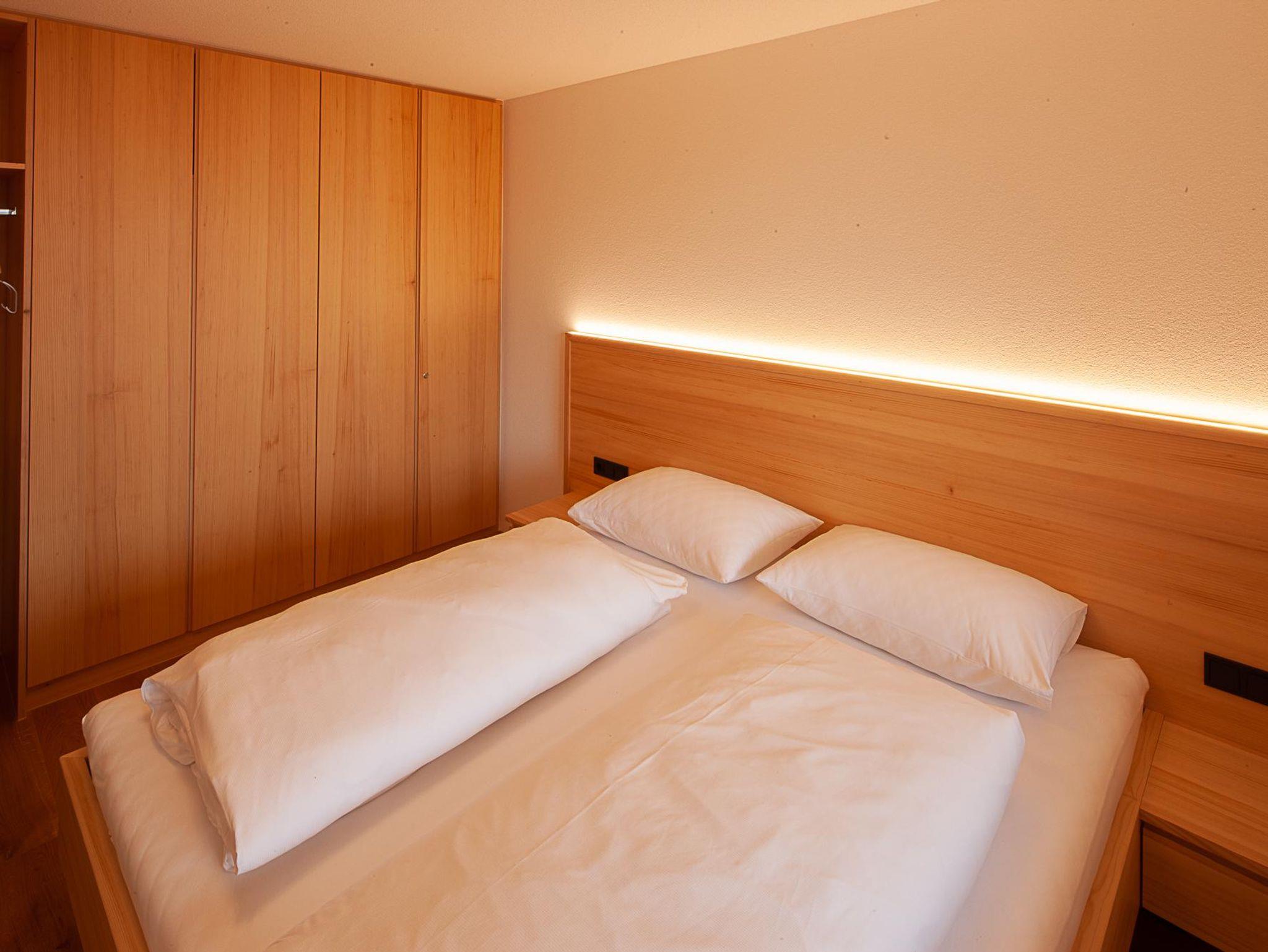 Das Appartement hat 2 Schlafzimmer, eines mit 1 Doppelbett und eines mit 1 Doppelstockbett.