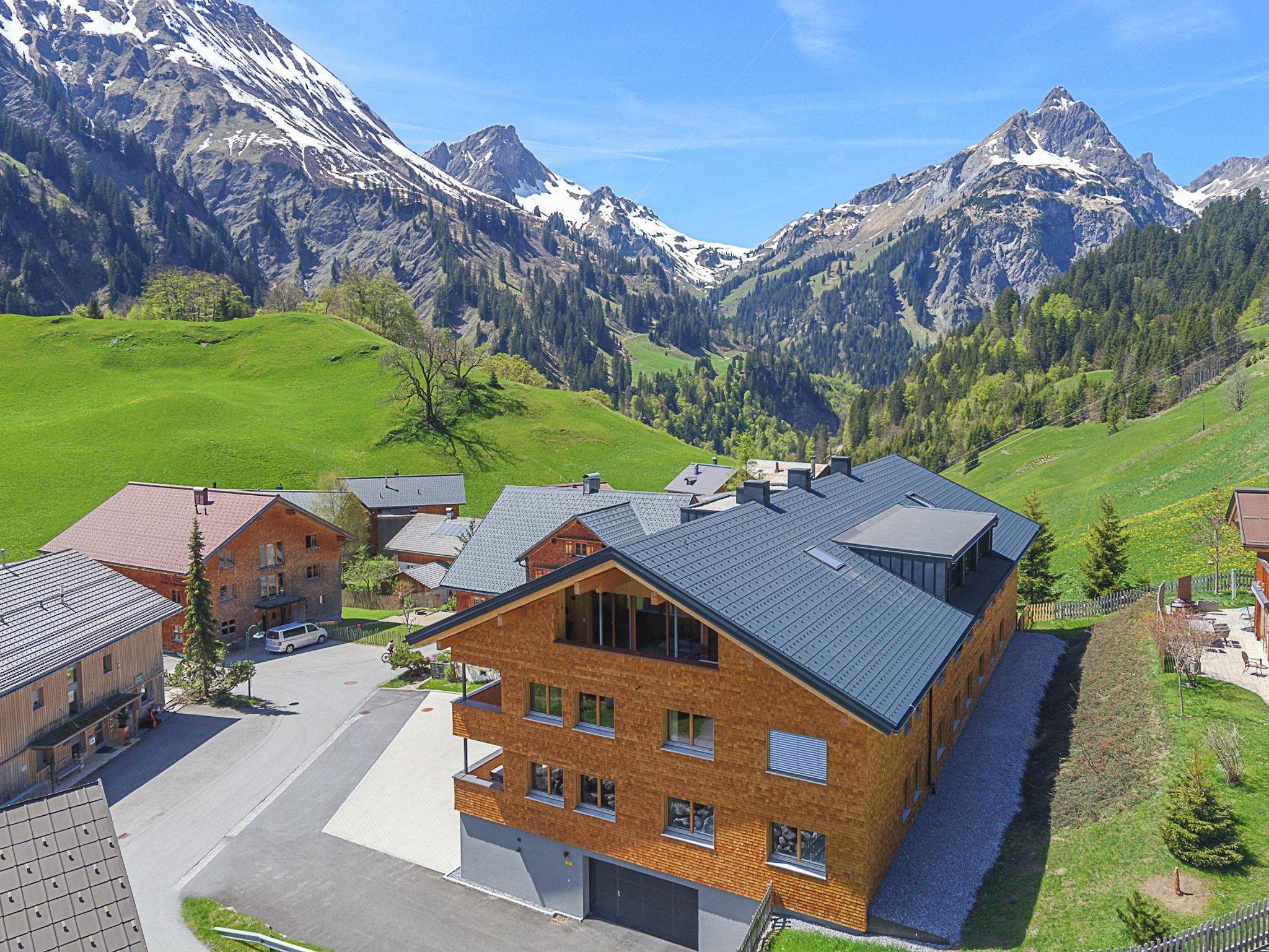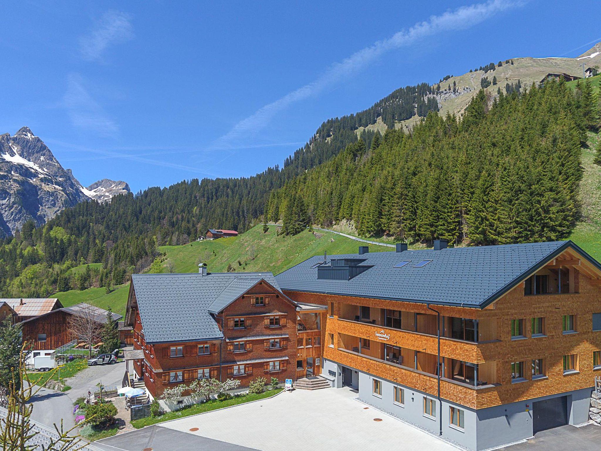 Inmitten der Alpen, in der Parzelle Oberboden dem Sonnenplateau von Schröcken, liegt der neu erbaute Sonnenhof.