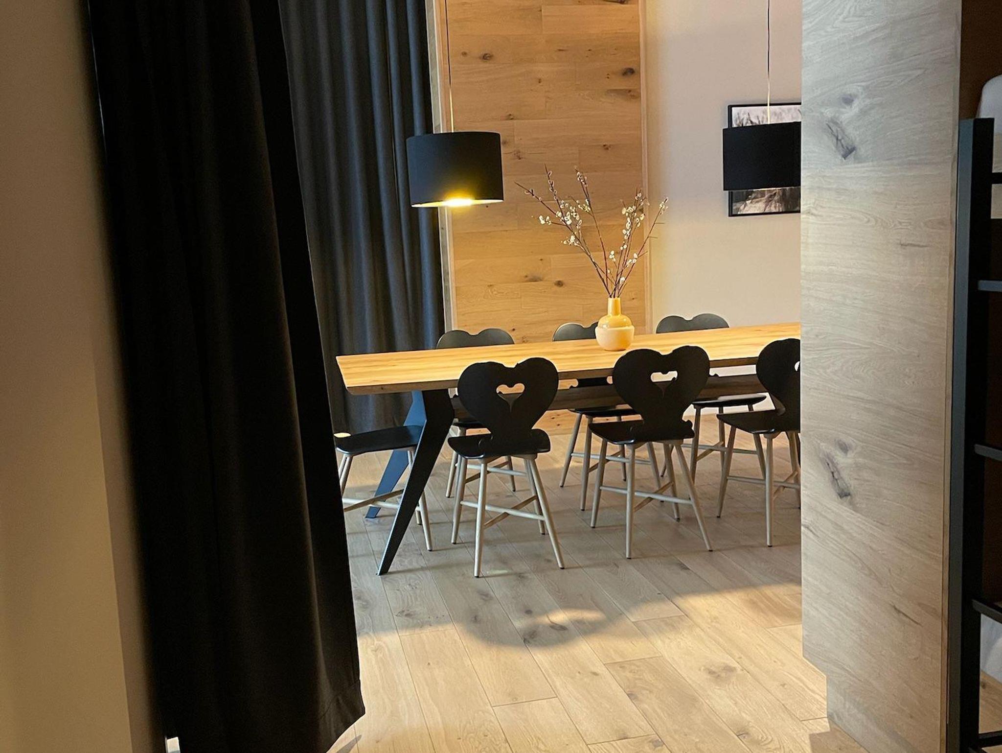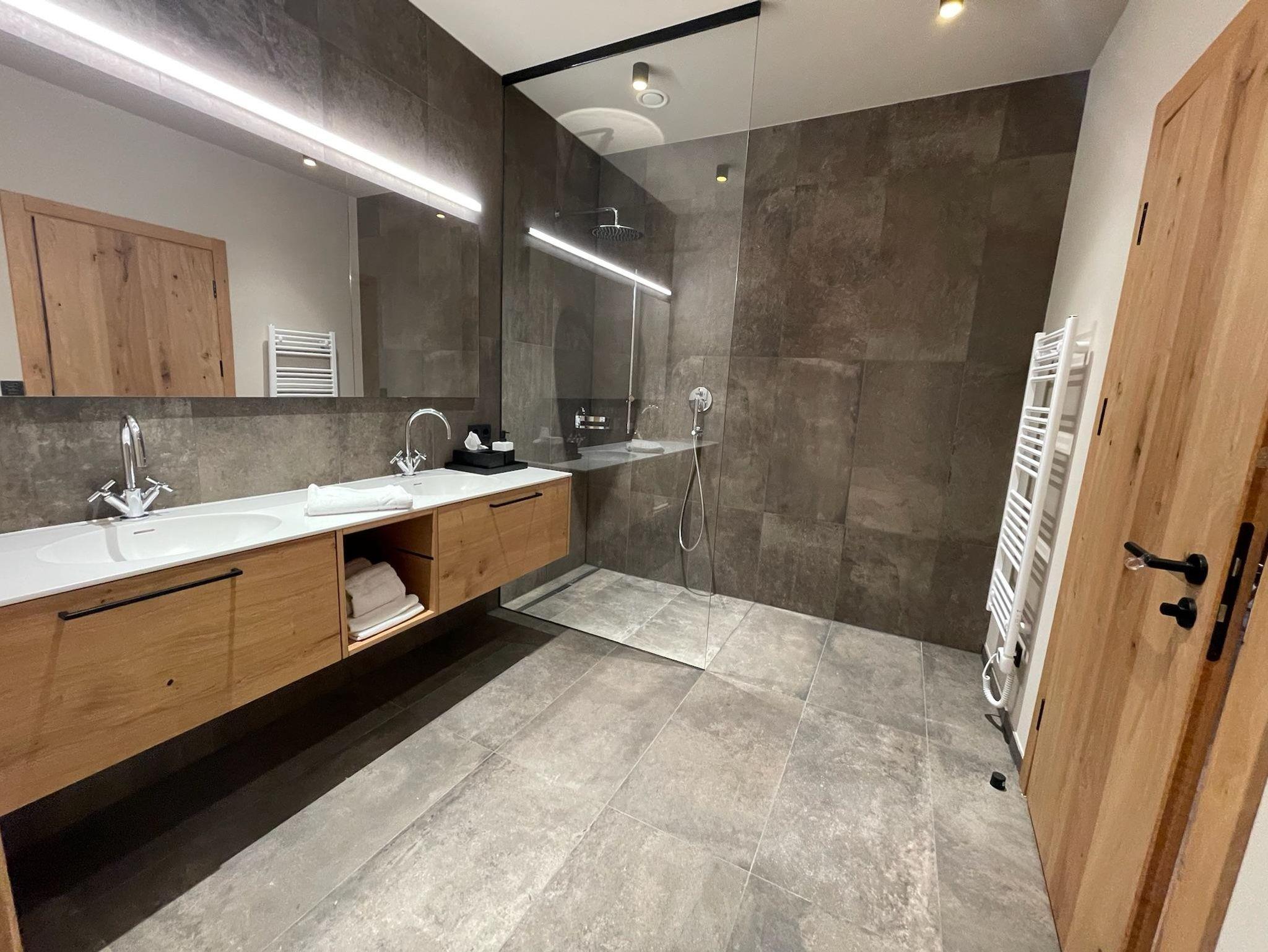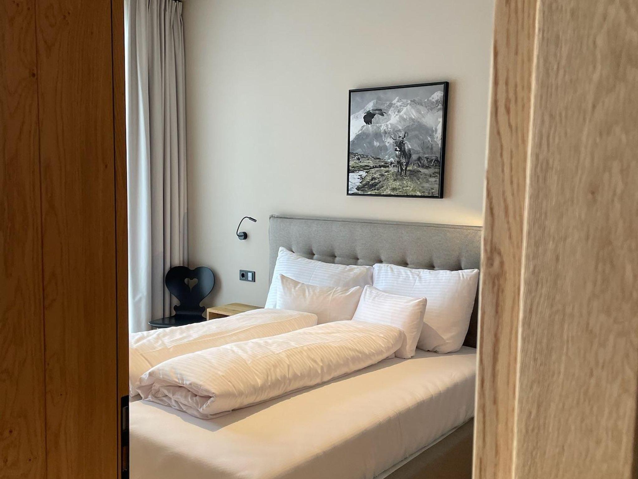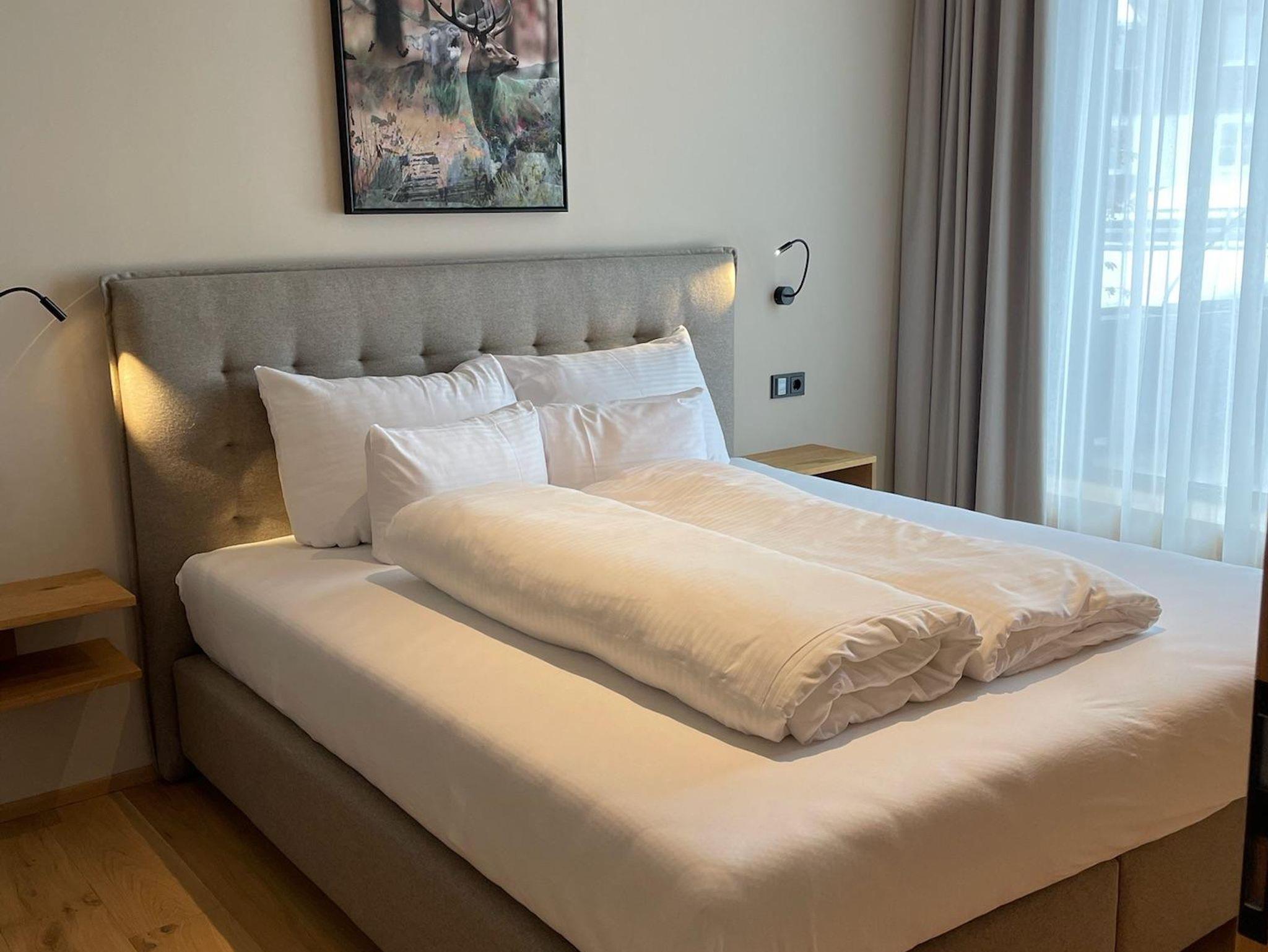 Erleben Sie Luxus und Erholung in unseren Appartements am Arlberg. Mit Blick in die Gipfelkronen der umliegenden Gebirgslandschaft genießen Sie in unseren erstklassigen Luxus-Apartments in Nesslegg | Schröcken höchsten Komfort. Auf exquisiten bis zu 120 m2 Wohnfläche verfügen die Apartments über 2 Schlafzimmer kostenloses WLAN, min. einen Smart-TV und einen Schranktresor. 2 Etagenbetten mit Vorhang im Wohnzimmer bieten zusätzlich Platz für weitere 4 Personen. Die Küche ist mit Backofen, Induktions-Kochfeld, Geschirr, Koch-Utensilien, Kaffeemaschine, Wasserkocher und Toaster voll ausgestattet. Die Suites haben Zugang zu einem Balkon/einer Terrasse. Vielfach sind die Badezimmer direkt über ein Schlafzimmer erreichbar und jeweils mit einer Badewanne oder Regendusche und Toilette ausgestattet. Die Gästetoilette ist in einem separaten Raum untergebracht. Ihr Auto stellen sie sicher in der dazugehörigen Tiefgarage ab, wo auch Ladestationen für E-Autos zur Verfügung stehen. Im Resort befindet sich ein Lift, sowie eine Waschküche mit Waschmaschine und Trockner. Kulinarisch umsorgt werden unsere Gäste mit unserem Frühstücksangebot, Brötchen- und Kühlschrankservice, sowie über den Automatenshop, der regelmäßig mit frischen Speisen unseres Haubenkochs A. Shala befüllt wird.