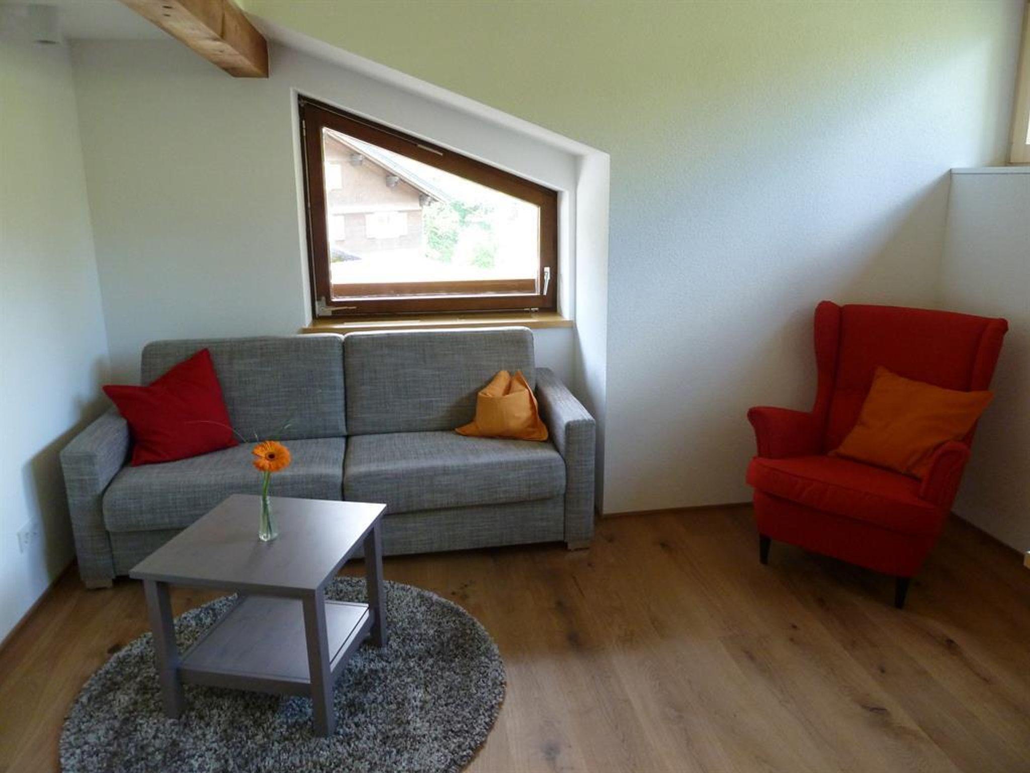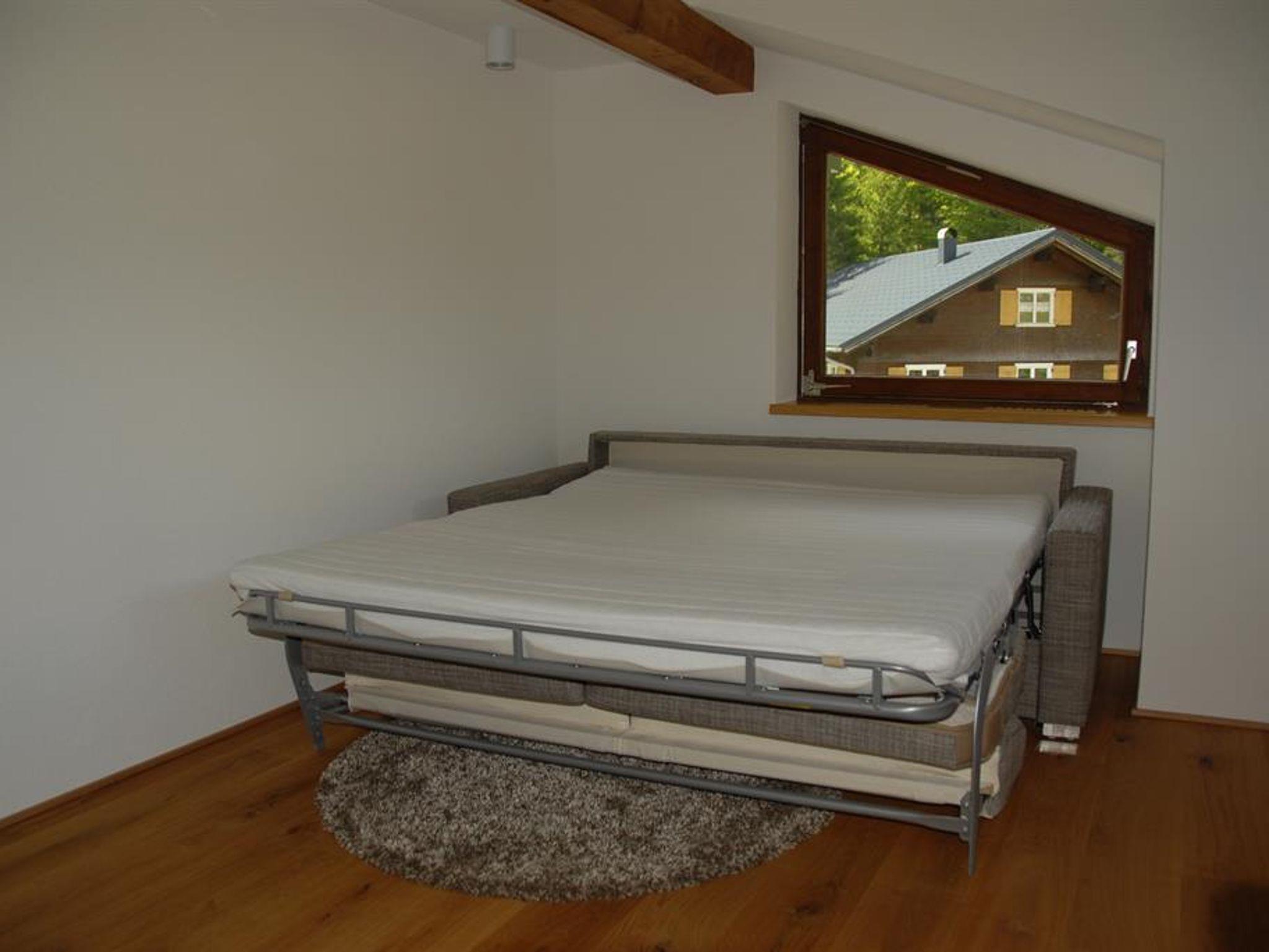 Das große Schlafzimmer ist mit einem bequemen Boxspring-Doppelbett ausgestattet, das kleinere mit zwei großzügigen Einzelbetten. Im gemütlichen Wohnraum wartet eine komfortable Schlafcouch für zwei Personen auf Sie, vom Esstisch aus haben Sie einen einmaligen Ausblick auf die Künzelspitze.