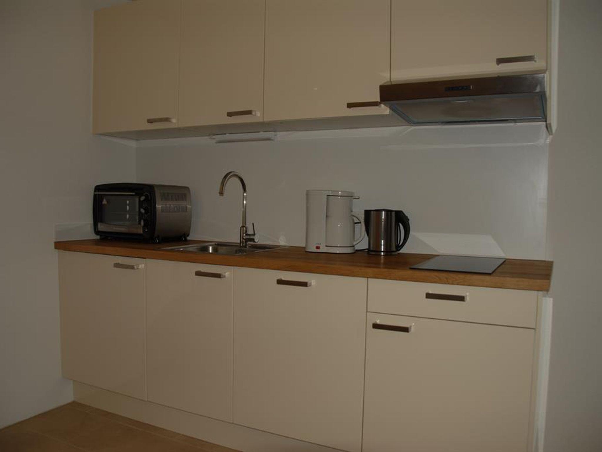 Die Küche ist mit modernen Geräten (Backrohr-Kochfeld-Kombination und Geschirrspüler) ausgestattet, Bad und WC sind getrennt. Die 35 m2 große Terrasse bietet einen traumhaften Ausblick auf den Hochberg.