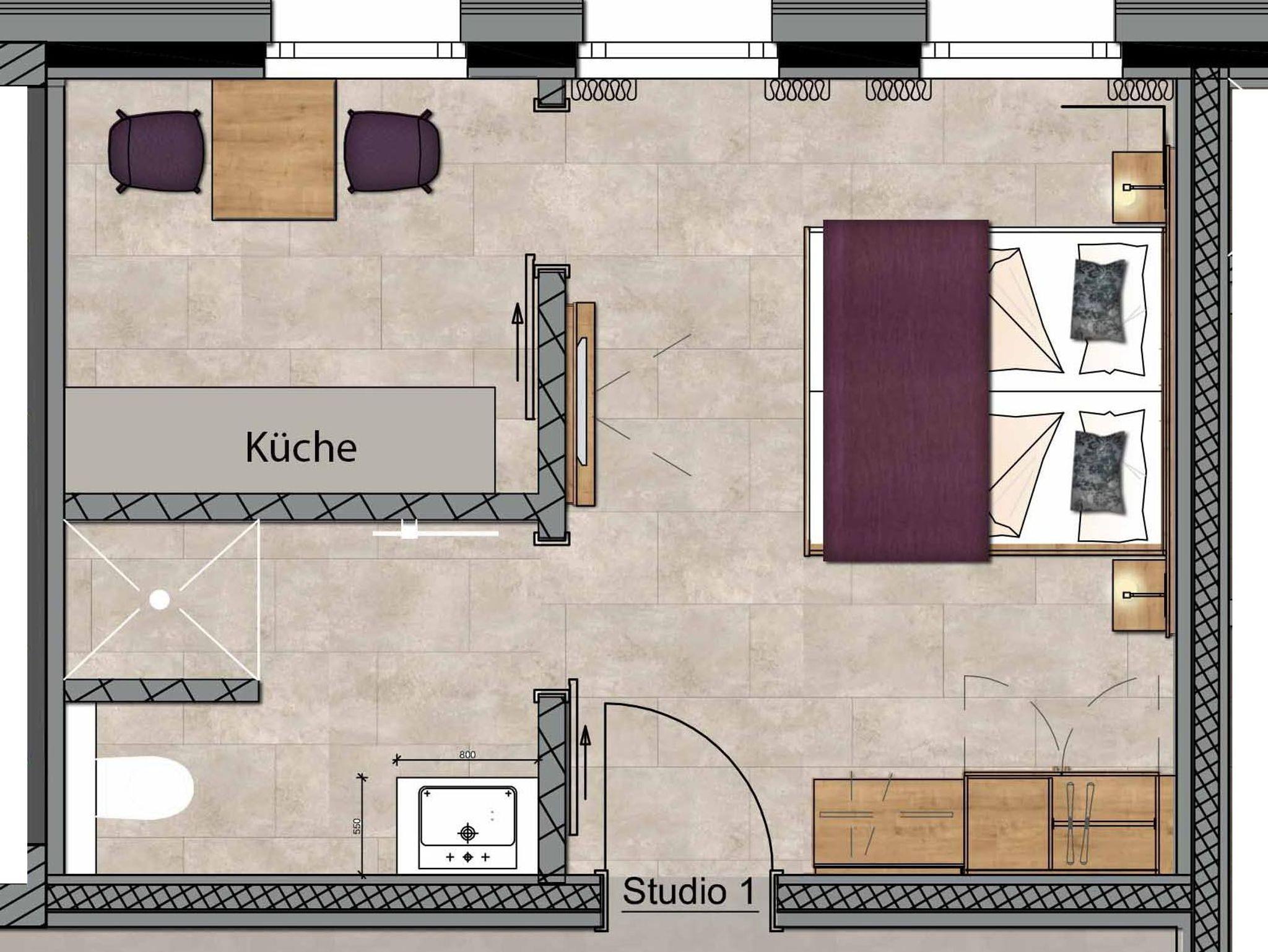 Separater Raum mit hochwertiger und voll ausgestatteter Küche für maximal 2 Personen: