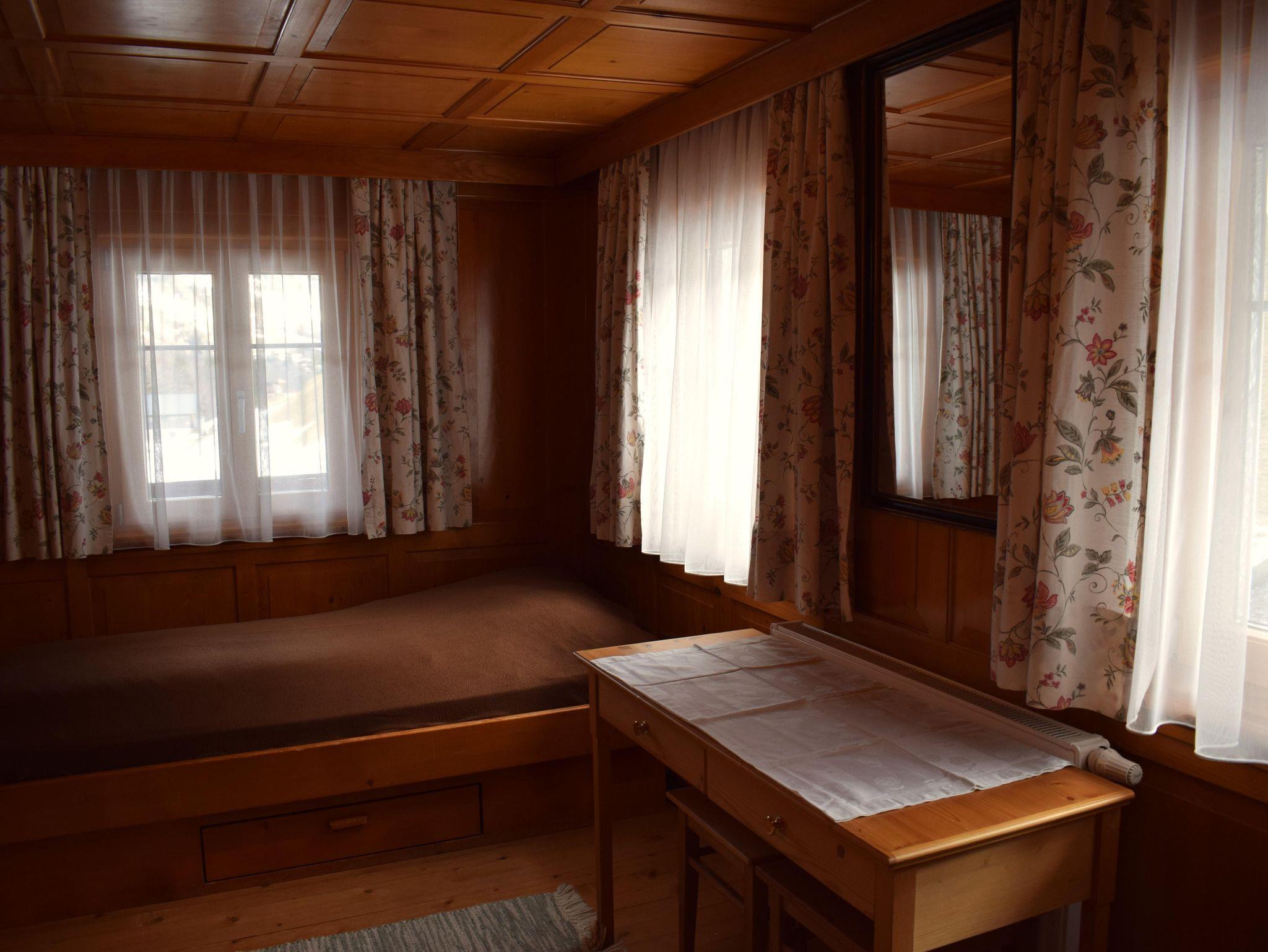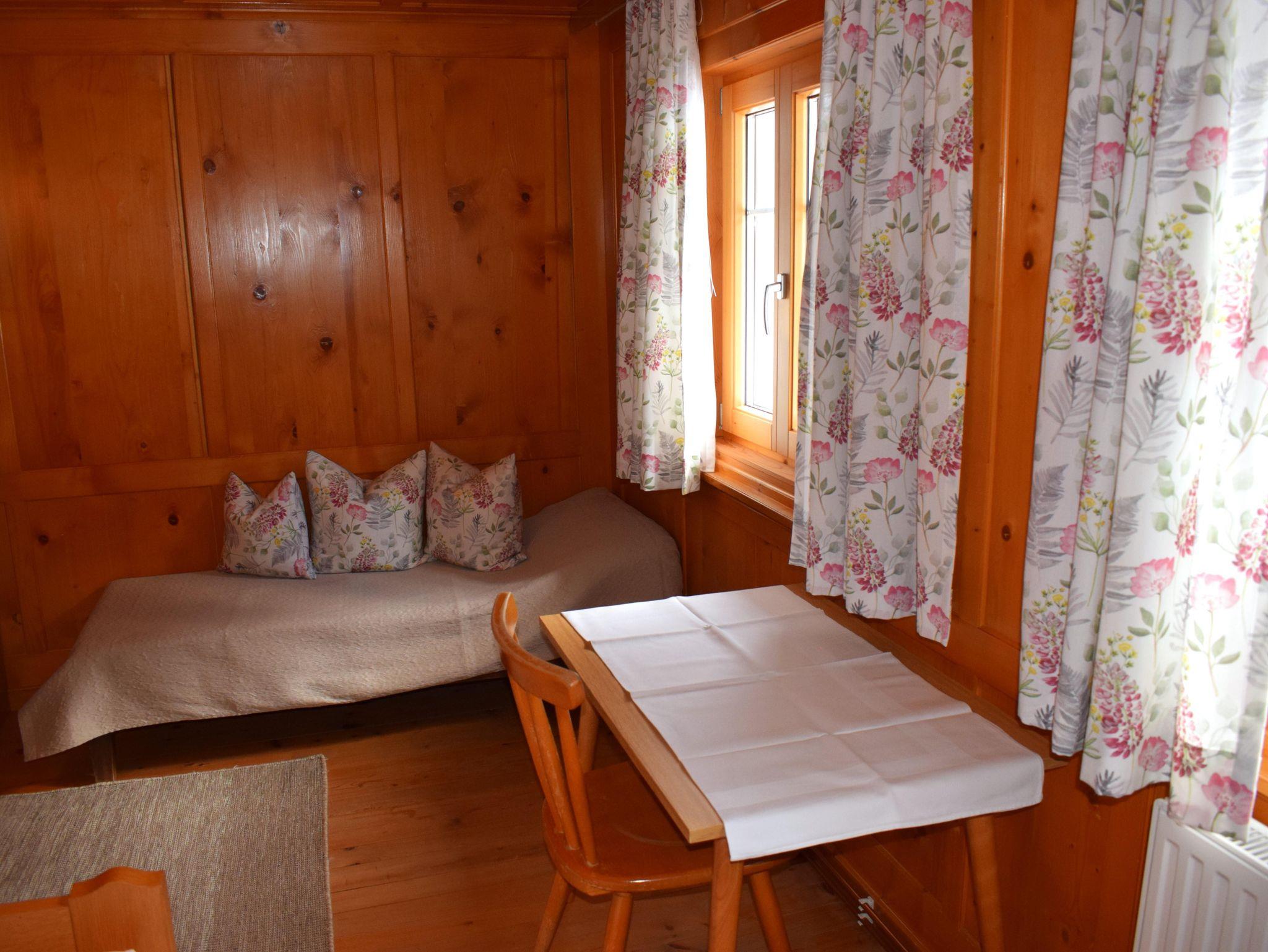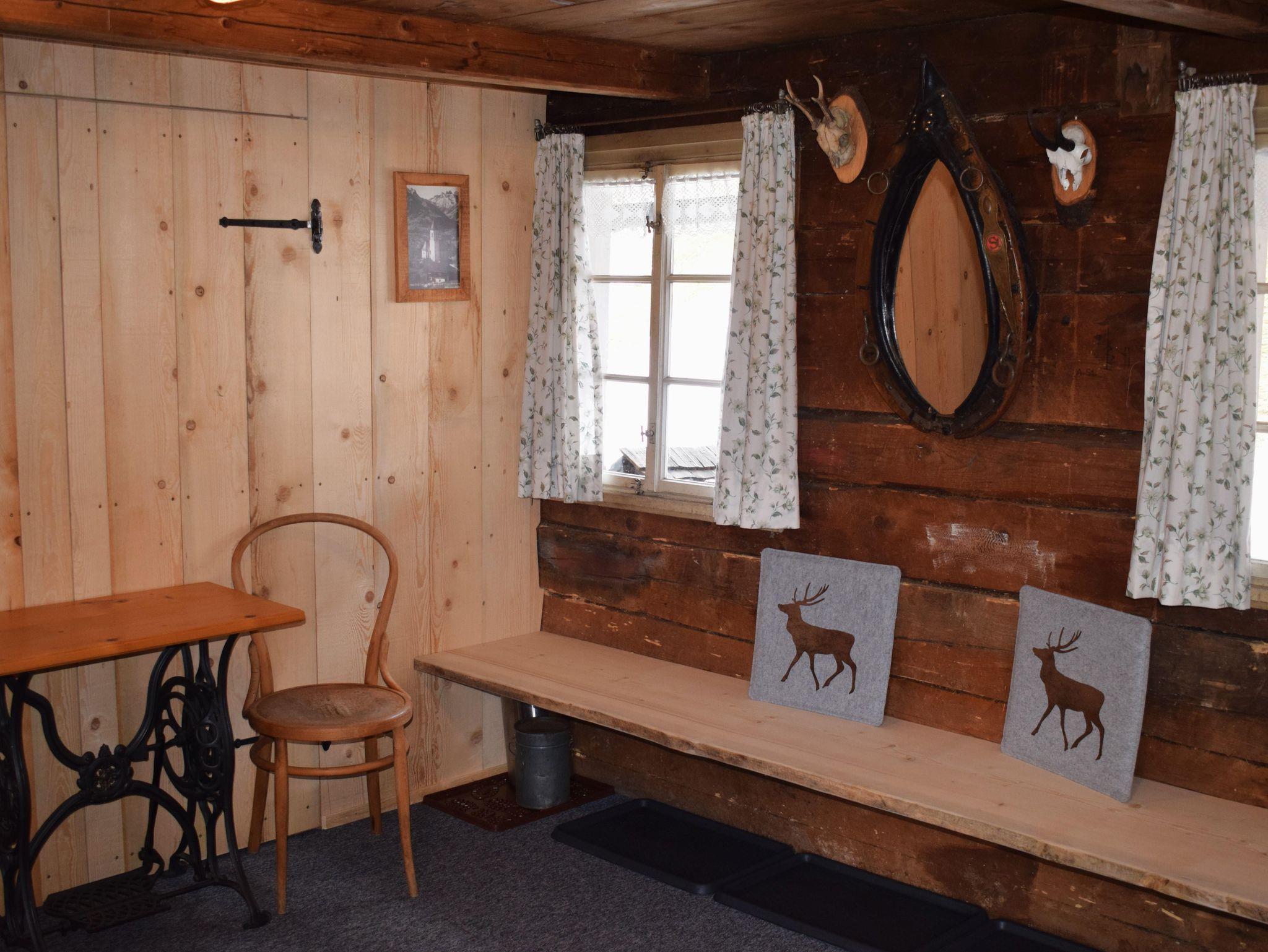 Eine Wohnküche, ein Dreibettzimmer, ein Doppelzimmer, ein Einzelzimmer (Bett nur 1,90m lang), Dusche, separates WC, Waschraum, kleine Garderobe und ein Trockenraum für Ski und Schuhe sind vorhanden.