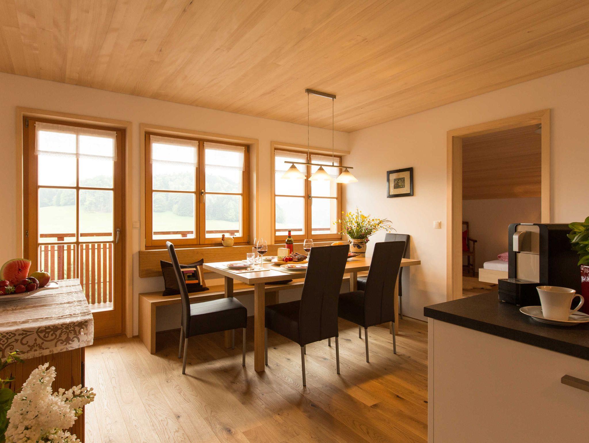 Unsere Ferienwohnung wurde aus heimischem Holz errichtet und bietet Platz für 5 Personen.