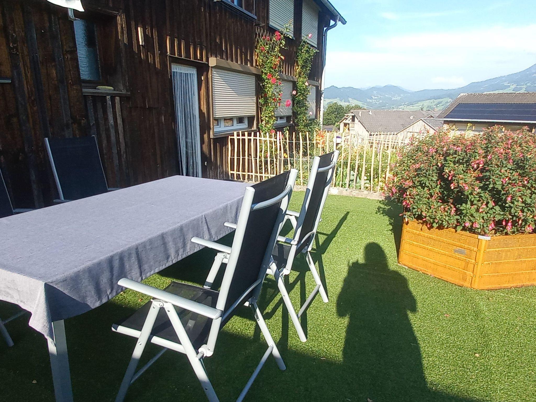 Die gemütlich und traditionell eingerichtete Ferienwohnung verfügt über 2 Schlafzimmer, Küche und Bad und ist für 2 Erwachsene und 2 Kinder geeignet. Sie bietet einen Schopf, der typisch für ein Bregenzerwälderhaus ist, mit tollem Ausblick.