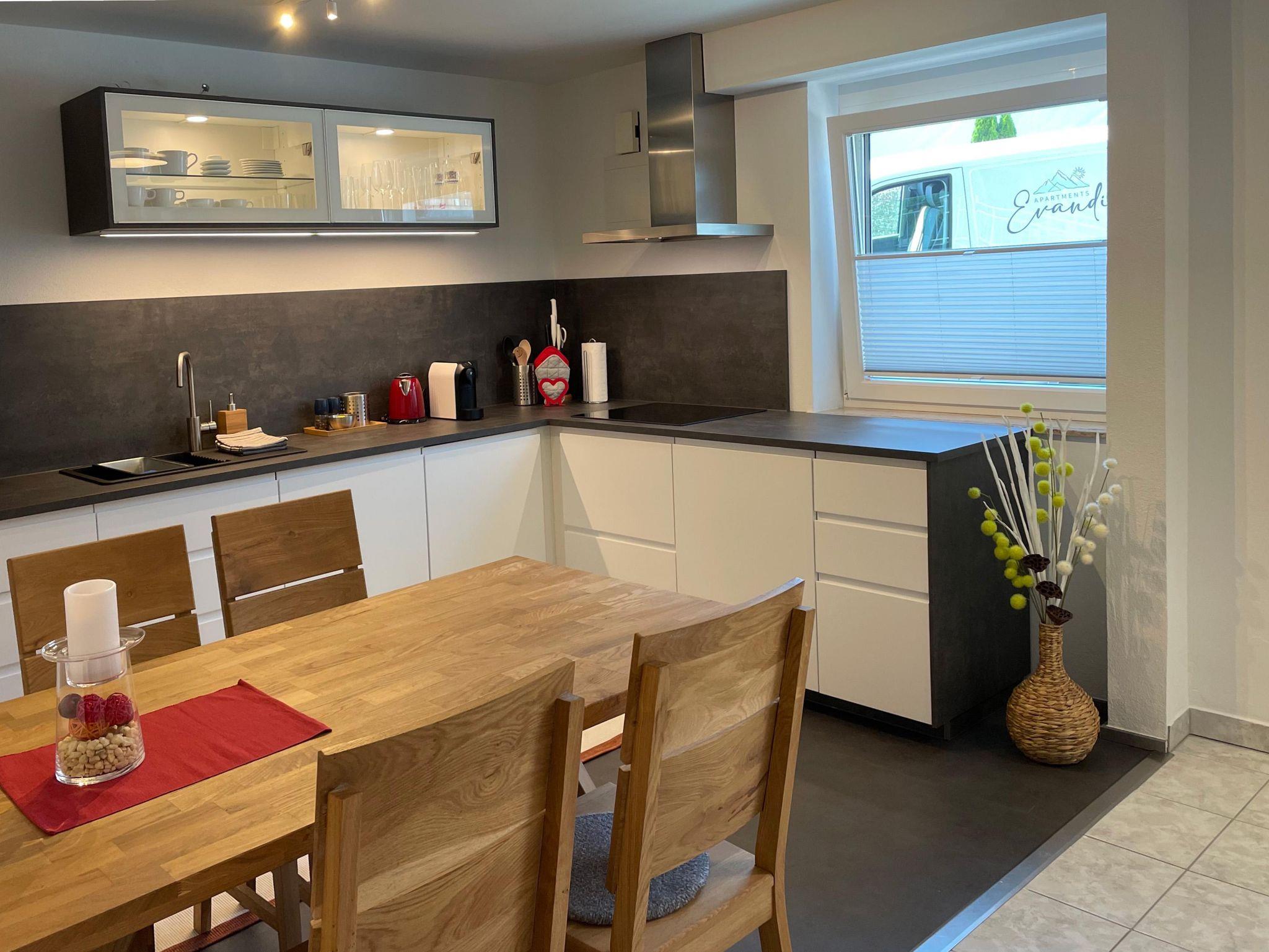 Die gemütliche, 60 Quadratmeter große Wohnung ist vollständig ausgestattet und lässt keine Wünsche offen. In der Wohnküche, dem daran anschließenden Wohnbereich, separaten Schlafzimmer und einem großzügigen Badezimmer findet sich alles für ihren täglichen Bedarf. Das Apartment liegt im Erdgeschoss und eignet sich ideal für Einzelpersonen, Paare oder Familien mit max. zwei Kindern Das Auto kann unmittelbar vor Ihrer Unterkunft geparkt werden Direkt vor dem Apartment befindet sich Ihre eigene Veranda Für Ihre Sportgeräte (Fahrräder, Rodeln, Schi) steht ein absperrbarer Aufbewahrungsraum zur Verfügung. WiFi, Satelliten-TV, Bettwäsche, Handtücher etc. werden zur Verfügung gestellt. Ausstattung für die jüngsten Gäste (Babybett incl. Bettwäsche, Hochstuhl, etc.) auf Anfrage.