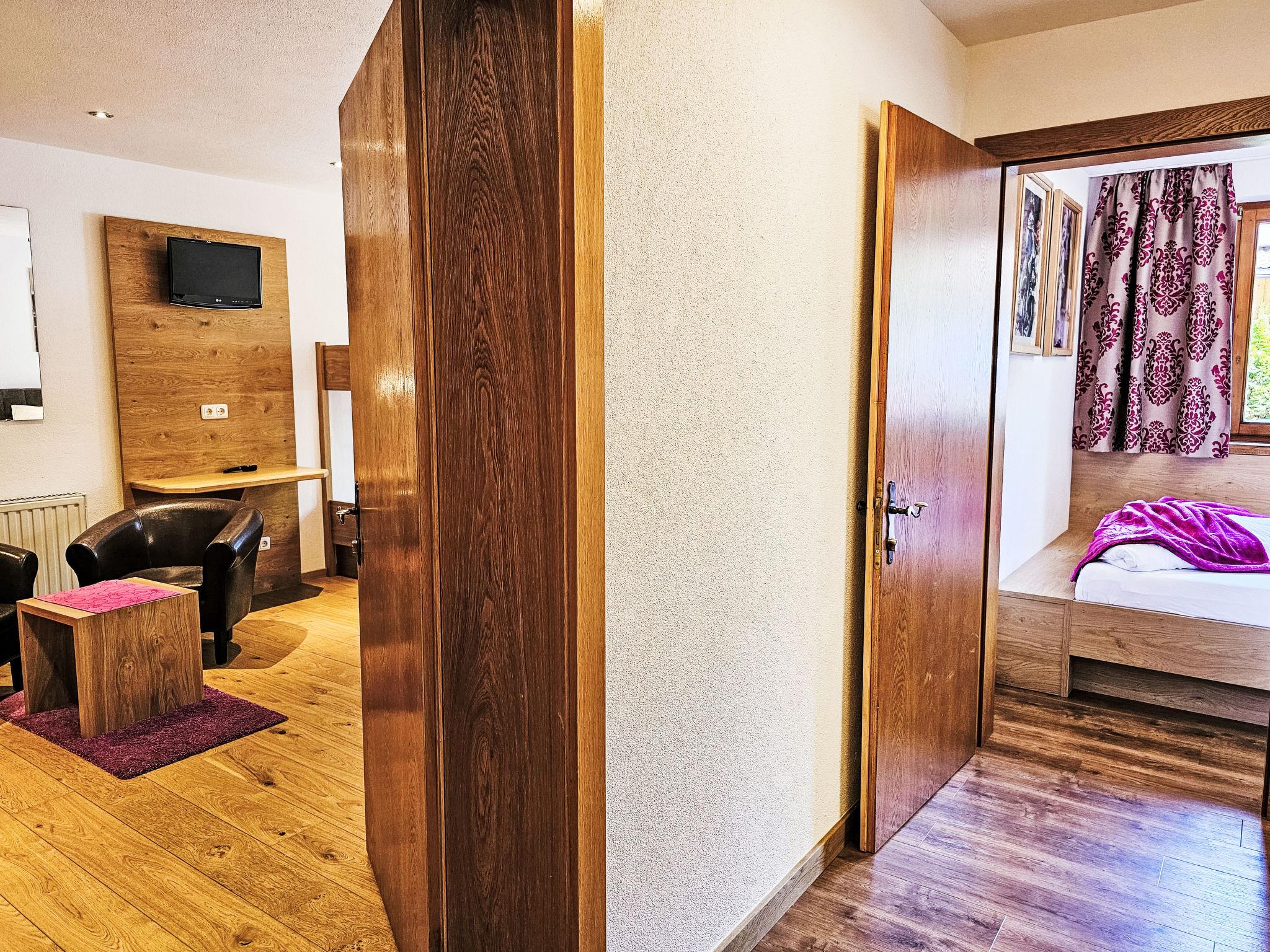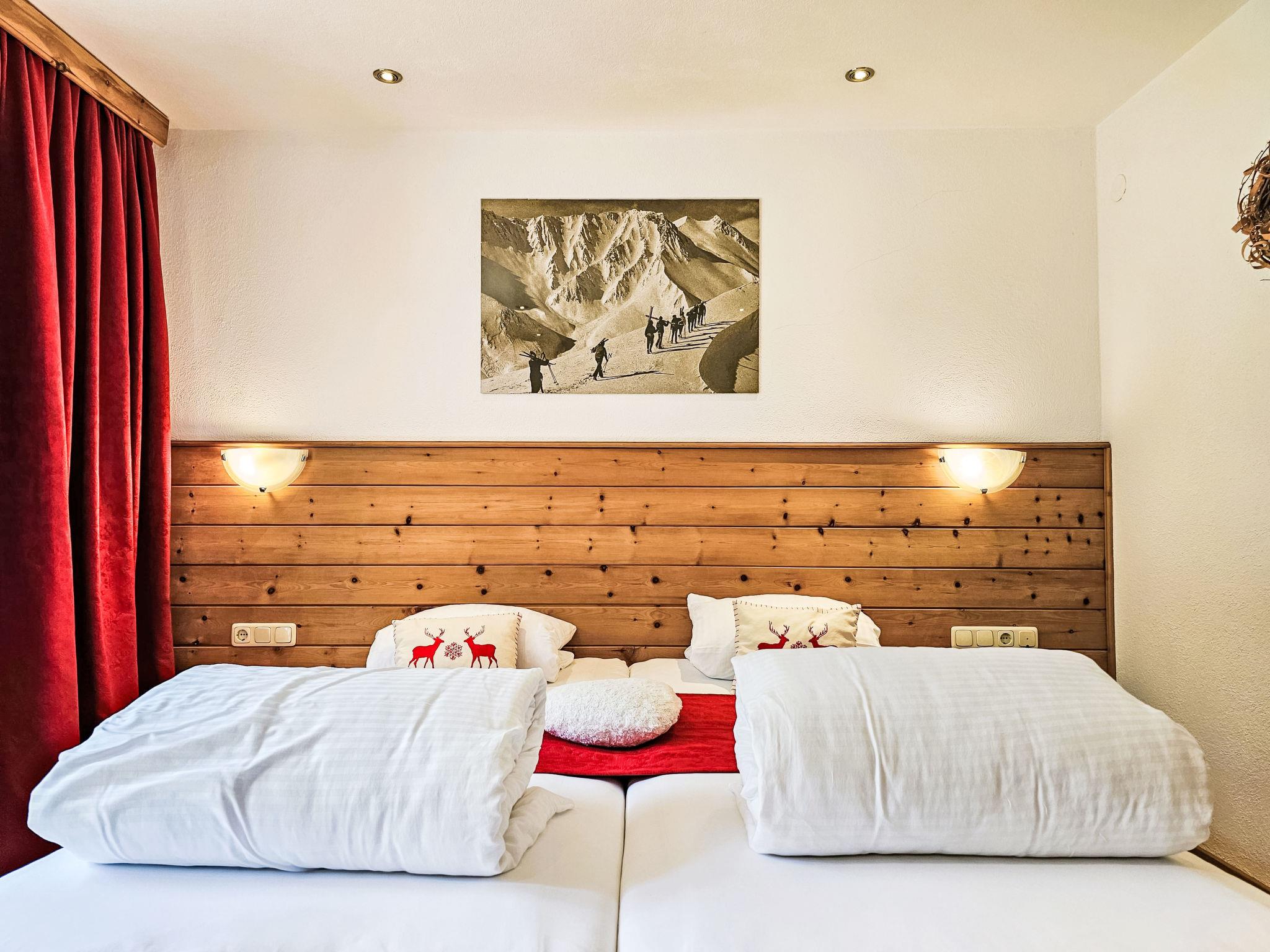 "Inn", 4-room apartment 96 m2. Beautiful and cosy furnishings: 1 room with 1 x 2 bunk beds (90 cm, length 200 cm), 1 double bed, separate WC, bath/shower and satellite TV (flat screen). Exit to the balcony. 1 room with 1 sofabed, 1 double bed, separate WC, shower and satellite TV (flat screen). Exit to the balcony. 1 small double bedroom with 1 bed (160 cm, length 200 cm), satellite TV (flat screen). Kitchen-/living room (4 induction hot plates, toaster, kettle, microwave, electric coffee machine, Capsules for coffee machine (Nespresso) extra) with 1 sofabed. Exit to the balcony. Wooden floors. Large balcony 26 m2. Balcony furniture. Marvellous view of the mountains and the resort. Suitable for families.