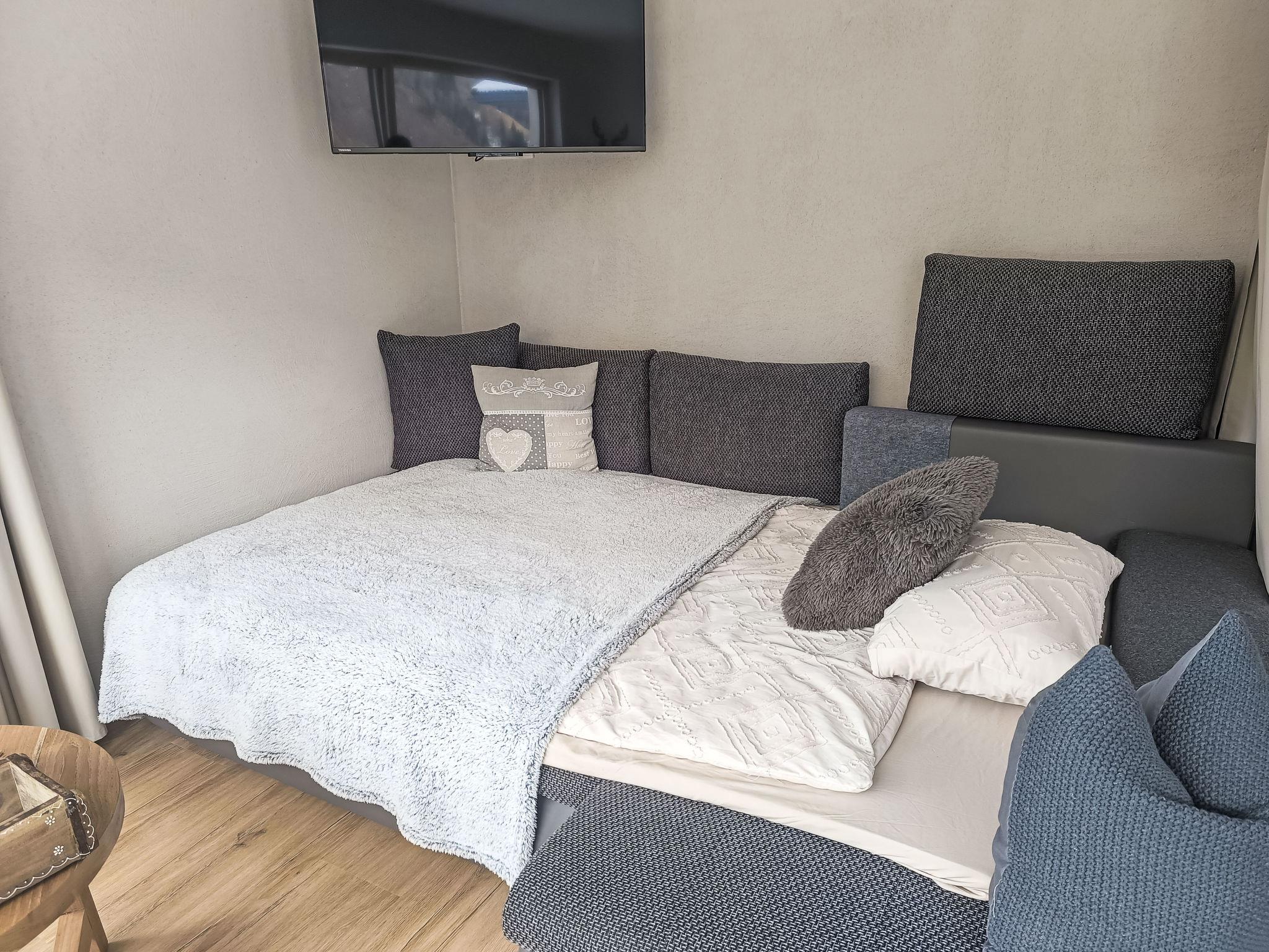 "Panorama", 2-room apartment 54 m2, on the lower ground floor. Tasteful and cosy furnishings: entrance hall. Living/sleeping room with 1 double sofabed and TV (flat screen). 1 double bedroom. Open kitchen (oven, dishwasher, 4 ceramic glass hob hotplates, toaster, kettle, microwave, freezer, electric coffee machine, Capsules for coffee machine (Dolce Gusto) extra) with dining table. Shower/WC. Underfloor heating. Parquet floors, natural stone floors. Balcony 22 m2. Balcony furniture. Very beautiful panoramic view of the mountains and the resort. Facilities: Internet (WiFi, free). Please note: non-smokers only. Smoke alarm, fire extinguisher, no lift.