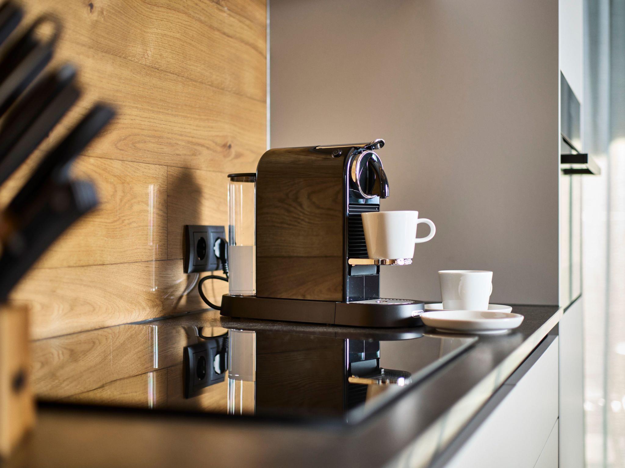 Immerse yourself in a world of comfort and style that this unique flat has to offer. The entrance area and the living and dining area with an open-plan kitchen, stylish lighting, a spacious dining table and a Smart TV and SONO sound system invite you to linger. The kitchen is fully equipped with all the utensils you need to develop your culinary skills. Whether you are a gourmet chef or want to prepare a quick meal, you will find everything you need to prepare your favourite dishes.