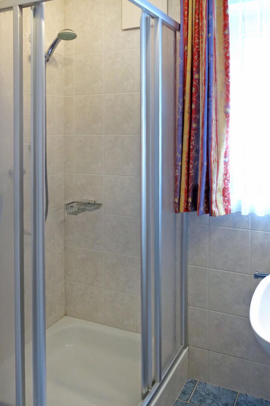 "Elfriede", 8-room apartment 112 m2 on 2 levels. Bright, practical furnishings: upper floor: 1 double bedroom. 1 room with 1 bed and 1 double sofabed. Kitchen-/living room (4 hot plates, oven, toaster, kettle, electric coffee machine) with dining nook, satellite TV and radio. Exit to the balcony. Shower, sep. WC. Top floor: 1 double bedroom with sloping ceilings with hand-basin. 1 room with sloping ceilings with 1 double sofabed. 2 rooms with sloping ceilings, each room with 2 beds. With sloping ceilings kitchen-/living room (4 hot plates, oven, toaster, kettle, electric coffee machine) with dining nook, satellite TV and radio. Shower/WC, sep. WC. Oil heating. Carpet. 2 balconies. Balcony furniture. Facilities: children's high chair, baby cot. Internet (WiFi, free). Parking (5 cars). Please note: non-smokers only. Fire extinguisher. No internal connecting door between the separated properties. When there are less than the maximum number of guests staying at the property, not all of the bedrooms will be available for use.