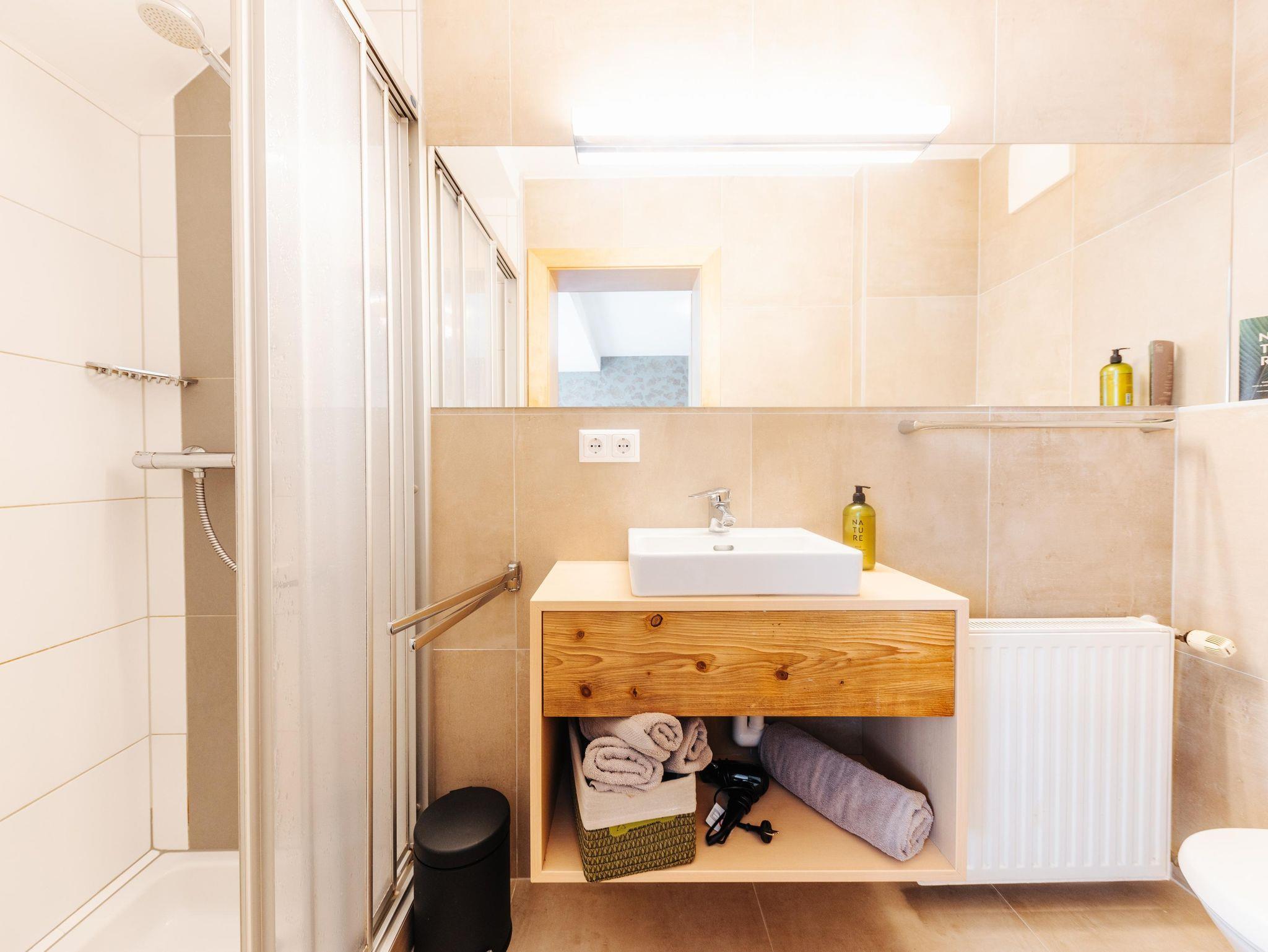 Schlafzimmer, Verbindungstüre Schlafraum oder Sitzmöglichkeit, DU/WC, Flat - Sat-TV (Digital, 90 Programme),Radio, Wecker, Minibar - Kühlmöglichkeit, Sitzecke, Schreibtisch - WLAN kostenlos, Zentralheizung