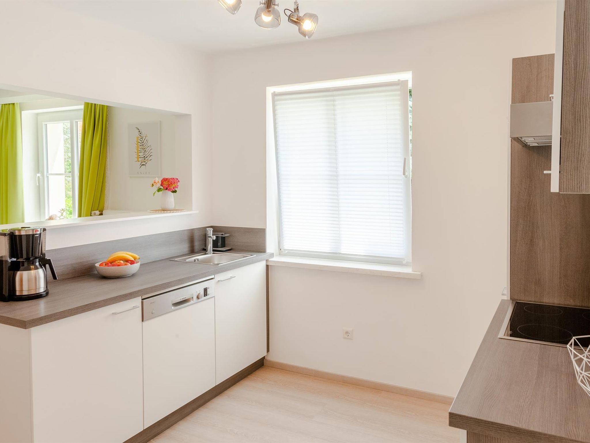 * komplett eingerichteter Küche (mit Backrohr, Geschirrspüler, Kaffeemaschine, Wasserkocher und Toaster)