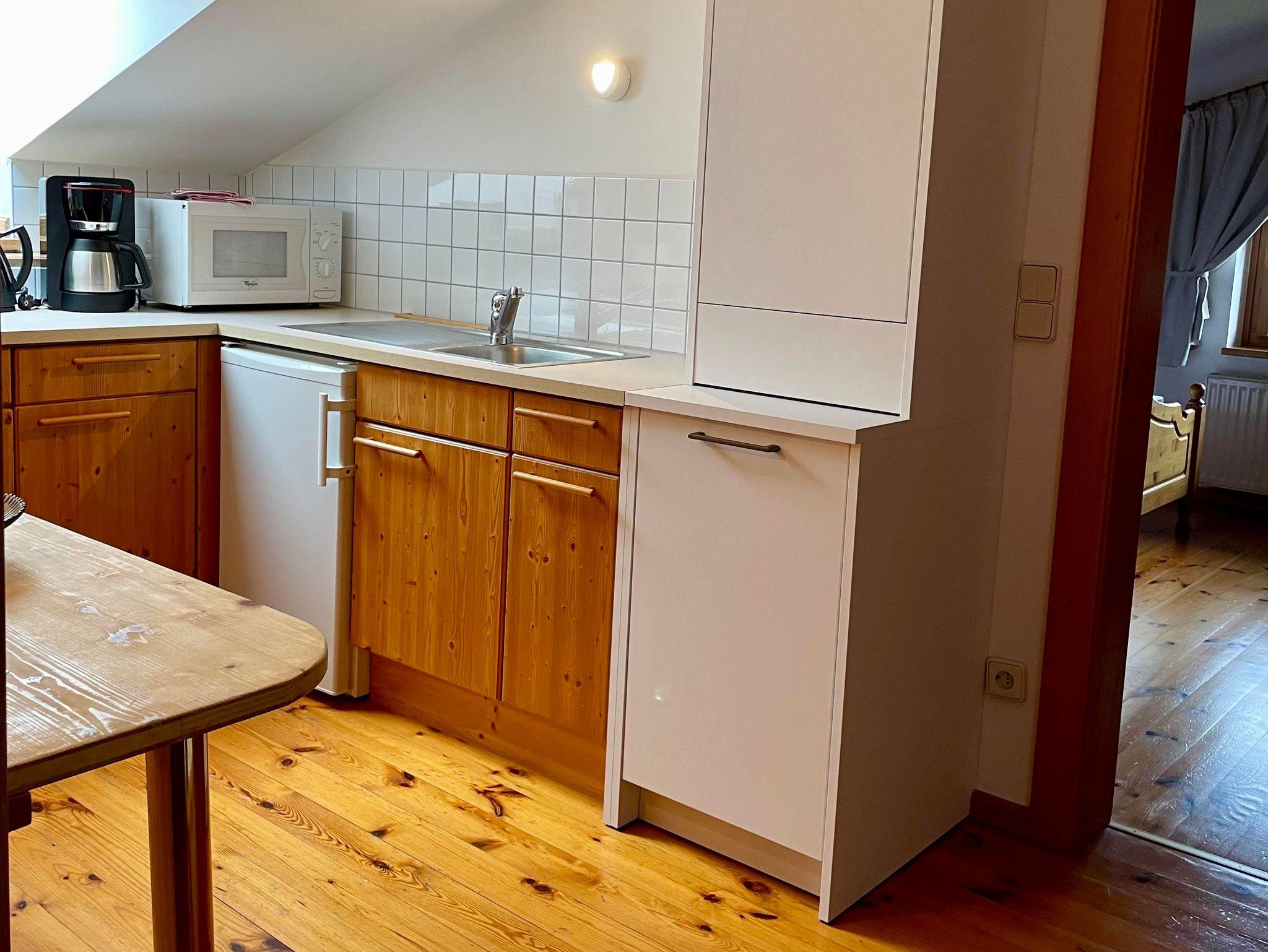 Gemütliche Ferienwohnung mit Parkettböden, zwei getrennte Schlafzimmer, Wohnzimmer, Küche, TV mit SAT, WLAN, Vorraum, Dusche und WC getrennt und Balkon. Die Küche ist ausgestattet mit Elektroherd, Kaffeemaschine und Mirkrowelle. Bettwäsche, Handtücher, Geschirrtücher sind vorhanden.