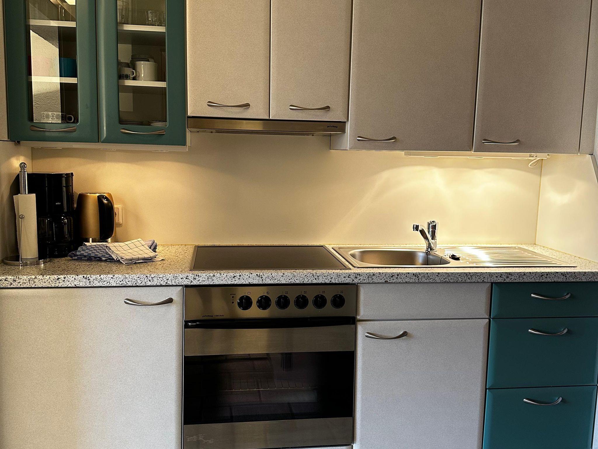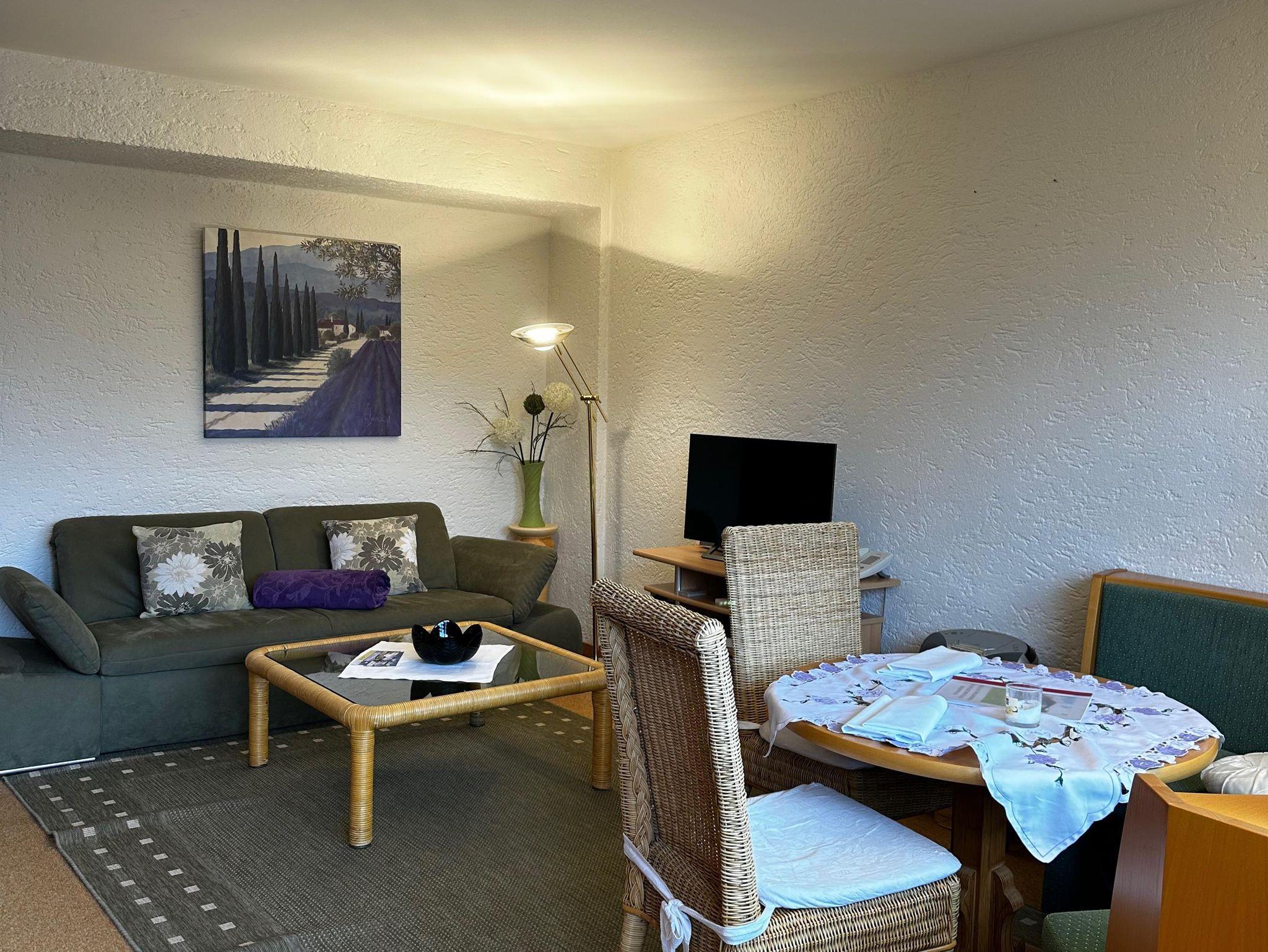 Das etwa 35 m² große Appartement ist ideal für bis zu 2 Personen und bietet einen kombinierten Wohn- und Schlafbereich, eine Küchenzeile, ein Badezimmer und einen Balkon.