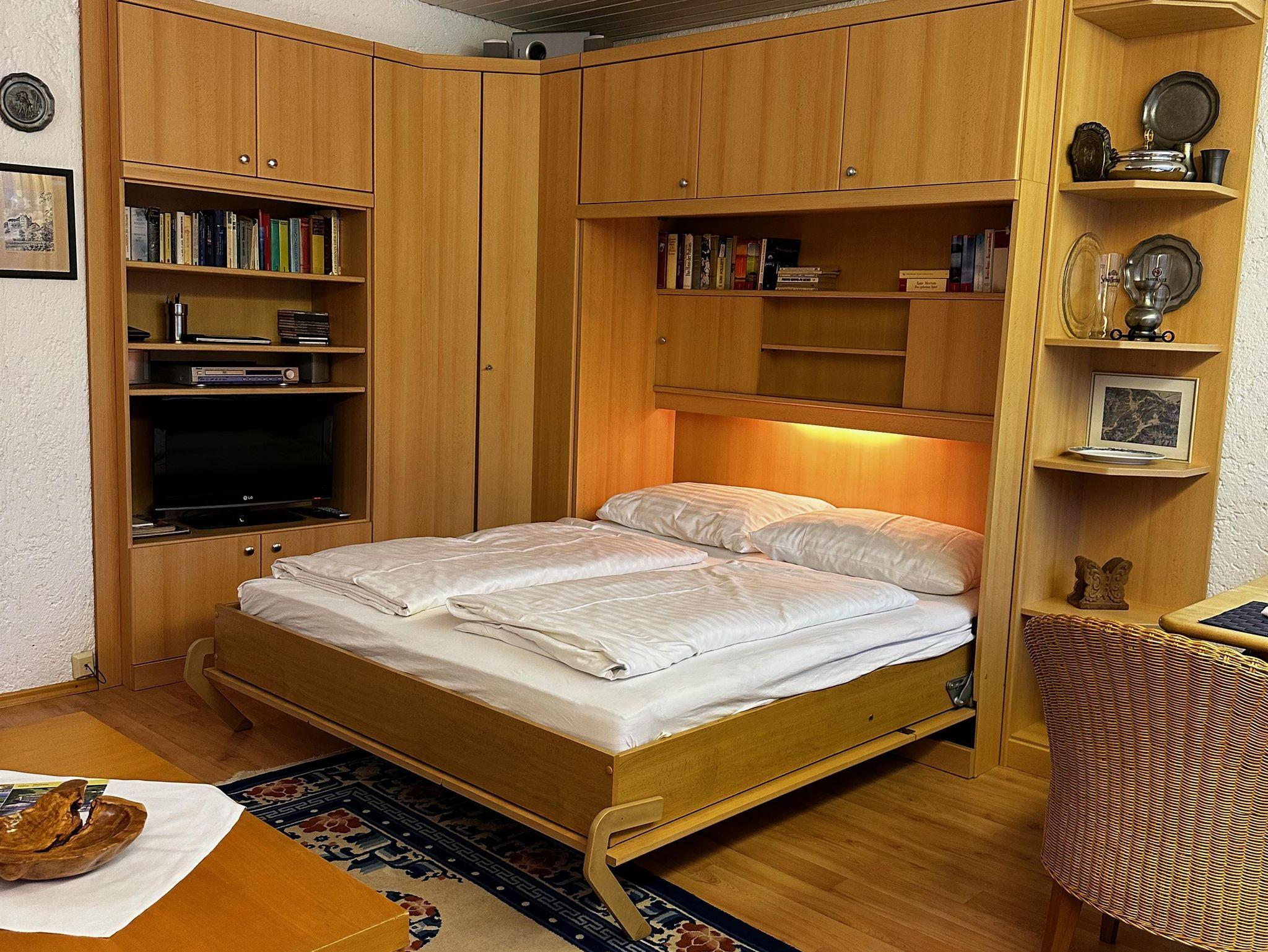 Das etwa 35 m² große Appartement ist ideal für bis zu 2 Personen und bietet einen kombinierten Wohn- und Schlafbereich, eine Küchenzeile, ein Badezimmer und einen Balkon.