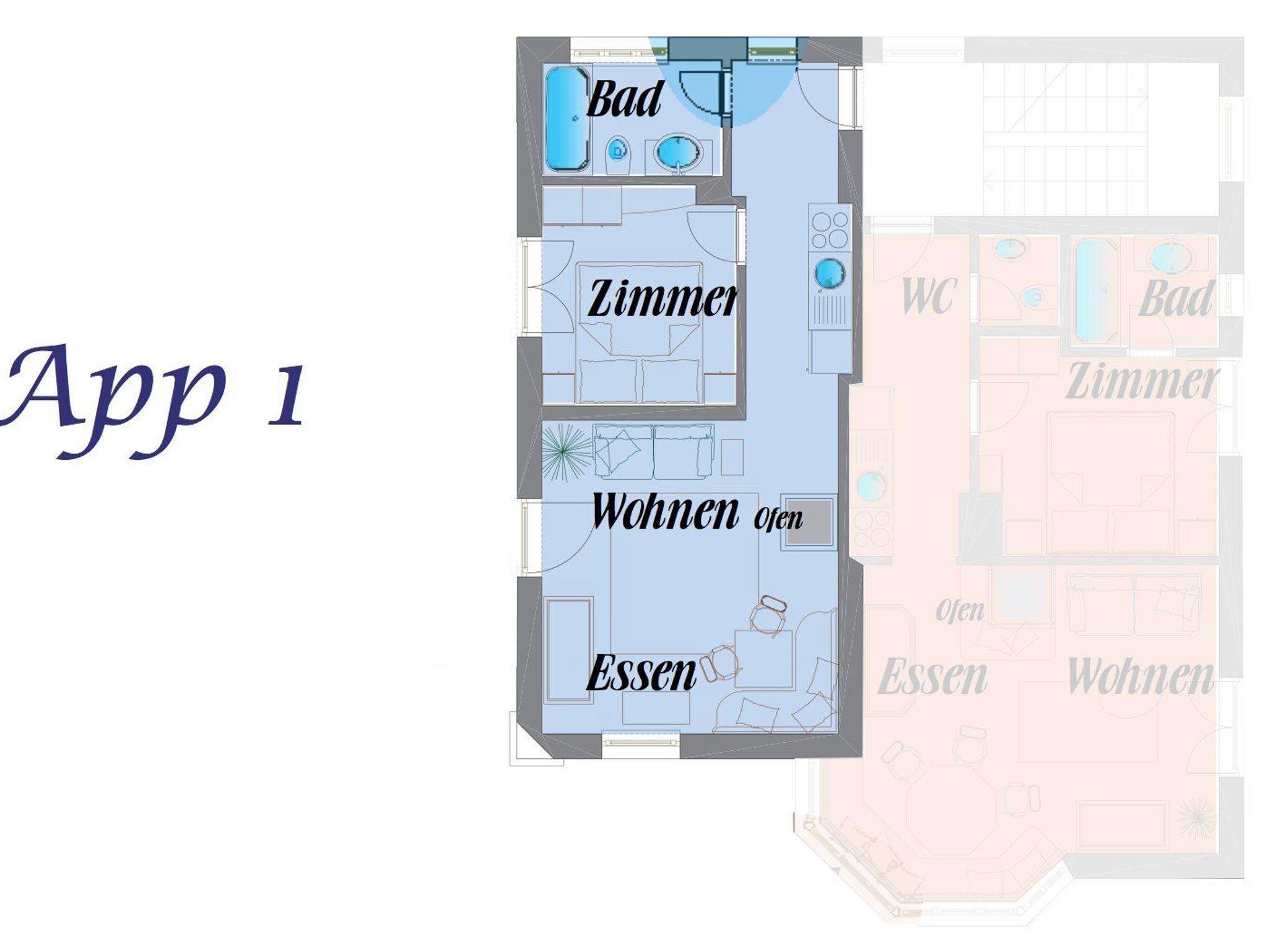 Die Appartements 1+2 zeichnen sich durch helles, luxuriöses und gemütliches Inventar aus. Sie wurden ländlich mit antiken Möbeln, Kachelofen, viel Liebe und Komfort eingerichtet. Sie befinden sich im Hochparterre, Bilder und Grundriss anbei.