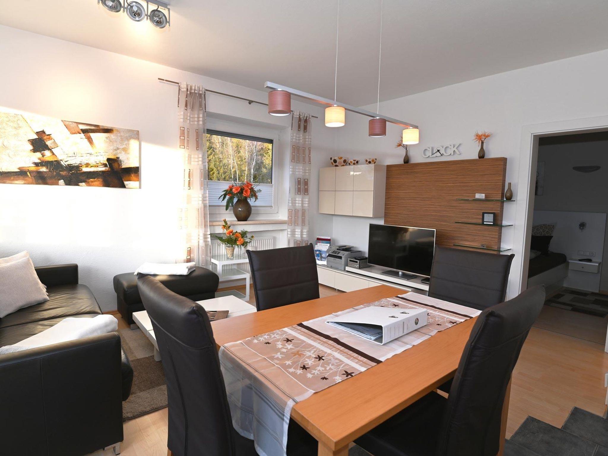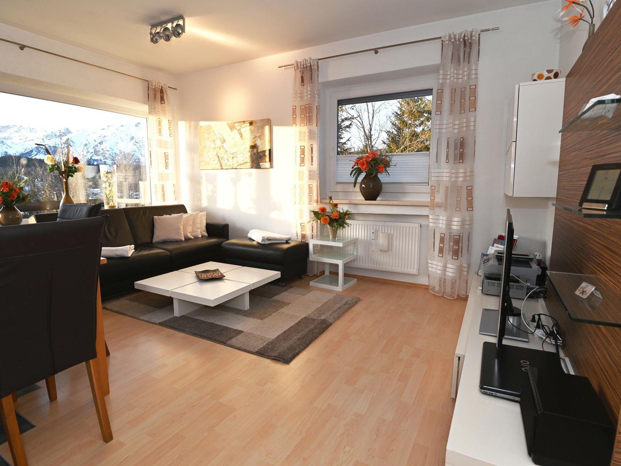 2-Zimmer-Luxus-Appartement***** (60 qm) mit 15 qm Südwestbalkon und gigantischem Ausblick auf Seefeld und die Alpen, hochwertige Ausstattung, Wohnzimmer mit einem Essbereich und einem Designersofa – in dem noch ein zusätzliches Doppelbett integriert ist sowie neustem technischen Equipment: 2 LED-TV, PC, Fax, kostenlosem Internetzugang (WLAN), separates Schlafzimmer mit extrabreitem (2,00 m) Bett , begehbarem Schrank, hochmodernes Bad mit Badewanne und Raindance-Dusche, Küche