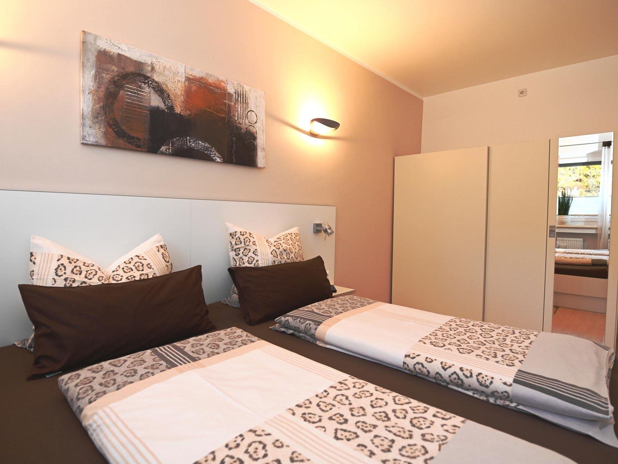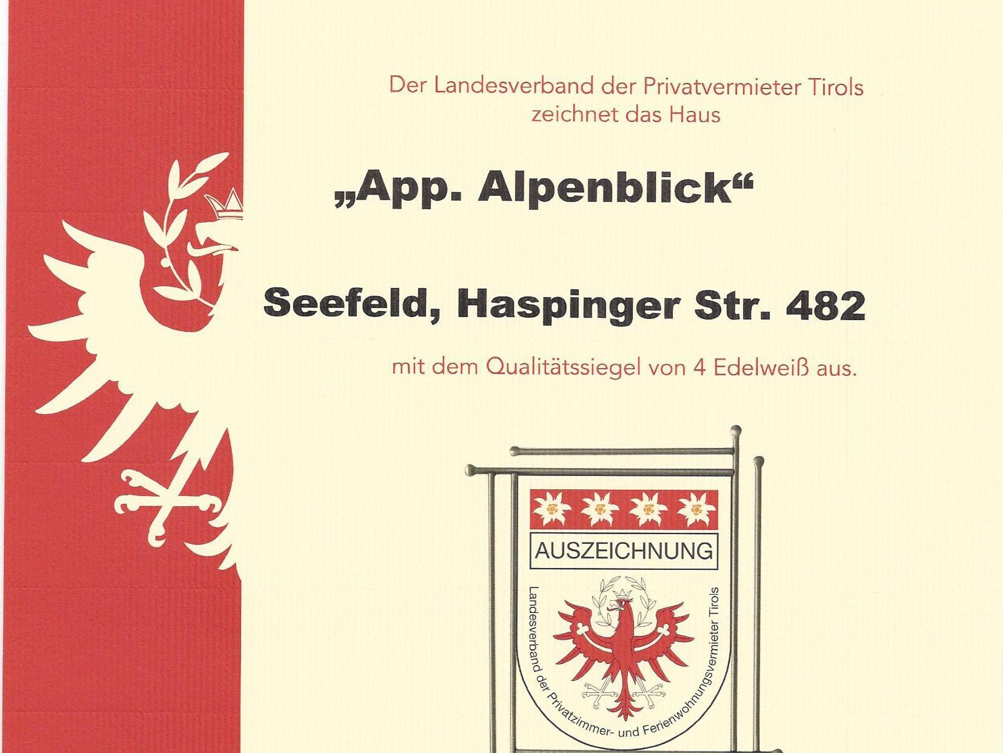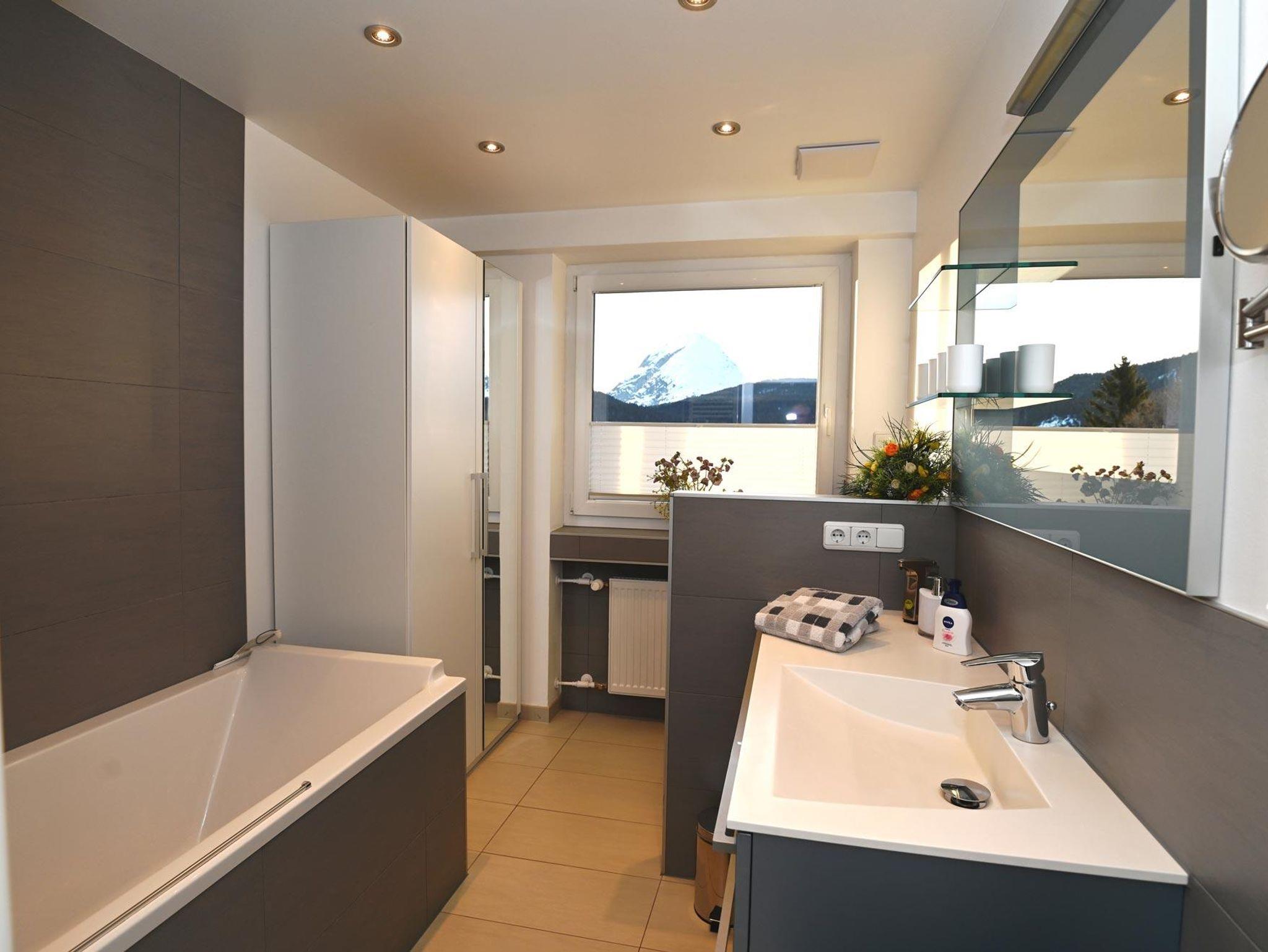2-Zimmer-Luxus-Appartements***** Alpenpanorama und Alpenblick ( je 65 qm) mit je 15 qm Süd-Südwestbalkon und traumhaften Ausblick auf Seefeld und die Alpen, hochwertige moderne Ausstattungen, Wohnzimmer mit einem großem Essbereich und einem Leder/Designersofa – in dem noch ein zusätzliches Doppelbett(1,80 cm) integriert ist sowie neustem technischen Equipments: 2 LED-TV, Laptops, Fax, Drucker, Skype, kostenlosen Internetzugängen (WLAN), separate Schlafzimmer mit extrabreitem (2,20 m) Bett, geräumigen begehbare Schränke, hochmoderne Bäder mit übergroßer Raindance-Dusche und Badewanne, abgetrennte WC´s, vollausgestatte Küchen, Flur und Abstellraum. Die Appartements liegen absolut ruhig am Ende einer Sackgasse und dennoch zentral! Hauseigene Parkplätze! Tägl. Brot- oder Brötchen-Lieferung! Kinder unter 6 Jahre sind kostenlos. Hunde willkommen! Die beiden Appartements liegen Tür an Tür auf einer Etage und können über den Balkon verbunden werden, sodass ein großer 25 qm Balkon entsteht - daher eignen sie sich auch für mehrere oder größere Familien, die zusammen reisen möchten. Bis zu den Restaurants, Fußgängerzone, Olympiafun- und wellnesbad, Wildsee Skischulen, Liften, Loipen, Rad-, und Spazierwegen sowie zum Skibus (50 m) sind es nur ca. 300 Meter. Ausstattungen: Küchen: voll ausgestattete Einbauküche mit Mikrowelle, Spülmaschine, Backofen, Dunstabzug, Cerankochfeld und Kühlschrank mit Gefrierfach, Kaffeemaschine, Toaster, Wasserkocher, Sodamaschine... Schlafzimmer: mit sehr breitem Doppelbett (Kingsize) (2,20 m breit) und geräumigem Schrank, Radiowecker, Safe und zusätzlichem LED-TV. Wohnzimmer: mit Kabelfernsehen, LED-TV, DVD und CD, Computer mit kostenlosem W-Lan, Skype, Fax und Leder/Designergarnitur mit zusätzlich integriertem Doppelbett (1,80 m breit) für 2 zusätzliche Schlafgelegenheiten, großzügiger Essbereich, Anrichte mit CD´s, DVD´s, Bibliothek, Gesellschaftsspielen und Kinderspielzeug. Bäder: mit Rain-Dance-Dusche und Badewanne, abgetrennten WC, Handtuchwärmer, beleuchteter Doppelwaschtisch, Schrank, und Fön Süd-Südwestbalkon: 15 m² mit Markise, 2 Liegestühlen, 1 Tisch und 4 Stühlen, Elektrogrill Abstellraum: große offene Garderobe für Wintermäntel, Skianzüge, Kletterausrüstung, Schuhe und Platz für Koffer, Ganzkörperspiegel etc. Im Untergeschoss befindet sich ein Abstellplatz für Ski-und Fahrräder. Baby-/Kleinkindausstattung: auf Wunsch steht ein Kinderbettchen (60 x 120 cm) mit Bettwäsche sowie ein verstellbarerer Kinderhochstuhl und Kindergeschirr zur Verfügung. Direkt am Haus befinden sich ausreichend Parkplätze. Nichtraucherwohnung - auf dem Balkon kann geraucht werden.