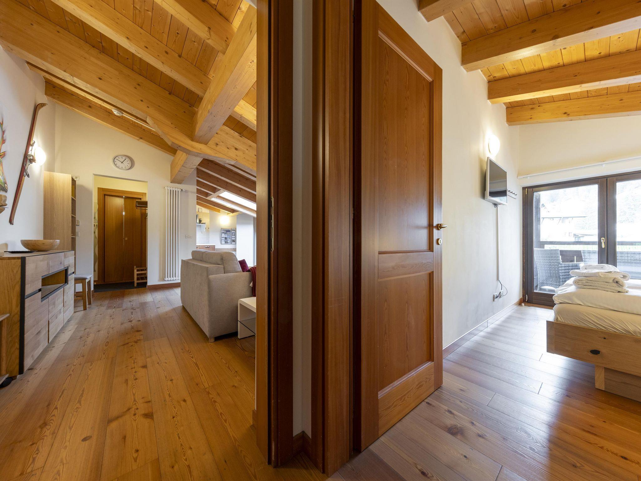 Das Apartment Luna (ca. 85 m²) liegt im 2. Stock und verfügt über einen großen Wohn-Essbereich mit Eckbank, Küchenzeile, großes Sofa, Badezimmer mit Badewanne, Toilette und Bidet. Besonders gemütlich sind die offenen Dachbalken. Eine 2te Toilette befindet sich im Eingangsbereich. Das zweite Schlafzimmer verfügt über zwei getrennte Betten. Die Einrichtung besteht aus Vollholzmöbeln. Der große überdachte Balkon ist vom Wohnzimmer und vom vorderen Schlafzimmer (Doppelbett) aus erreichbar.