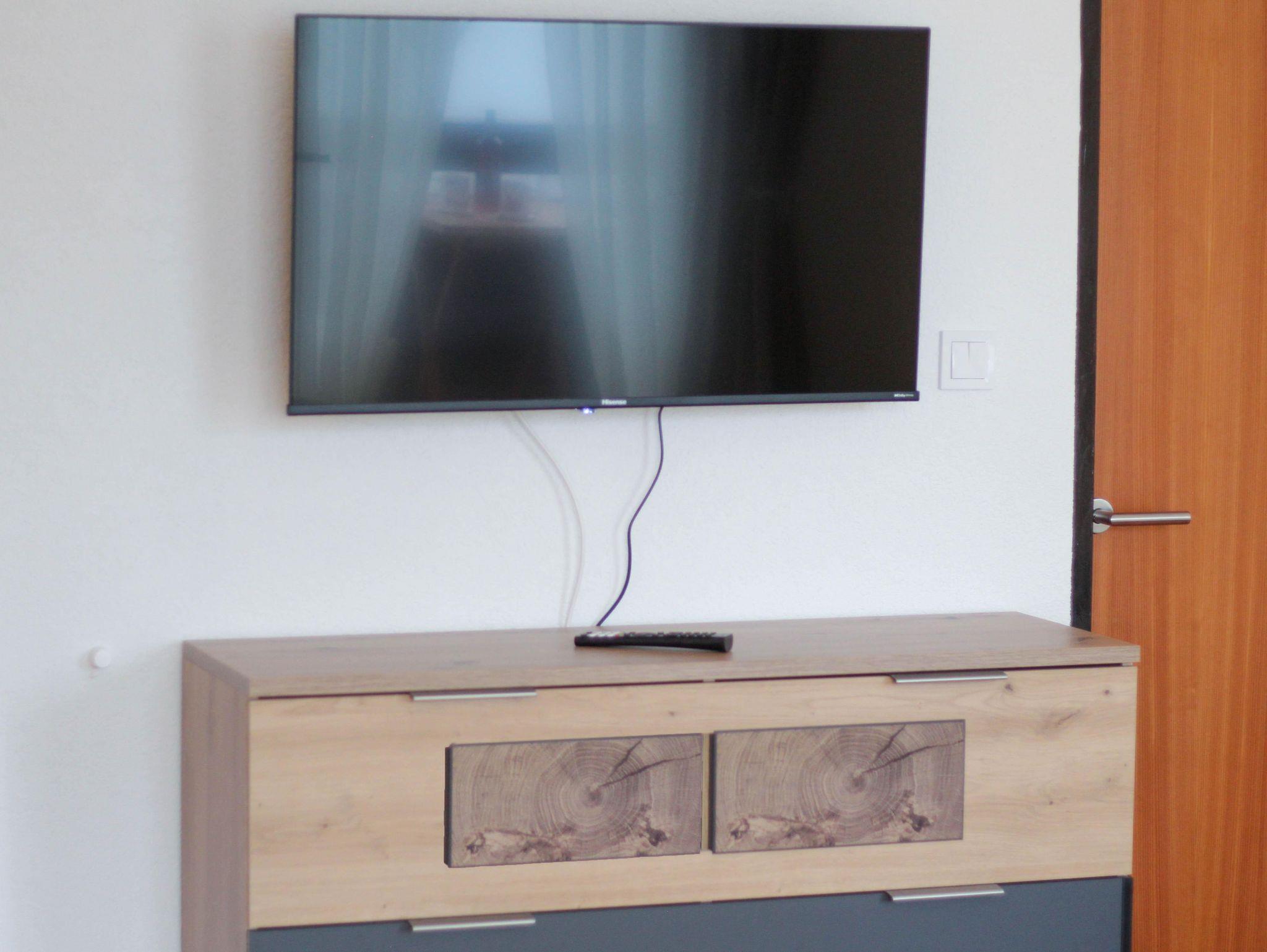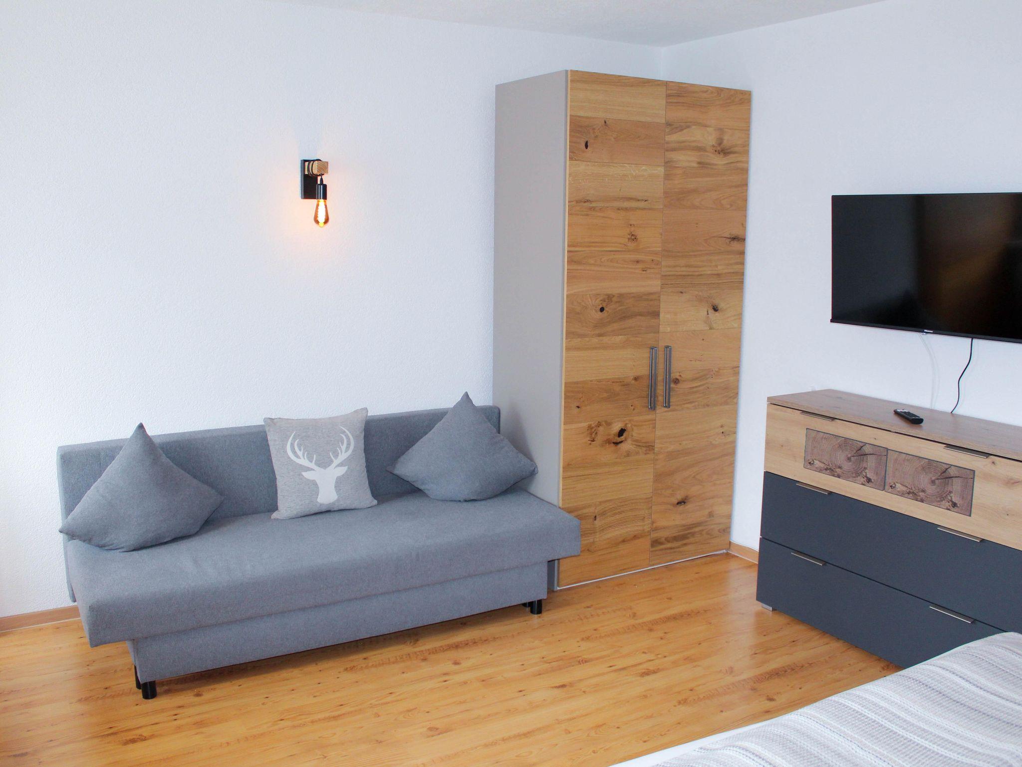 Das komplett erneuerte Wohnzimmer bietet modernen Komfort und eine gemütliche Atmosphäre für entspannte Urlaubstage.