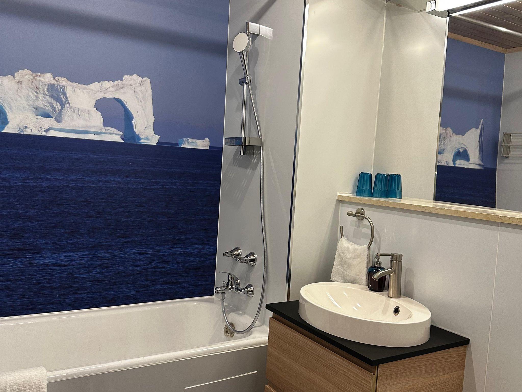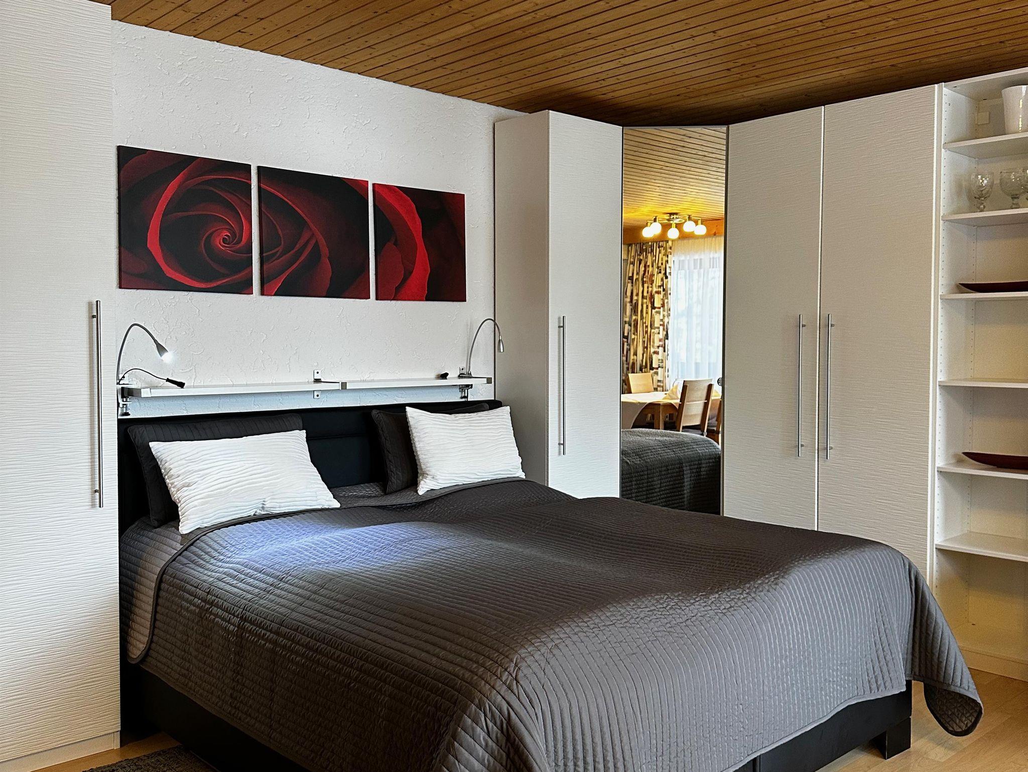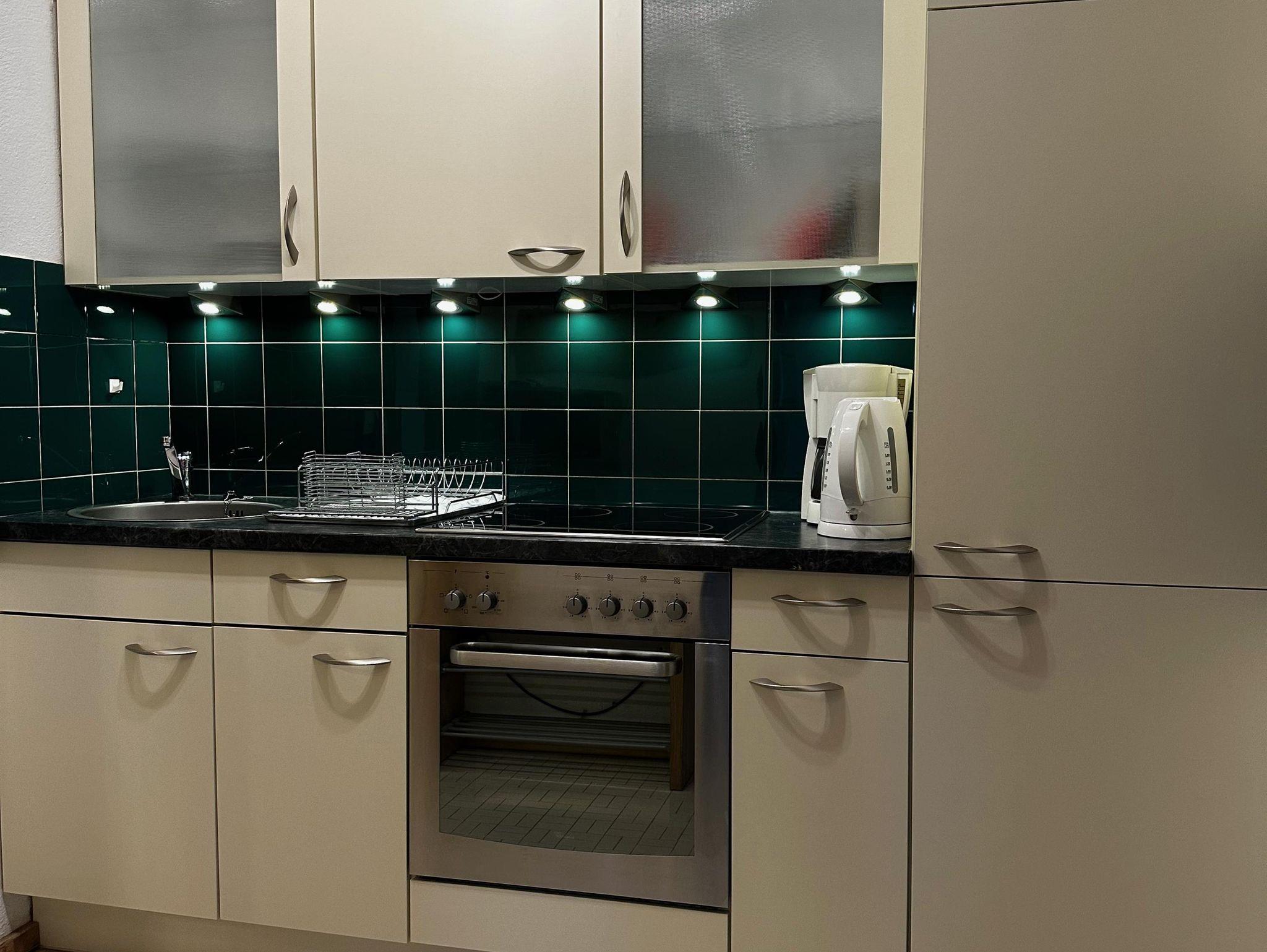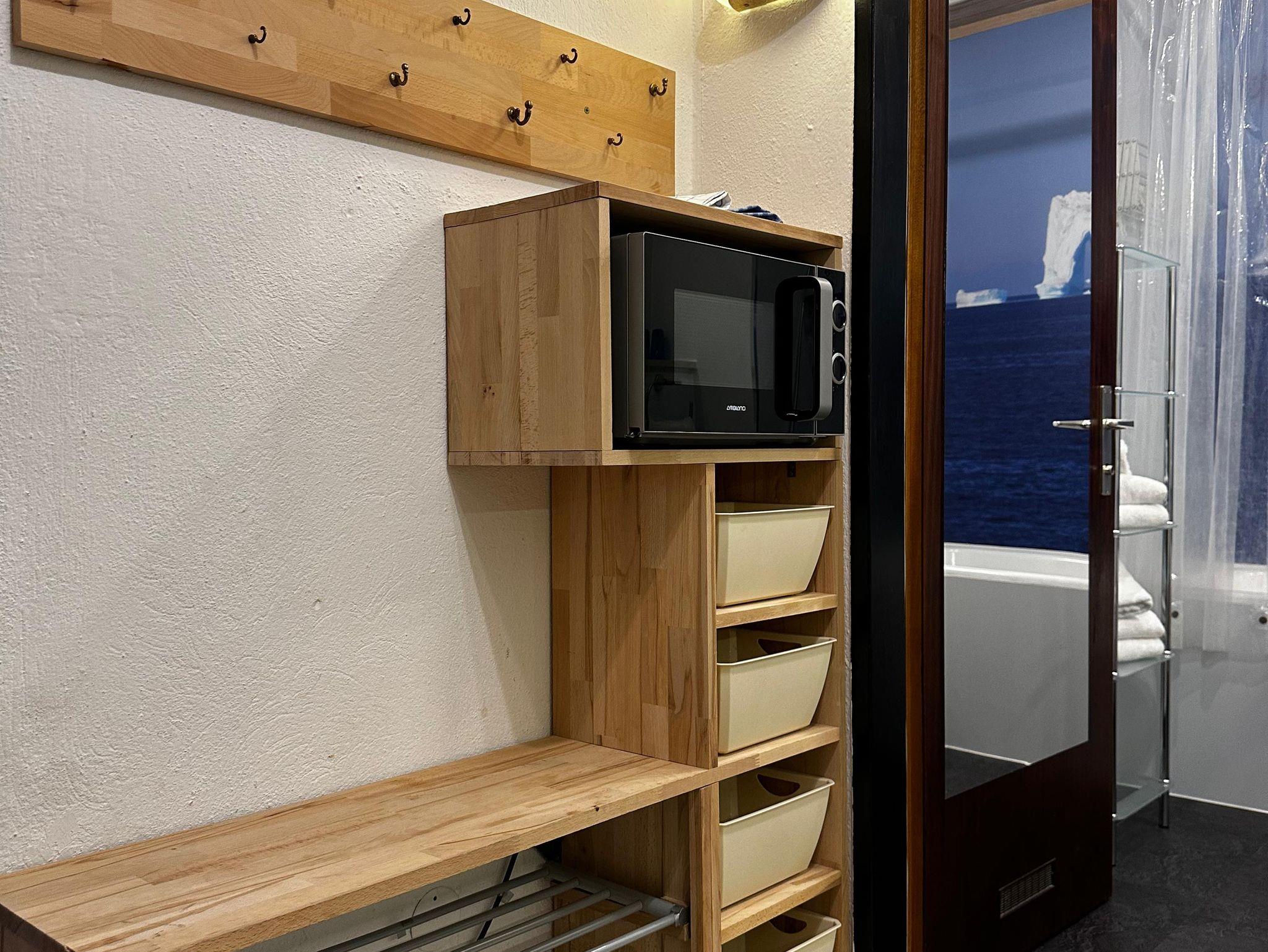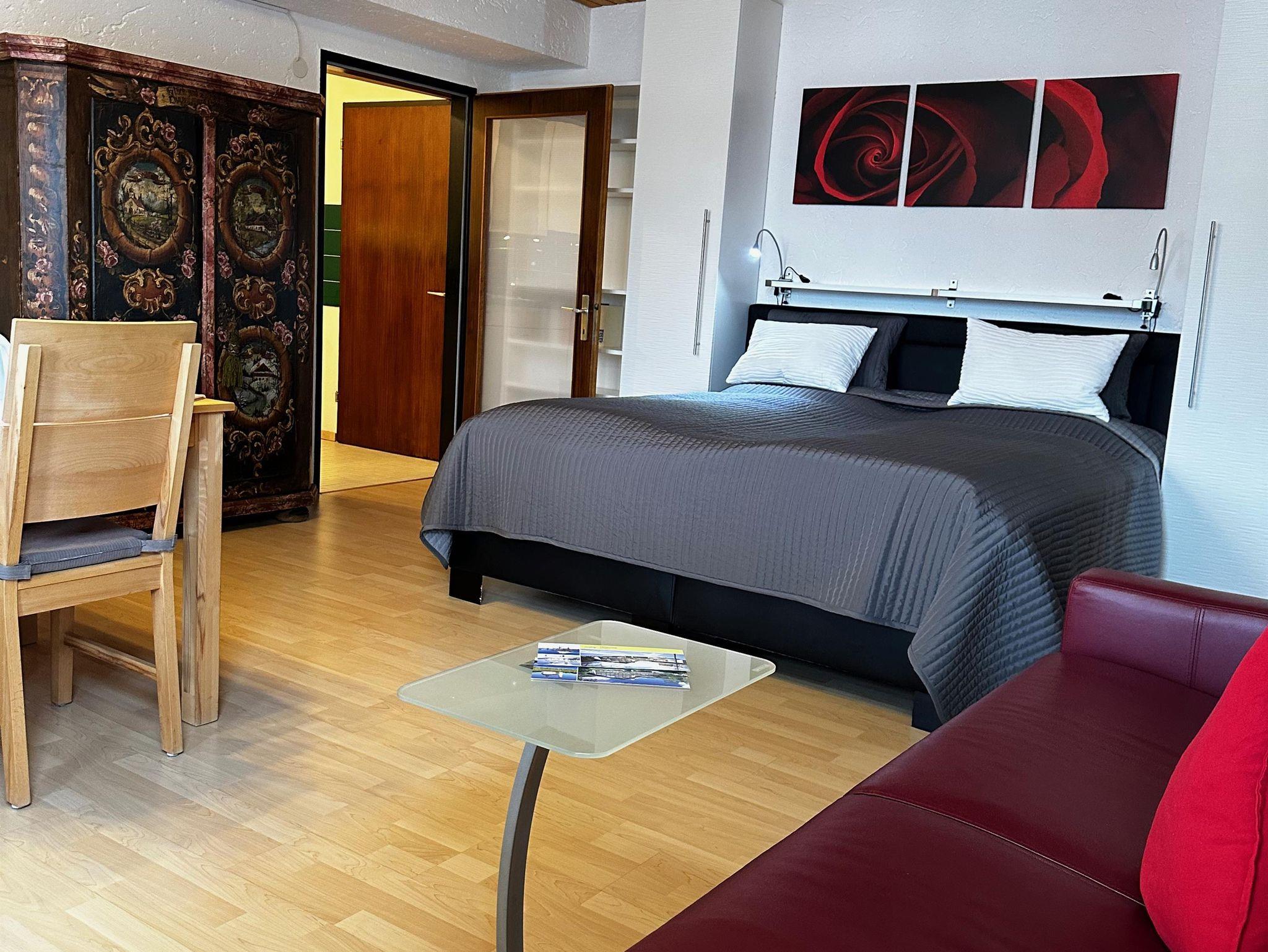 Das etwa 35 m² große Appartement ist ideal für bis zu 2 Personen und bietet einen kombinierten Wohn- und Schlafbereich, eine Küchenzeile, ein Badezimmer und einen Balkon.