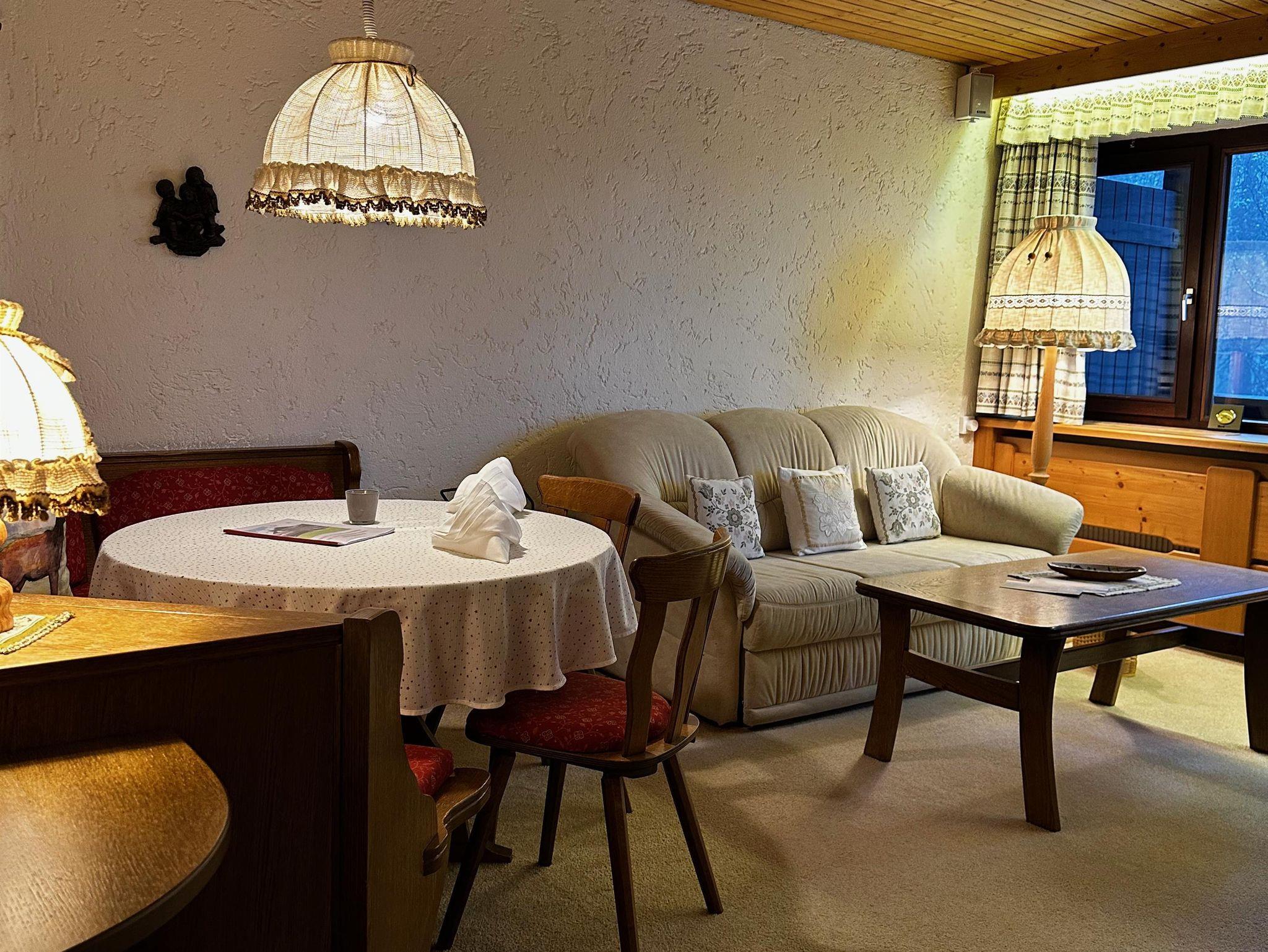 Unser Haus liegt in sonniger, ruhiger Lage und das Ortszentrum sowie das Wander- Skigebiet Rosshütte sind nur wenige Gehminuten entfernt. Eine idyllisch gelegene Liegewiese, eigener Spielplatz und Garagen sind vorhanden. Nach einem sportiven Tag können Sie im beheizten Hallenbad sowie in der Finnischen- oder Vitalsauna relaxen. Der offene Kamin und Billard laden zum geselligen Abend ein. Hotspot ab Mitte 2005.