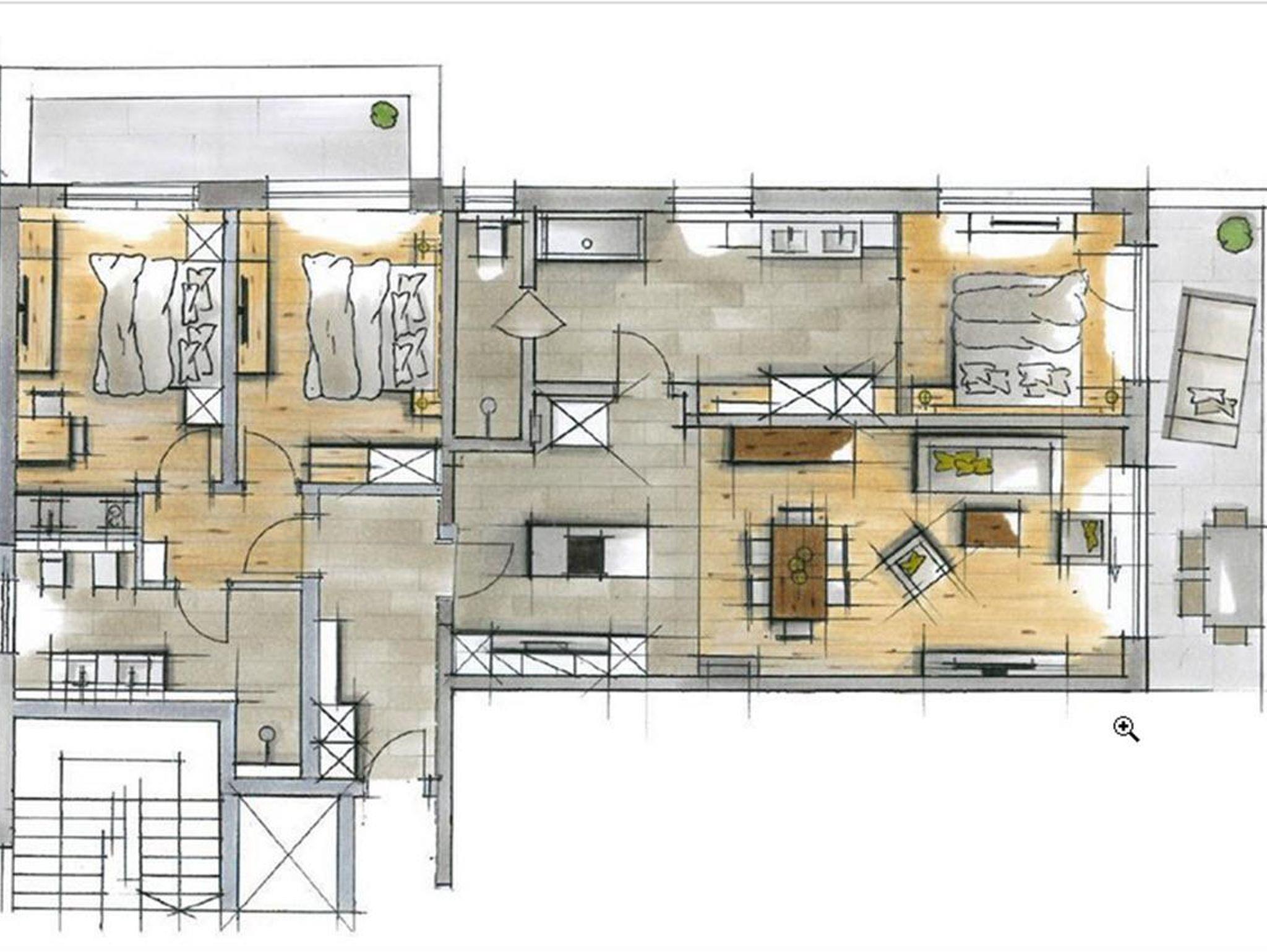 3 Schlafzimmer * 2 Badezimmer Dusche/Badewanne/WC * 2-8 Personen * 1. / 2. Stock * Süd-Ost Seite / 130 m2