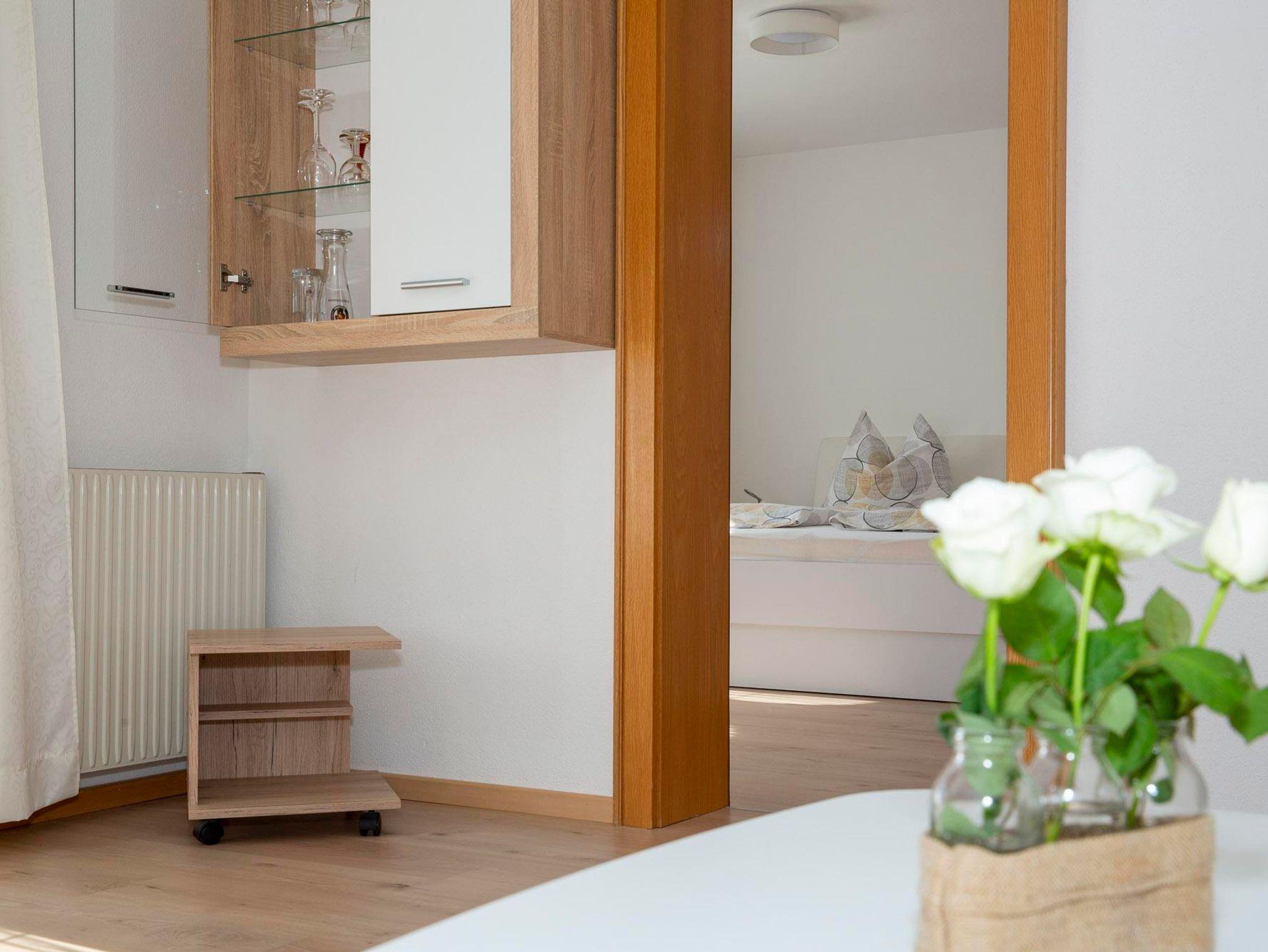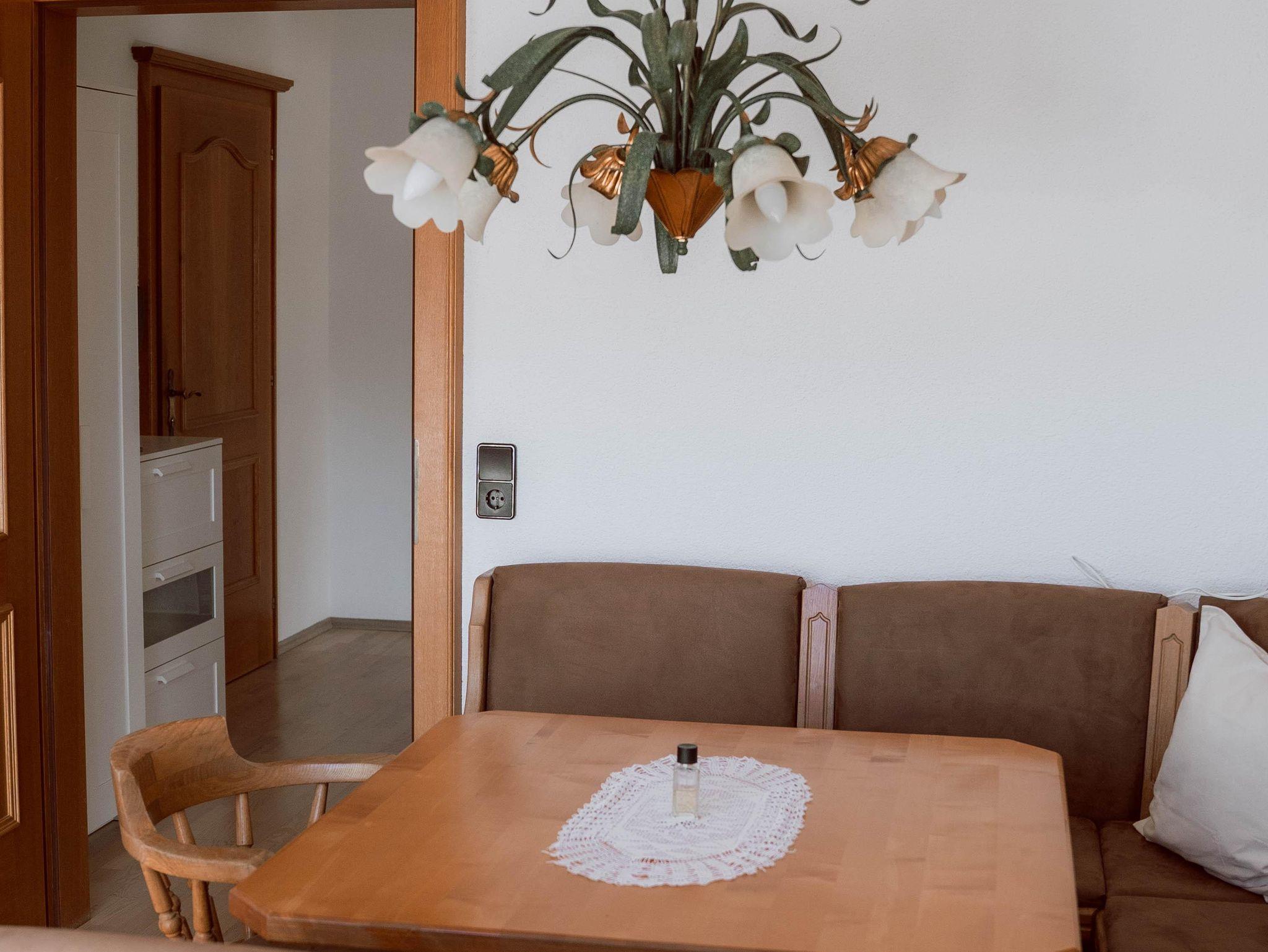 Unser gemütliche eingerichtetes Appartement (50m2) ist für 2 Personen geeignet. eingeteilt ist es in einem Vorraum-mit Essecke, ein Wohnzimmer mit der Schlafchouch, eine kleine Küche (mitGeschirspüler und Microwelle) ein Schlafzimmer und ein Bad mit WC. Außerdem gibt es einen Balkon, sehr sonnig und mit Blick zur Hohen Munde.