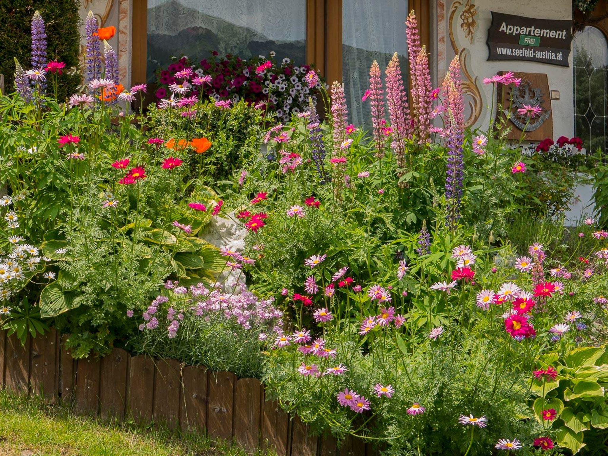 Ein großer, bunter Blumengarten umgibt unser Haus, liebevoll von den Gastgebern gepflegt. Hinter dem Haus lädt eine duftende Blumenwiese zu gemütlichen Spaziergängen auf den Geigenbühel ein, der im Winter als Skipiste genutzt wird. Die optimale Lage ermöglicht es sogar, mit angeschnallten Skiern zum Sammelplatz der Schischule Seefeld oder zum Skilift Geigenbühel zu gelangen.