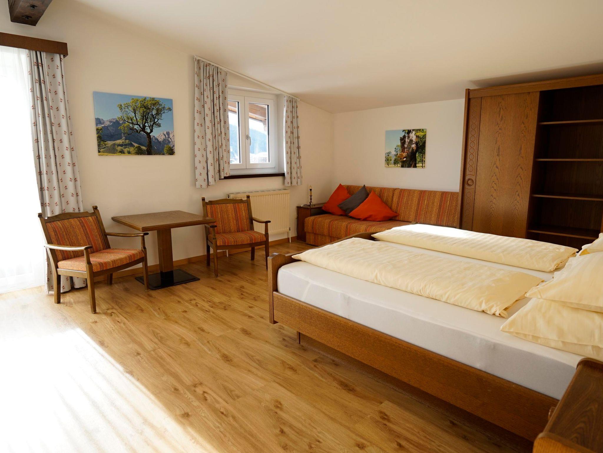 3-Raum-Appartement mit 102 m² im 2. Stock mit großem Südbalkon und sensationellem Blick in die Berge. Wohnzimmer mit gemütlicher Sitzecke (auch Schlafsofa) und Essecke, 1x Schlafzimmer mit Doppelbett und Zusatzbett sowie kleinem Tisch, 1xSchlafzimmer mit Doppelbett und extra Handwaschbecken, geräumige Küche mit Geschirrspüler, Badezimmer mit Dusche, getrenntes WC