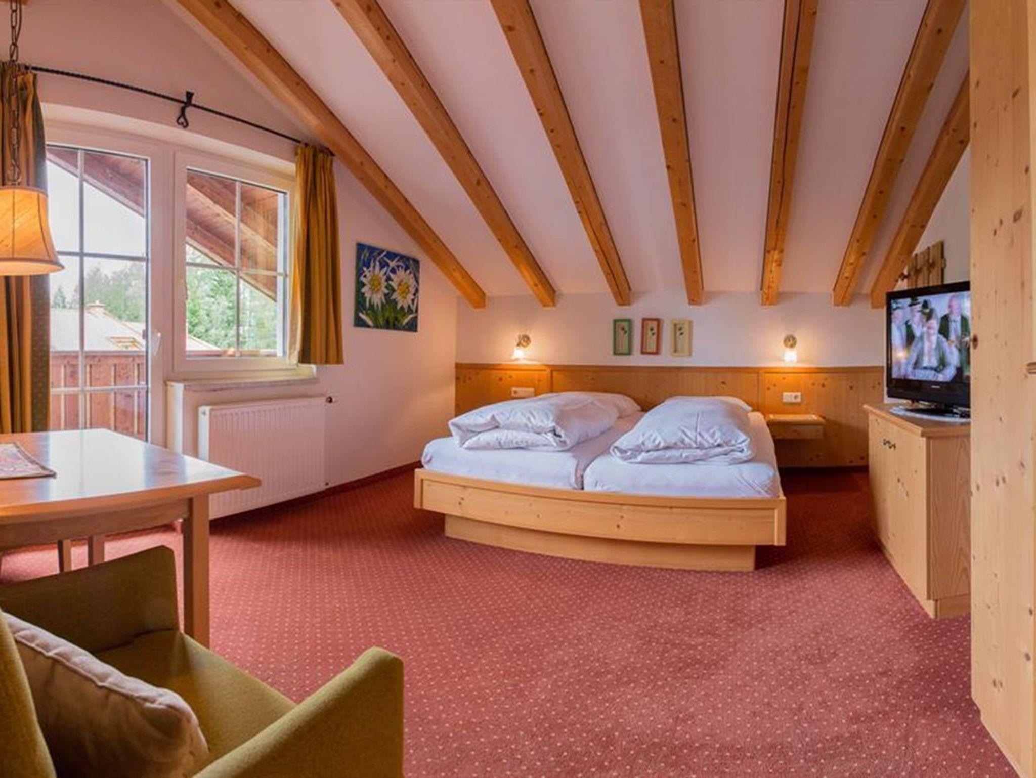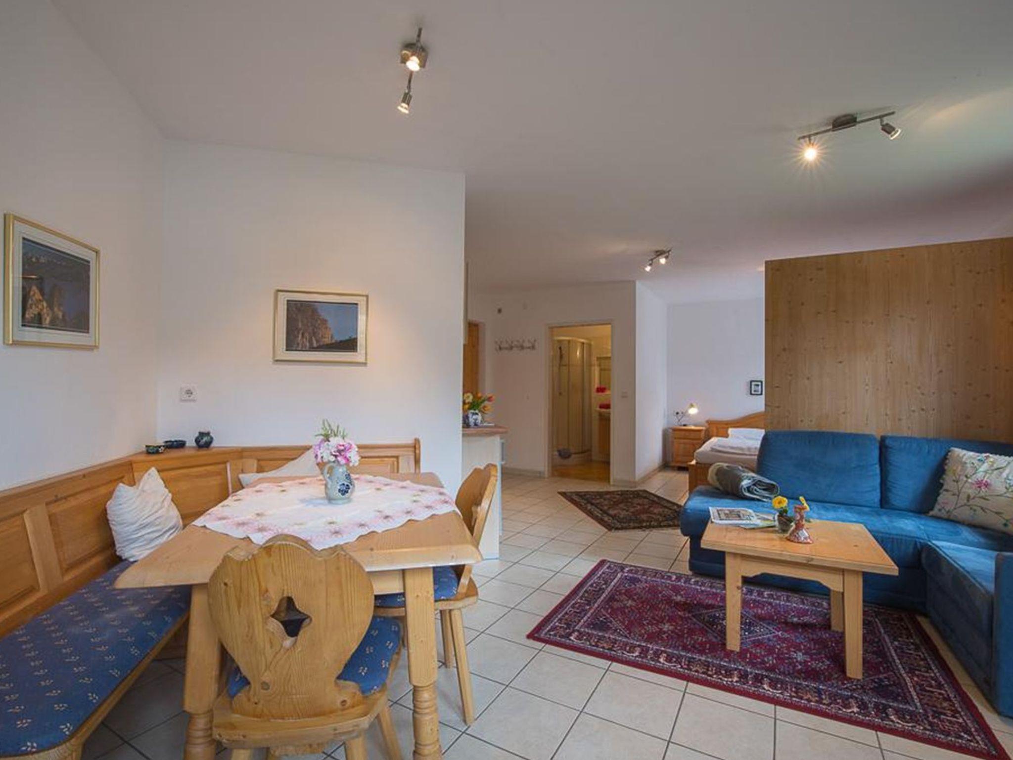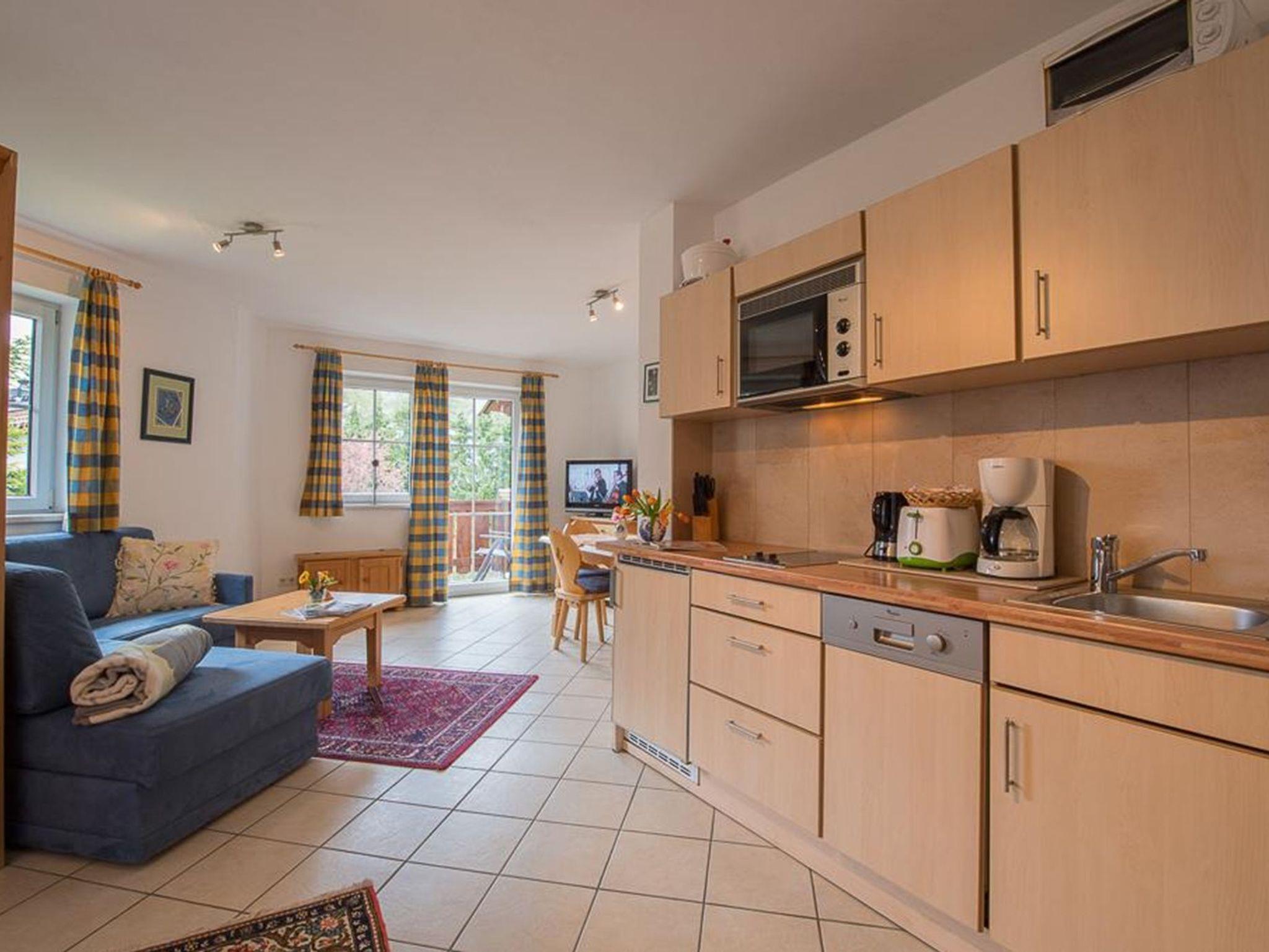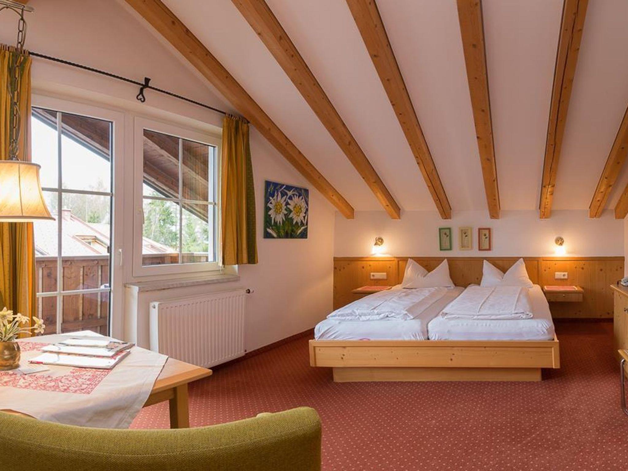 EDELWEISS - Gemütliche Einraum-Wohnung (25 m²) mit geneigten Dachbalken für 2 Personen. Privater Balkon mit Blick auf das Karwendel. Vorraum mit voll ausgestatteter Küchennische, Bad mit Wanne und Föhn, Flat-Screen-HD-TV. Die Wohnung mit dem Kuschelfaktor für 2! PRIMULA - Helle, geräumige, ebenerdige Einraum-Wohnung mit 35m², Küche mit Geschirrspüler, Balkon, Extra-Essecke und Couch-area, schönes Bad! Bitte fragen Sie an welche Wohnung angeboten wurde!