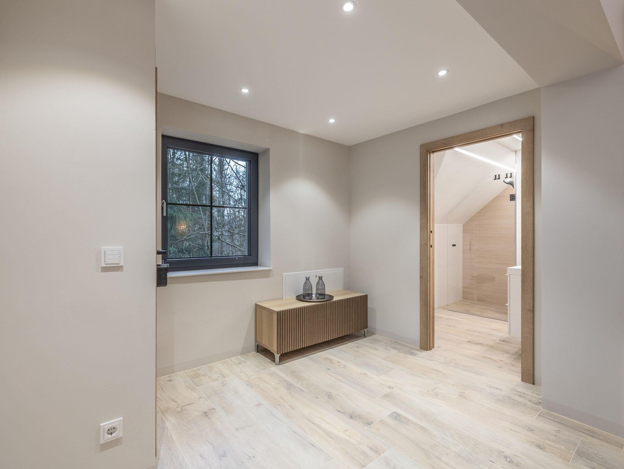 Wunderschöne Ferienwohnung mit Panoramafenstern und Blick auf den Wald. Die gesamte Wohnung wurde komplett neu renoviert und bietet auf 90 m² Platz für bis zu 8 Personen. Genießen Sie eine große, moderne Küche, ideal für gemeinsame Kochabende. Die Wohnung verfügt über zwei Schlafzimmer im ersten Stock.