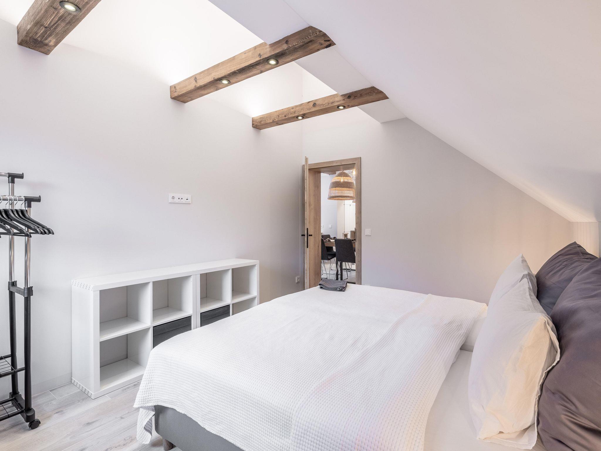 Die gesamte Wohnung befindet sich im ersten Stock, wurde komplett neu renoviert und bietet auf 90 m² Platz für bis zu 8 Personen. Es gibt zwei getrennte Schlafzimmer mit Doppelbett sowie ein extra großes Schlafsofa im Wohnbereich, das Platz für weitere 4 Personen bietet. Freuen Sie sich außerdem auf eine große, moderne Küche, ideal für gemeinsame Kochabende.