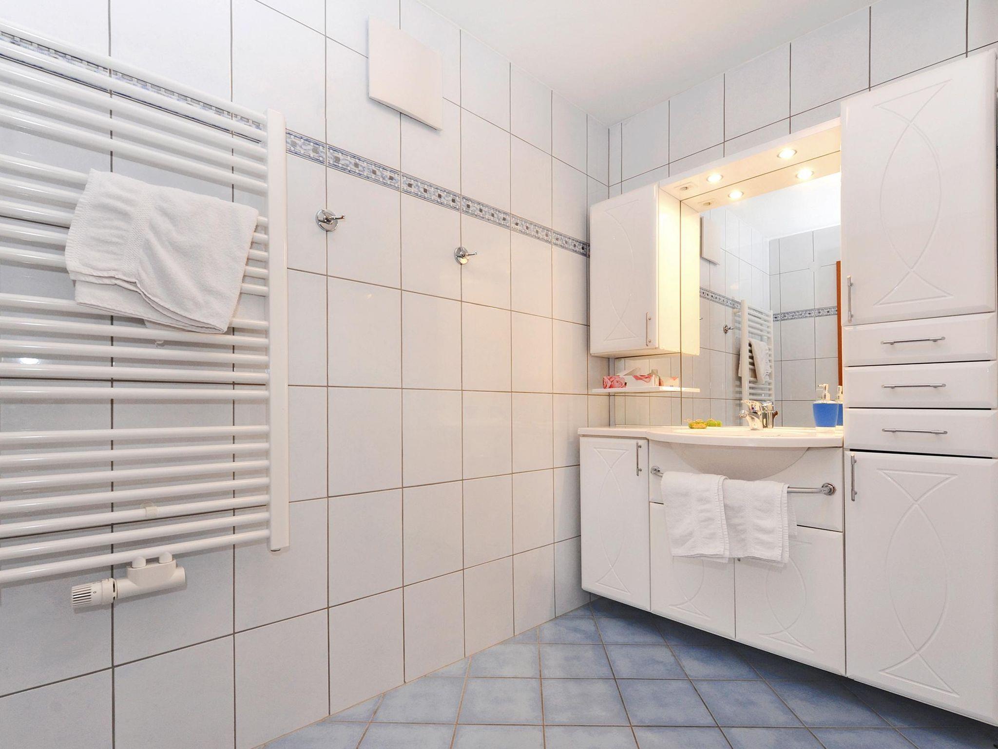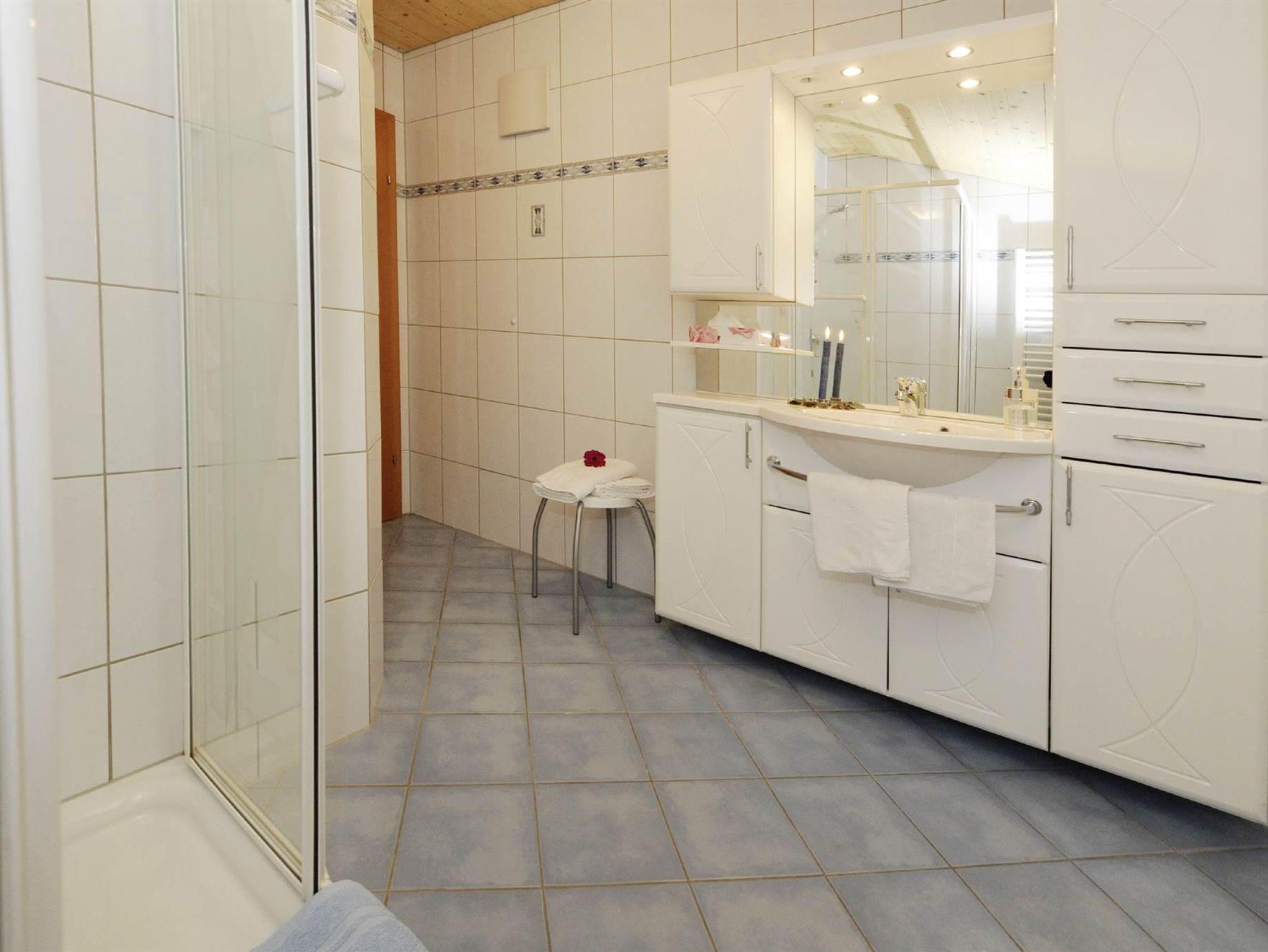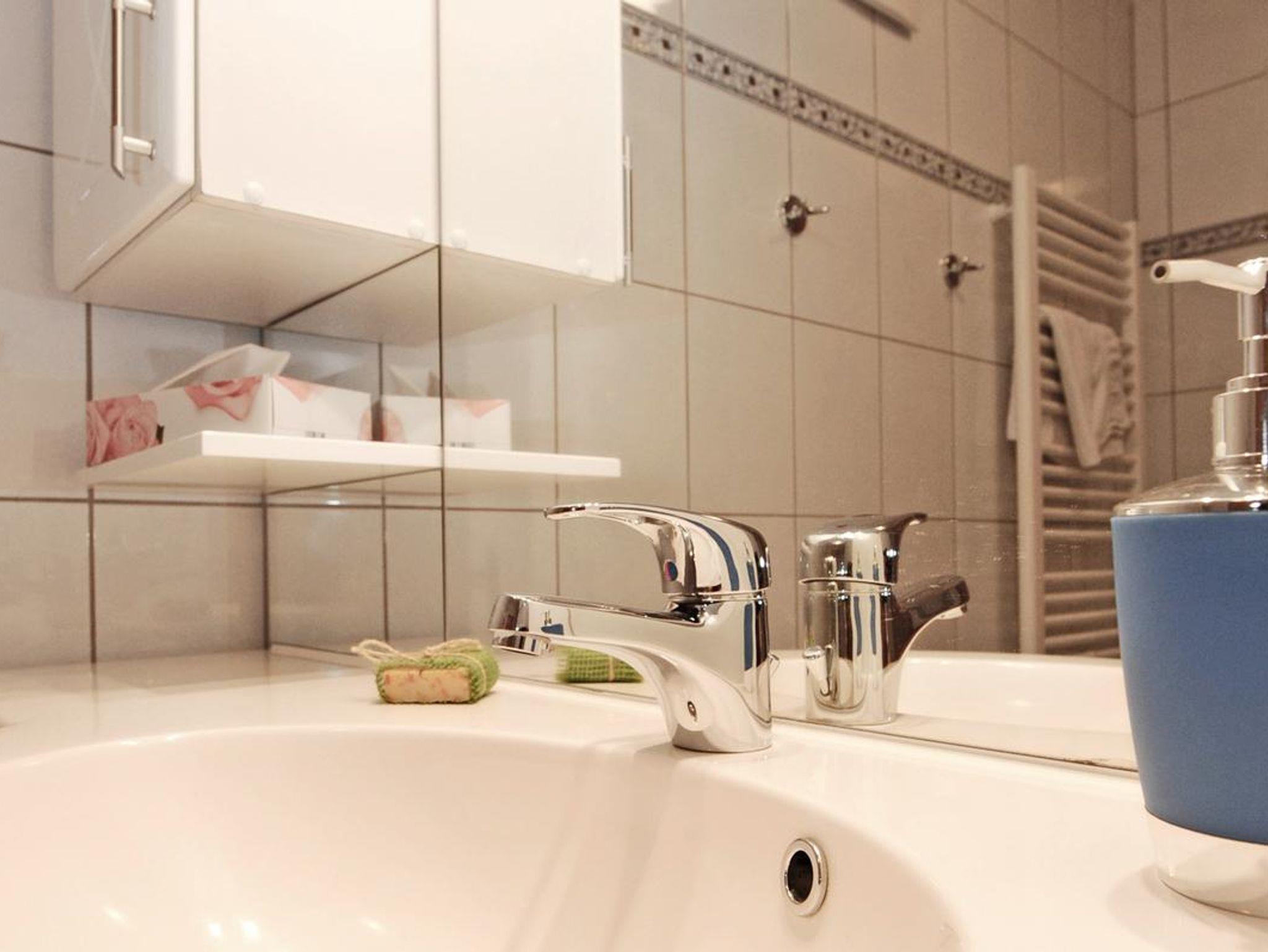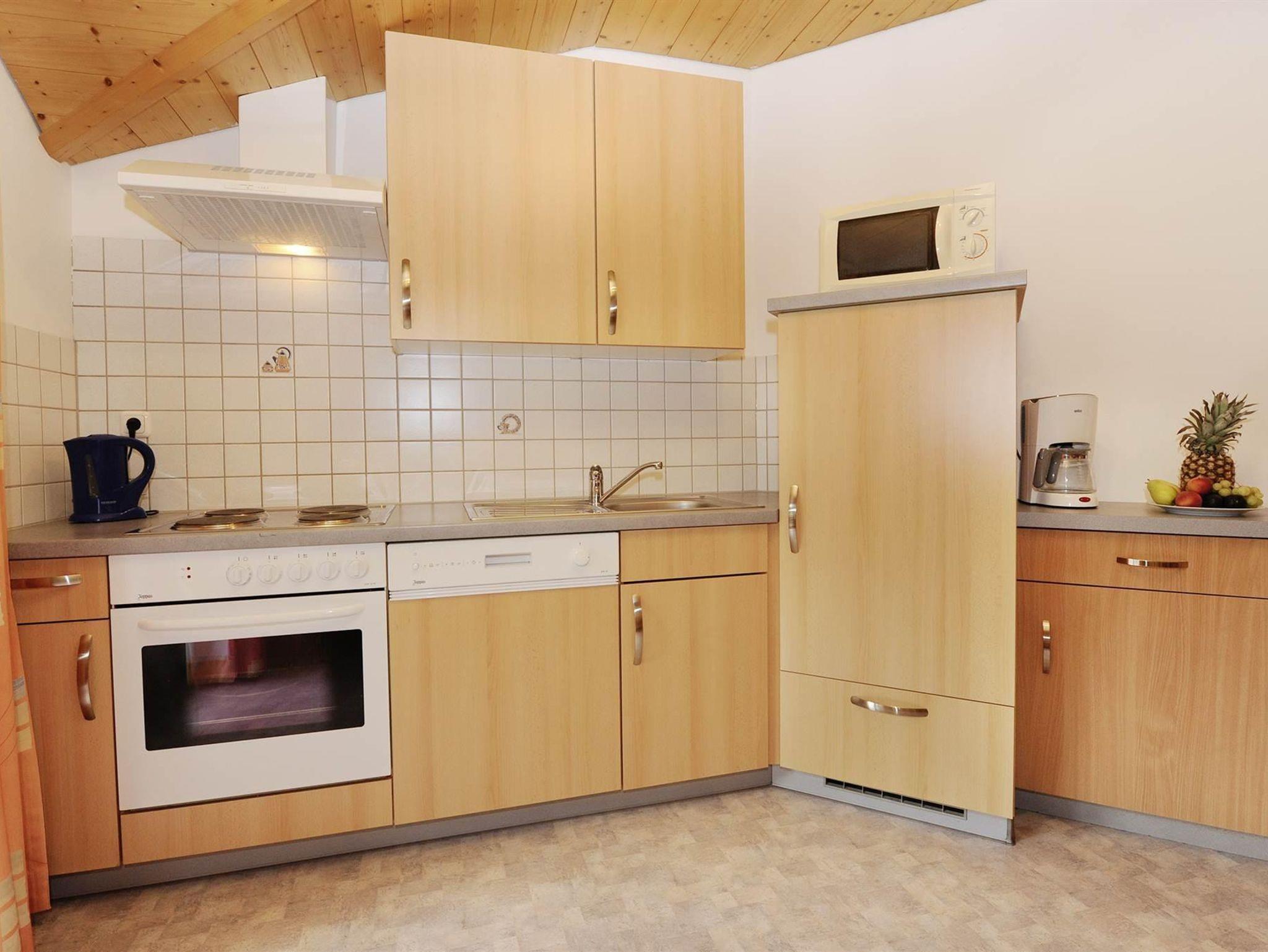 Exklusive Ferienwohnung mit ca. 53 m2 mit 2 seperaten Schlafzimmern mit Doppelbetten, Bad mit Dusche, seperates WC, Hand-, Duschtücher, Wohnküche mit komplett ausgestatteter Küchenzeile (Kaffeemaschine, Herd mit Backrohr, Mikrowelle, Kühlschrank mit Gefrierfach, Toaster und Wasserkocher), SAT-TV mit Radio und Balkon. Spiele, Bücher. Nichtraucherwohnung! W-Lan gratis
