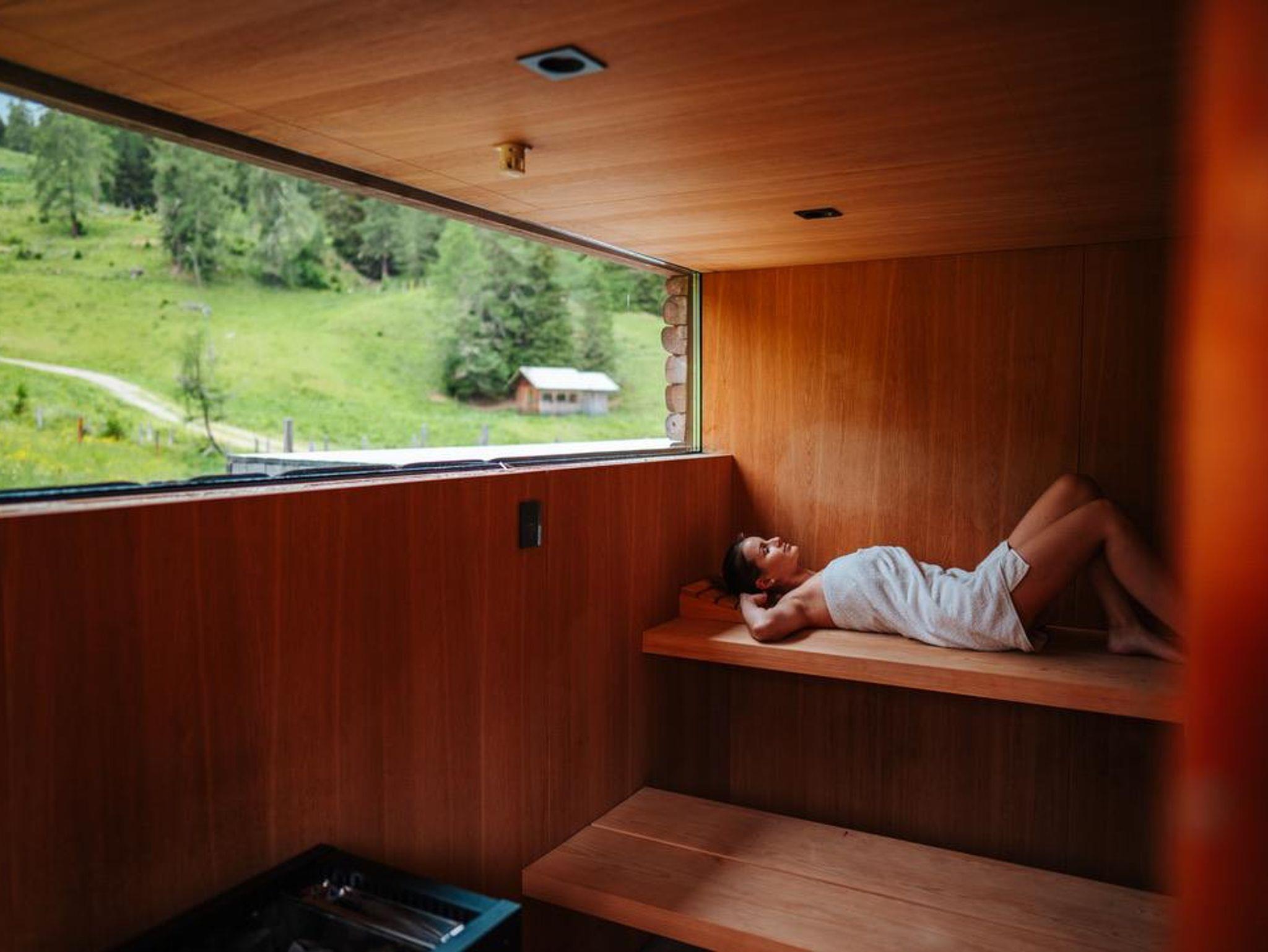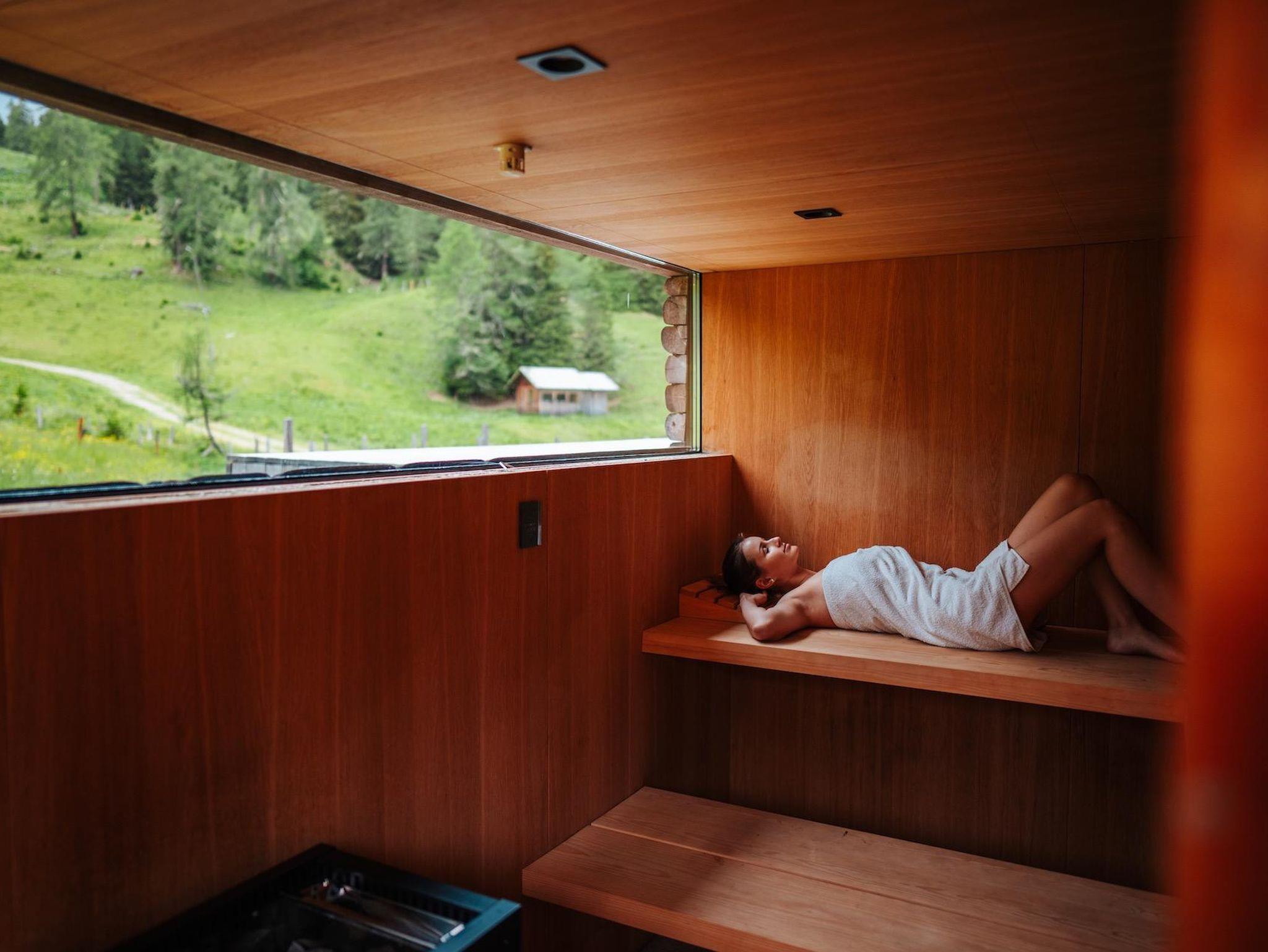 • Panoramaaußensauna (25?m²) mit Bergwasserteich – zur Erholung nach intensiven Arbeitstagen oder Outdoor-Aktivitäten