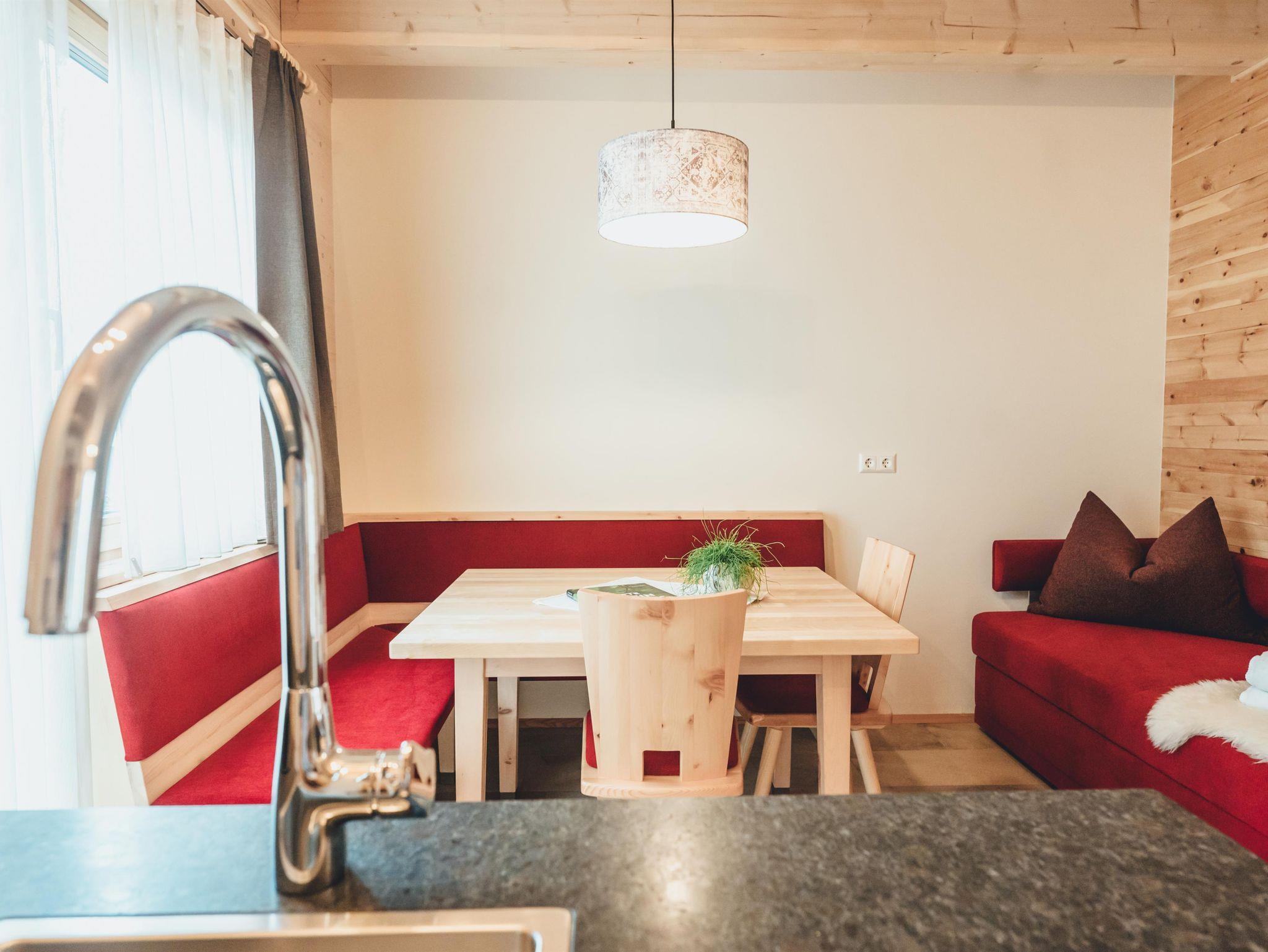 Entdeckt die gemütliche Almwohnung Speikkofel im 1. Stock mit zwei einladenden Unterkunftsoptionen: Die Almwohnung (54 m²) mit einer Zirben - Küche und dem großen Wohnraum mit ausziehbarer Doppel - Schlafcouch und der kuscheligen Fensterbank. Es gibt ein Doppelzimmer mit Zusatzbett und den großen Panorama - Balkon. Im Bad gibt es eine Badewanne und das WC. Im Zirben - Doppelzimmer mit einer zusätzlichen Schlafcouch für eine Person gibt es ein Bad mit Dusche und WC (20 m²).