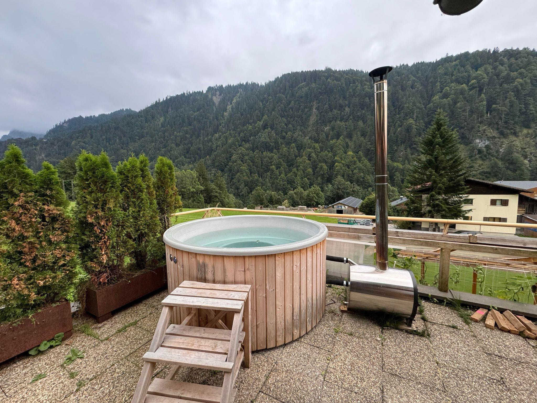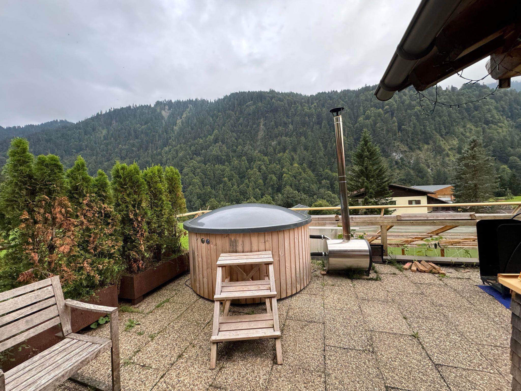 Unsere Ferienwohnung liegt in Sonntag Seeberg, ruhig und mit einer wunderschönen Aussicht auf die Bergwelt des Großen Walsertals. Unsere Ferienwohnung ist rund 66 m² groß und bietet eine Terrasse, 1 Schlafzimmer mit einem Doppelbett plus Einzelbett, ein Wohnzimmer mit zusätzlich 2 Betten, einen Flachbild-TV, eine gut ausgestattete Küche mit Kühlschrank und Geschirrspüler, sowie 1 Badezimmer mit einer Badewanne/Dusche/WC. Es werden natürlich Handtücher und Bettwäsche zur Verfügung gestellt. Zusätzlich steht eine Infrarotkabine für 2 Personen gegen gebühr zur Verfügung. Die Nutzung des Whirlpools auf der Terrasse ist gegen Gebühr möglich, Anmeldung erforderlich.