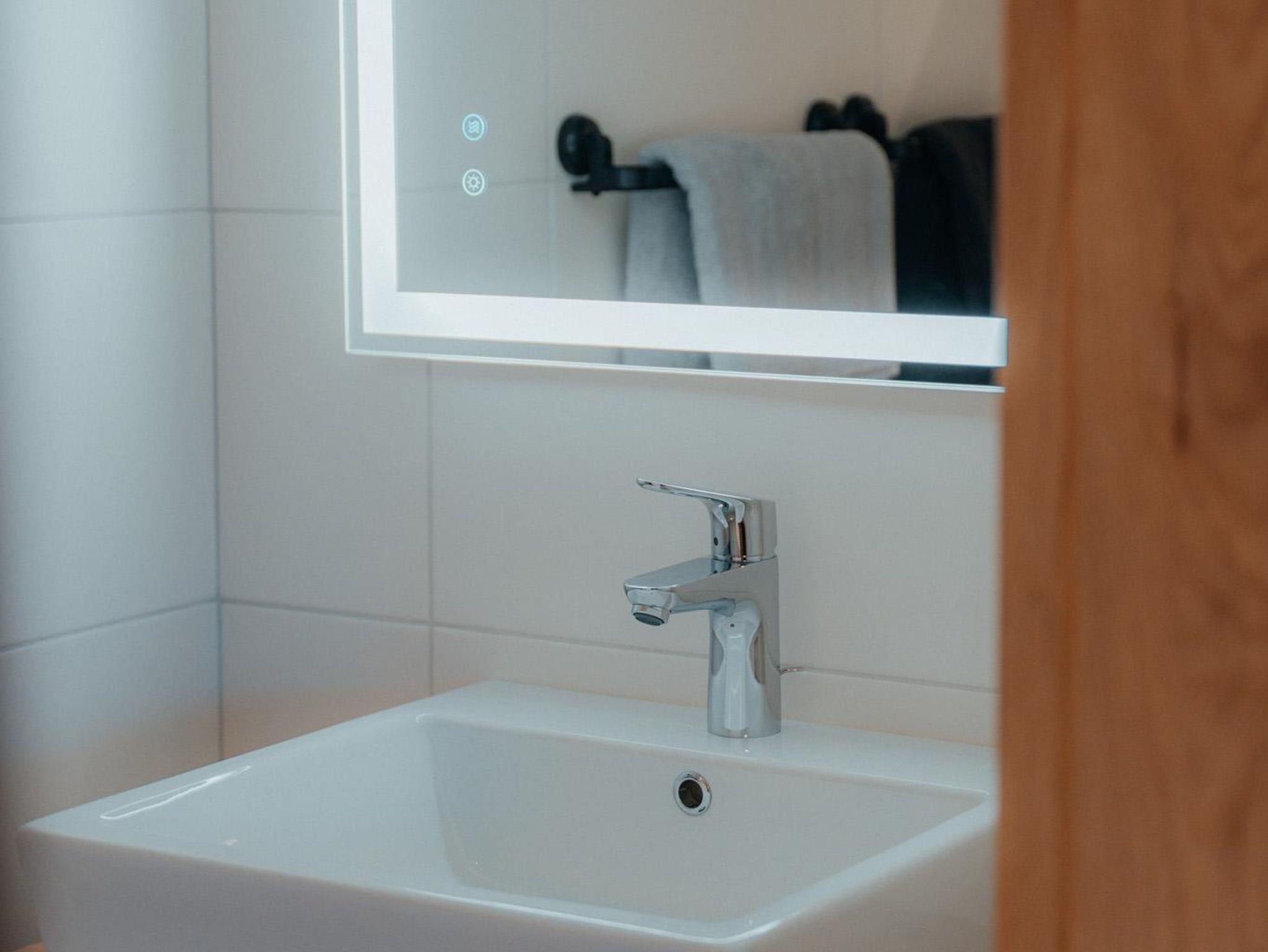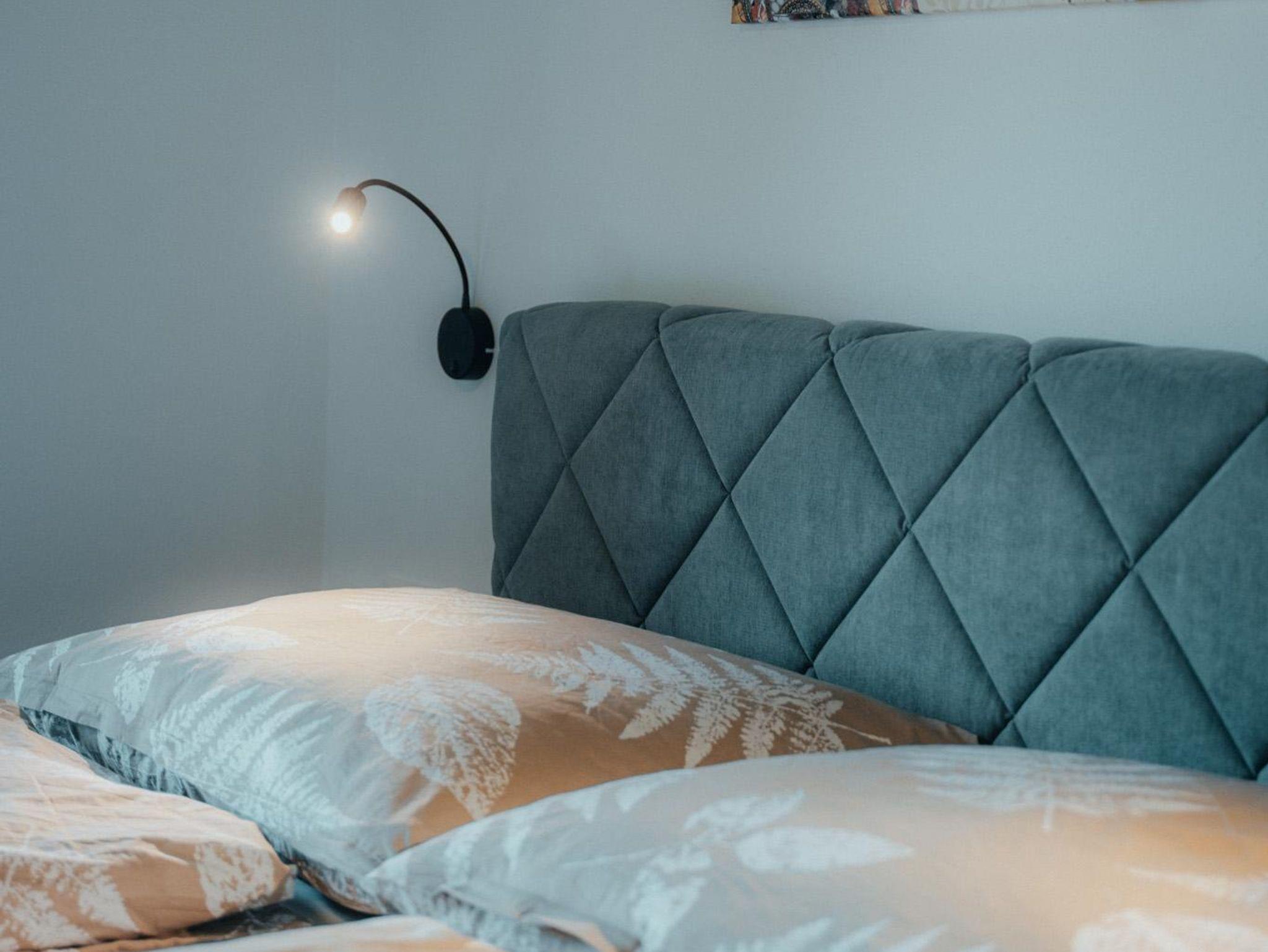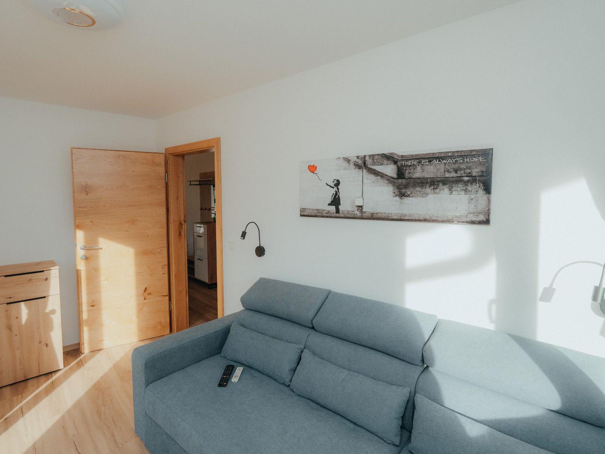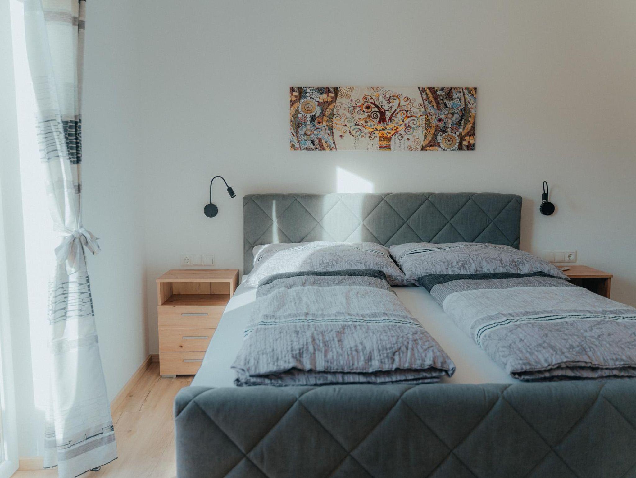Die Wohnung hat eine Gesamtfläche von 58m² und ist in zwei Schlafzimmer mit Boxspringbetten und Kasten aufgeteilt. Es gibt auch eine Wohnküche mit einer Couch und einem Fernseher sowie einer Sitzgruppe für 4 Personen. Die Küche ist voll ausgestattet mit einem Kühlschrank, Geschirrspüler, E-Herd, Dunstabzug und anderen Geräten. Eine Garderobe ist ebenfalls vorhanden. Die gesamte Wohnung verfügt über eine Fußbodenheizung und einen großen Balkon mit Sitzmöglichkeiten. Das Badezimmer ist mit einer Dusche, einem WC und einem Handtuchtrockner ausgestattet.