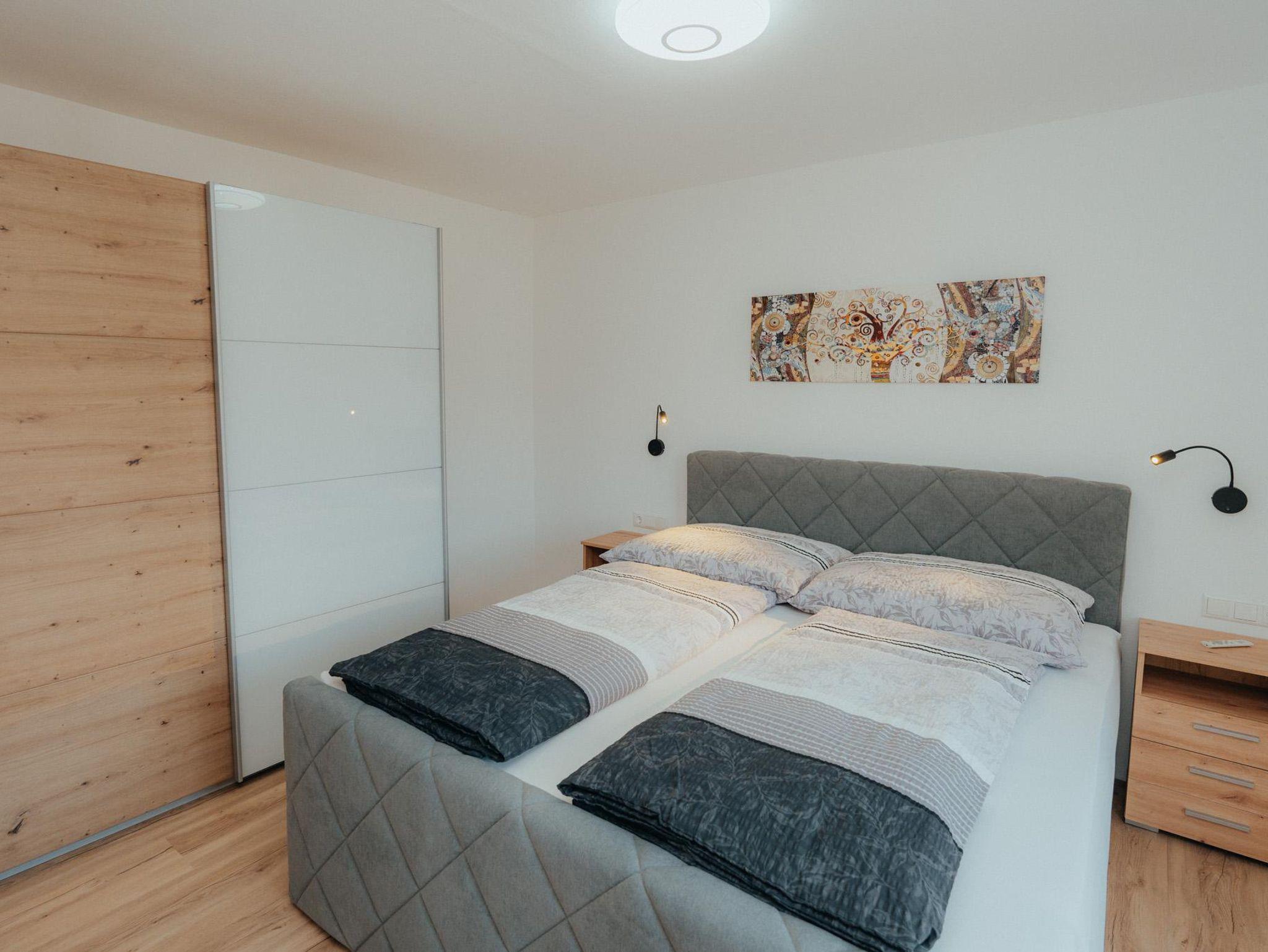 Diese geräumige Wohnung bietet 55m² Wohnfläche und ist in zwei Schlafzimmer aufgeteilt. Das erste Schlafzimmer verfügt über ein komfortables Boxspringbett und einen geräumigen Kleiderschrank. Das zweite Schlafzimmer ist als Kinderzimmer eingerichtet und bietet eine Schlafcouch sowie einen weiteren Kleiderschrank. Die Wohnküche ist mit einer Garderobe, einer gemütlichen Wohnlandschaft und einer Wohnwand inklusive Fernseher ausgestattet. Die Küche selbst ist voll ausgestattet und verfügt über einen E-Herd, einen Kühlschrank, einen Geschirrspüler und einen Dunstabzug. Das Badezimmer bietet eine Dusche, ein WC und einen Handtuchtrockner. Ein besonderes Highlight ist die Fußbodenheizung, die in der gesamten Wohnung für angenehme Wärme sorgt. Zudem gibt es einen großen Balkon mit Sitzmöglichkeiten, auf dem man die frische Luft genießen kann.