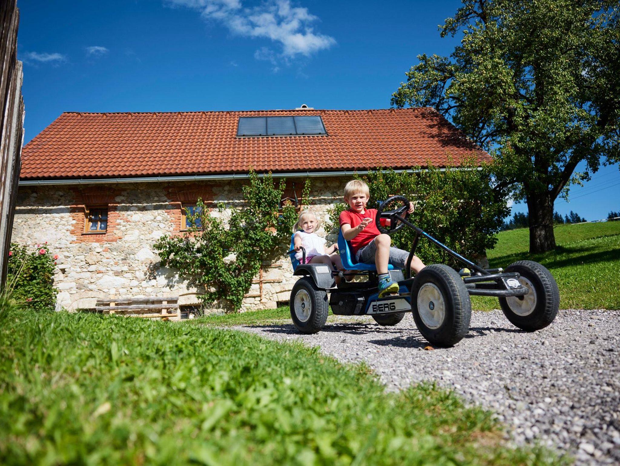 Muh und Milch für dich - Kinderbauernhof Dansbach Griaß eich am Dansbach! Schen, dass da seits! Kummst glei mit in unseren Stall. Unsere Kühe warten schon auf Euch! Werde wieder Kind und erlebe ein Kinderlachen im Stall. Füttern, streicheln, zu schauen - jede Hilfe ist Willkommen! Oder? Melke dir beste Biomilch von deiner Lieblingskuh! Muh und Milch für Dich. So wie Du es magst. Deine Eltern? Auf dem Hausbankerl genießen sie die Sonnenstrahlen. Spür die Kraft der Natur und das Glück des einfachen Lebens! Runterkommen und sich selbst wieder finden. Freiheit genießen!Durchatmen! Dansbach Raus aus dem Stall? Mitten in unsere herrliche Natur. Unverfälscht im Nationalpark Kalkalpen. Wir schätzen das aktive Leben mit und in der Natur. Was macht glücklicher als die eigenen Grenzen zu überwinden? Beim Schluchting mit Ferdinand - das pure Erlebnis in einer einsamen, idyllischen Schlucht, mit kristallklarem Bergwasser seinen Mut zu messen oder doch das innere Gleichgewicht beim Balancieren zwischen zwei alten Birnbäumen finden. Einfach Stolz auf sich sein. Was immer es ist. Tauch ein in unser Leben! Auf Muh und Milch! Die Bauernsleut Veronika und Ferdinand mit Jakob und Simon!