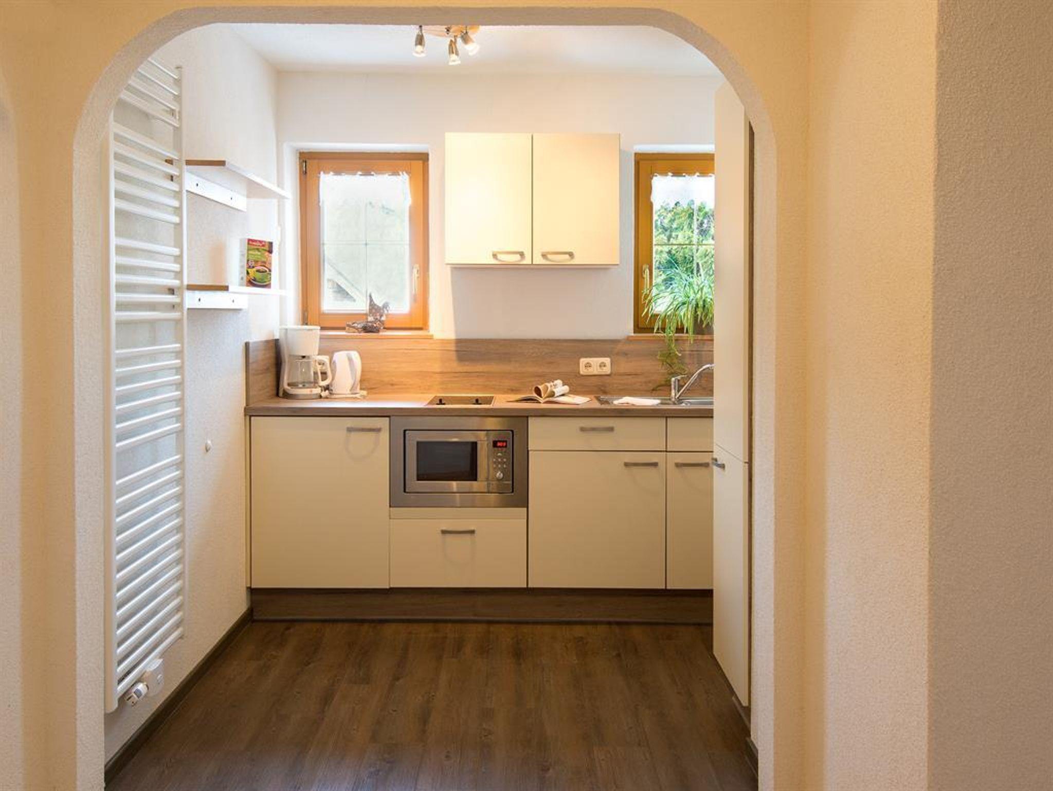 Topausgestattete Küche mit Mikrowelle, Kaffeemaschine und Toaster, Wohnzimmer, Essbereich mit Eckbank, gemütliche Schlafzimmer mit direktem Balkonzugang. Allergiker geeignet. Jedes Schlafzimmer mit eigenem DU/WC Bereich. Sat-TV und kostenloses W-LAN.