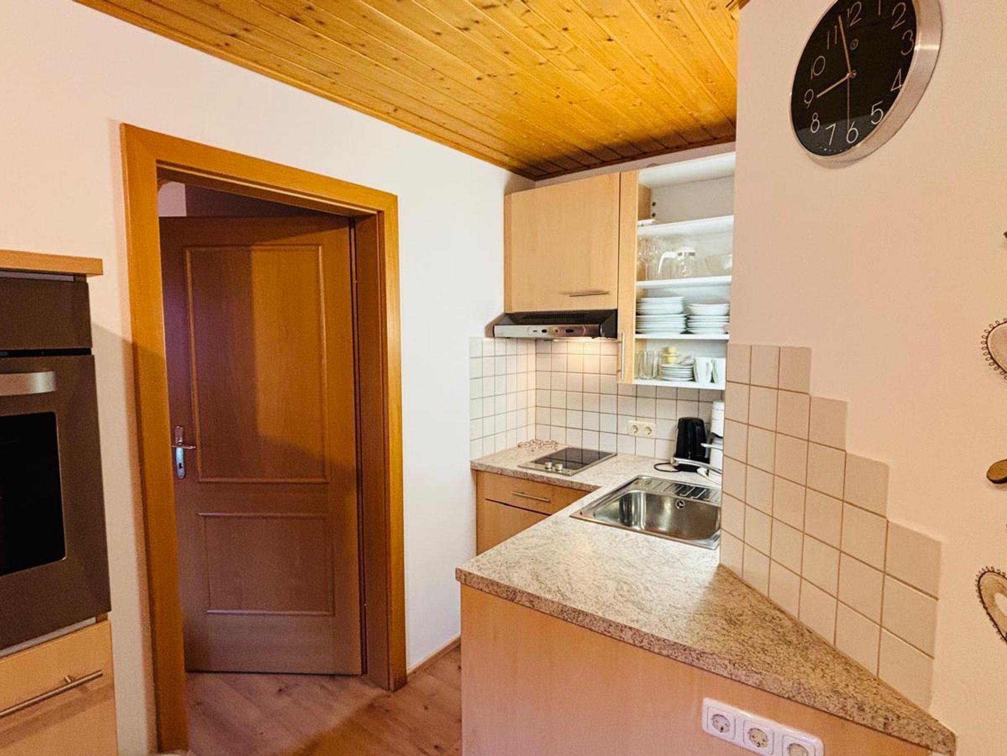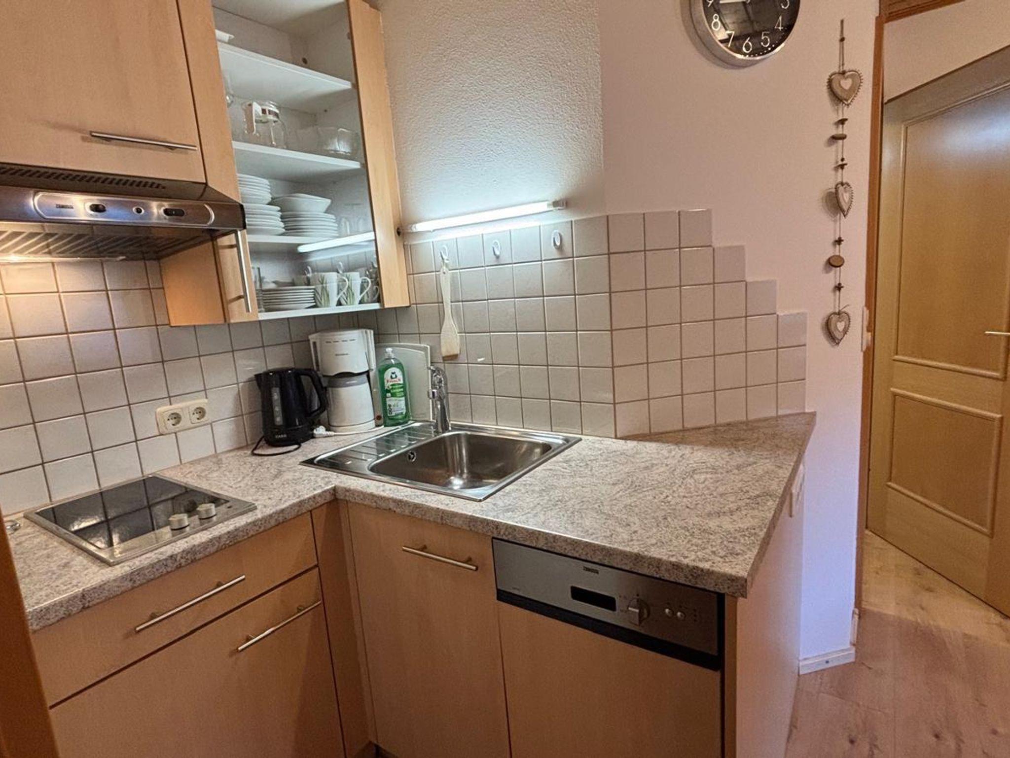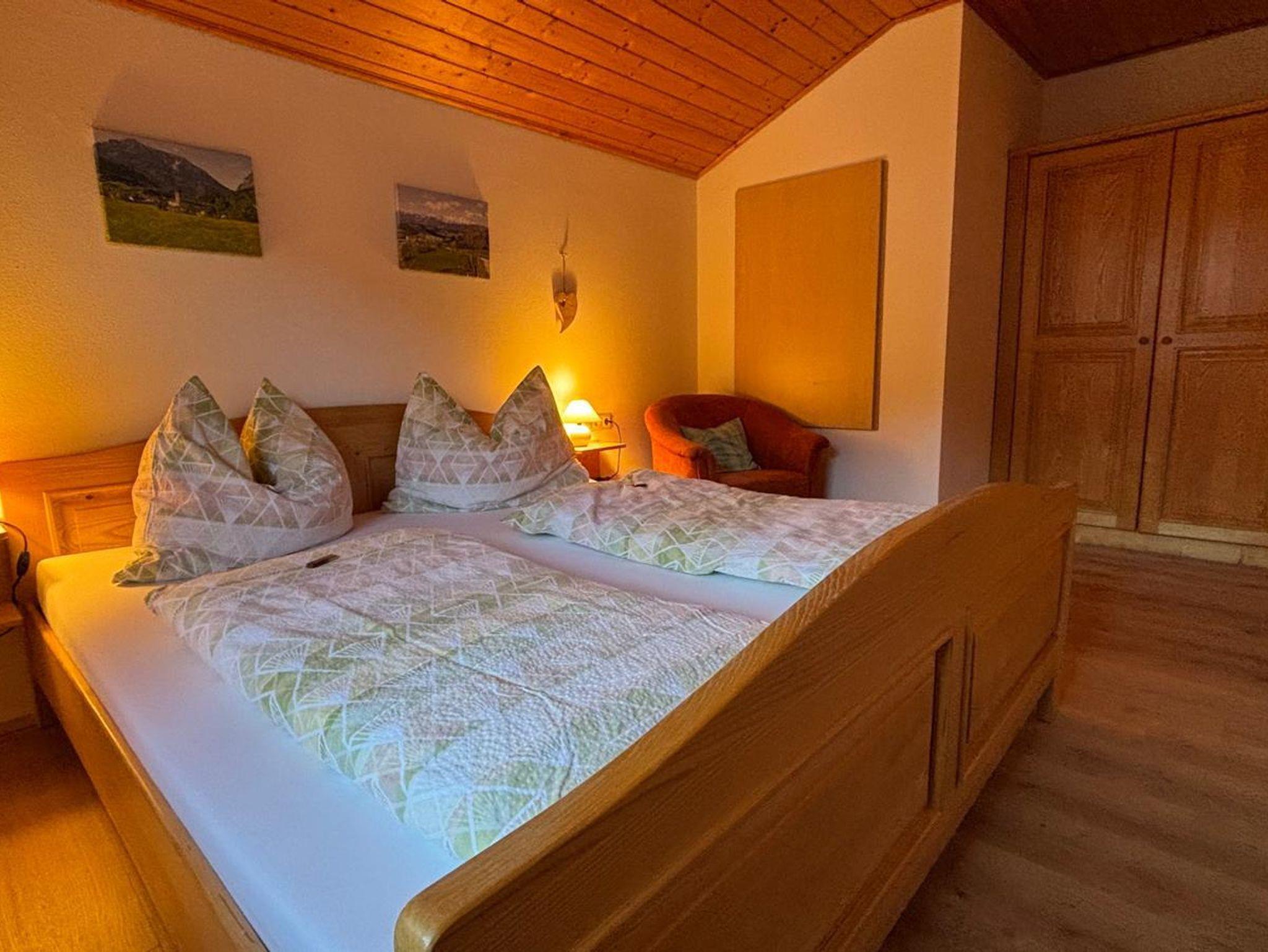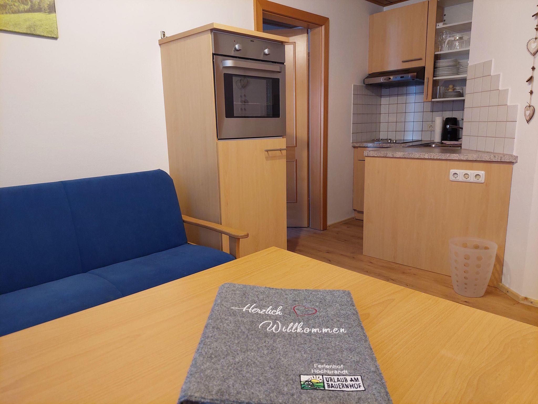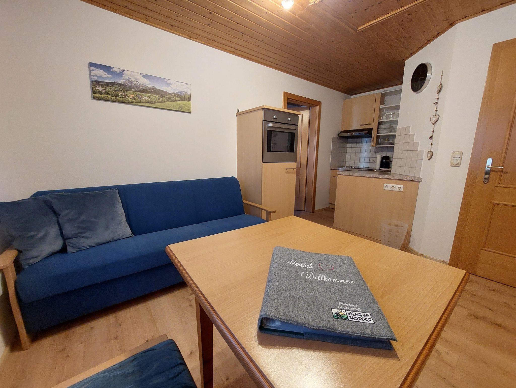 Gemütliche aus Vollholzmöbel eingerichtete 2 Zimmerwohnung davon 1 Zimmer mit 2 Betten; in der Wohnküche eine Couch und Sitzecke, Balkon mit Morgensonne.