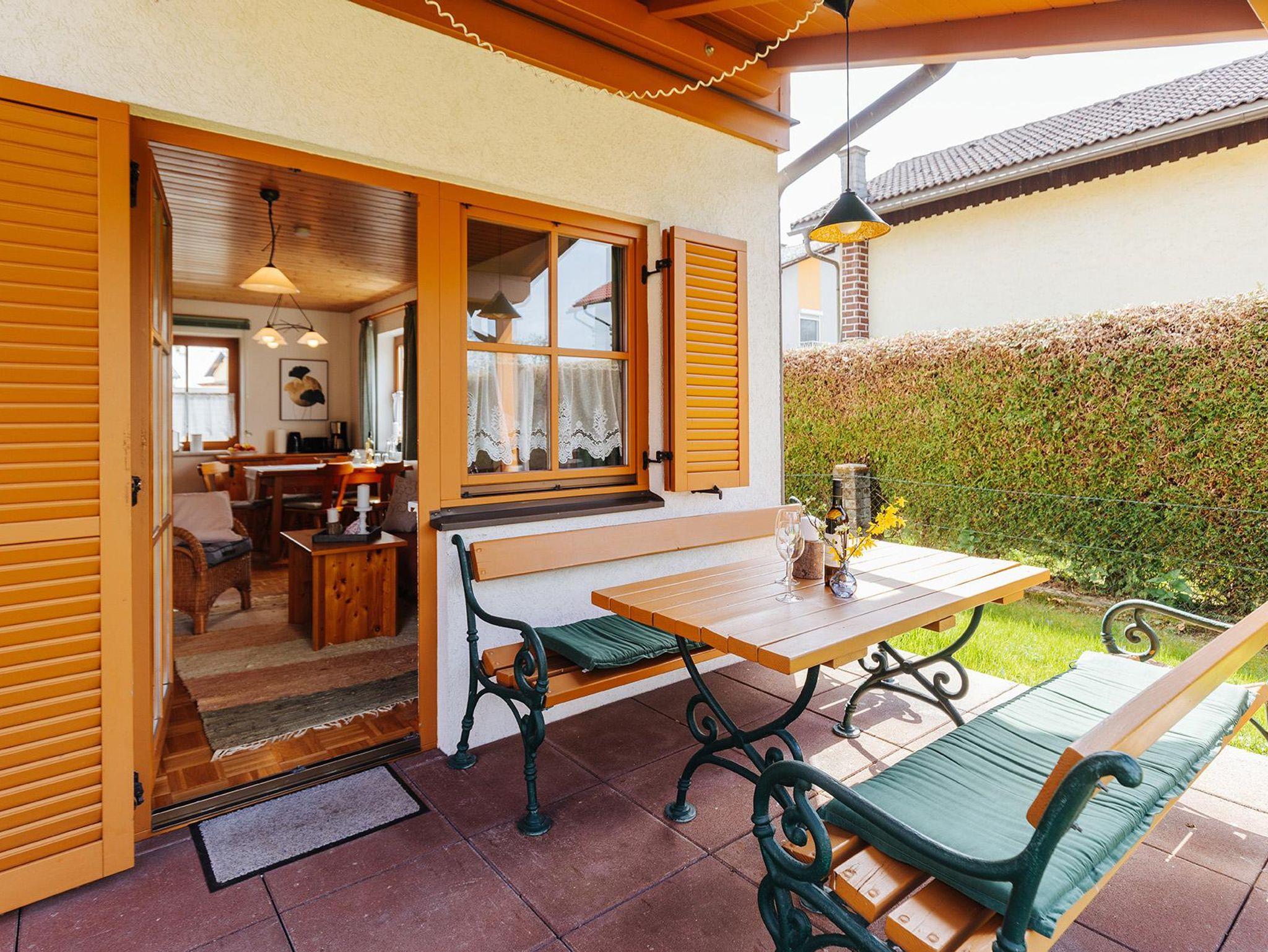 • Große überdachte Terrasse und Balkonmöbel und Gartenanbindung