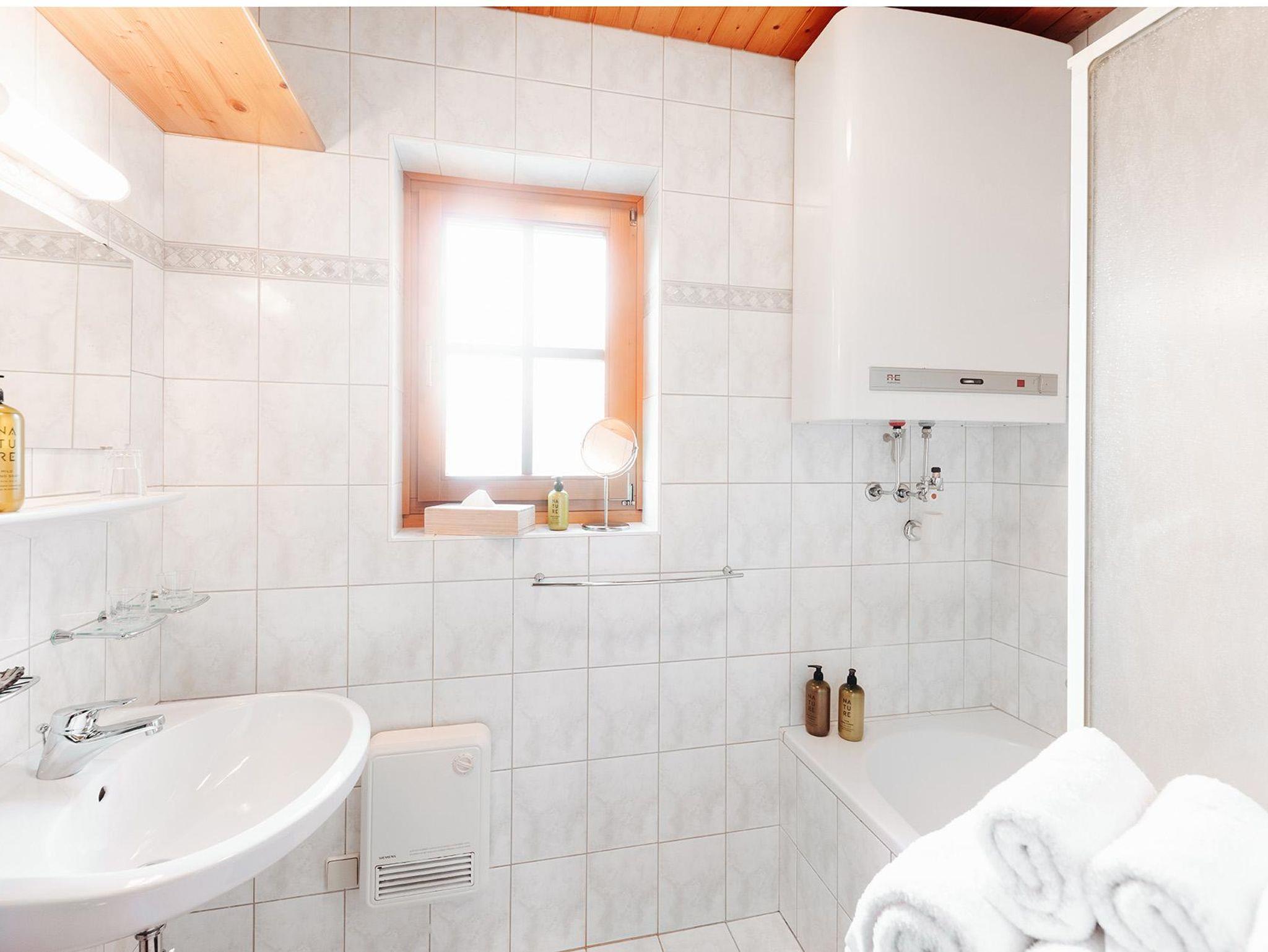 • Badezimmer mit Walk-In Dusche & Waschtisch, Föhn, hochwertigen Bio-Pflegeprodukten, Hand- & Badetücher