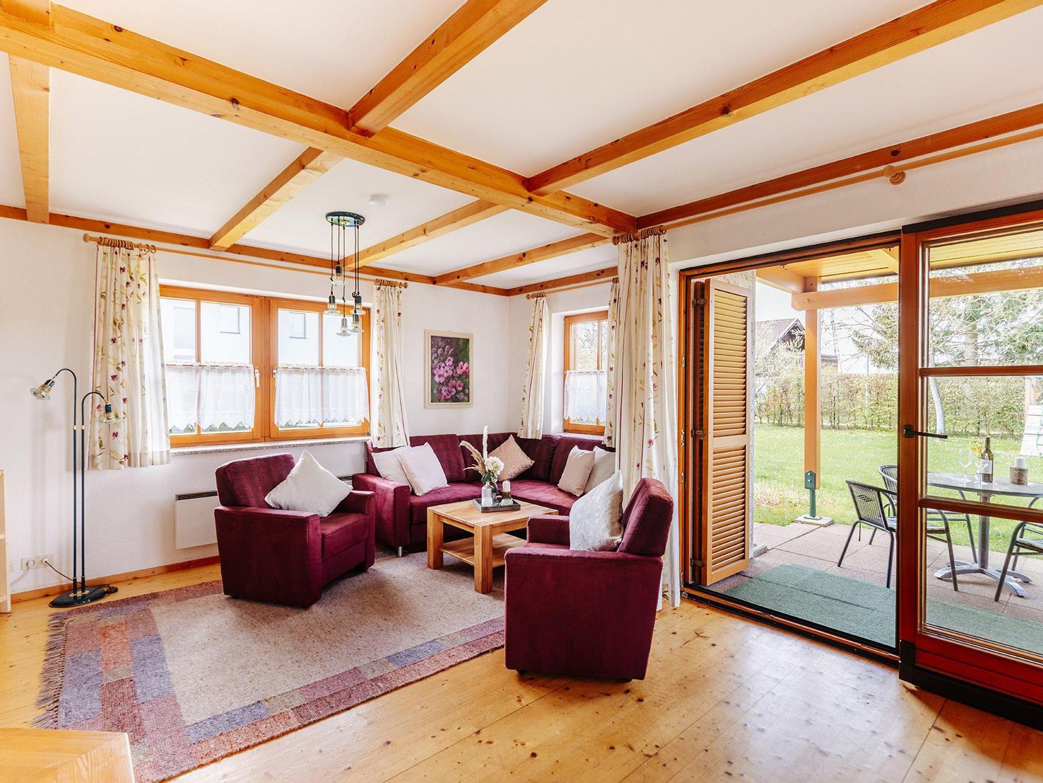 Süd- und westseitig ausgerichtet und somit ideal, um die Mittags- und Nachmittagssonne genießen zu können. Vom Wohnzimmer kommt man direkt über die Terrasse in den angrenzenden Garten